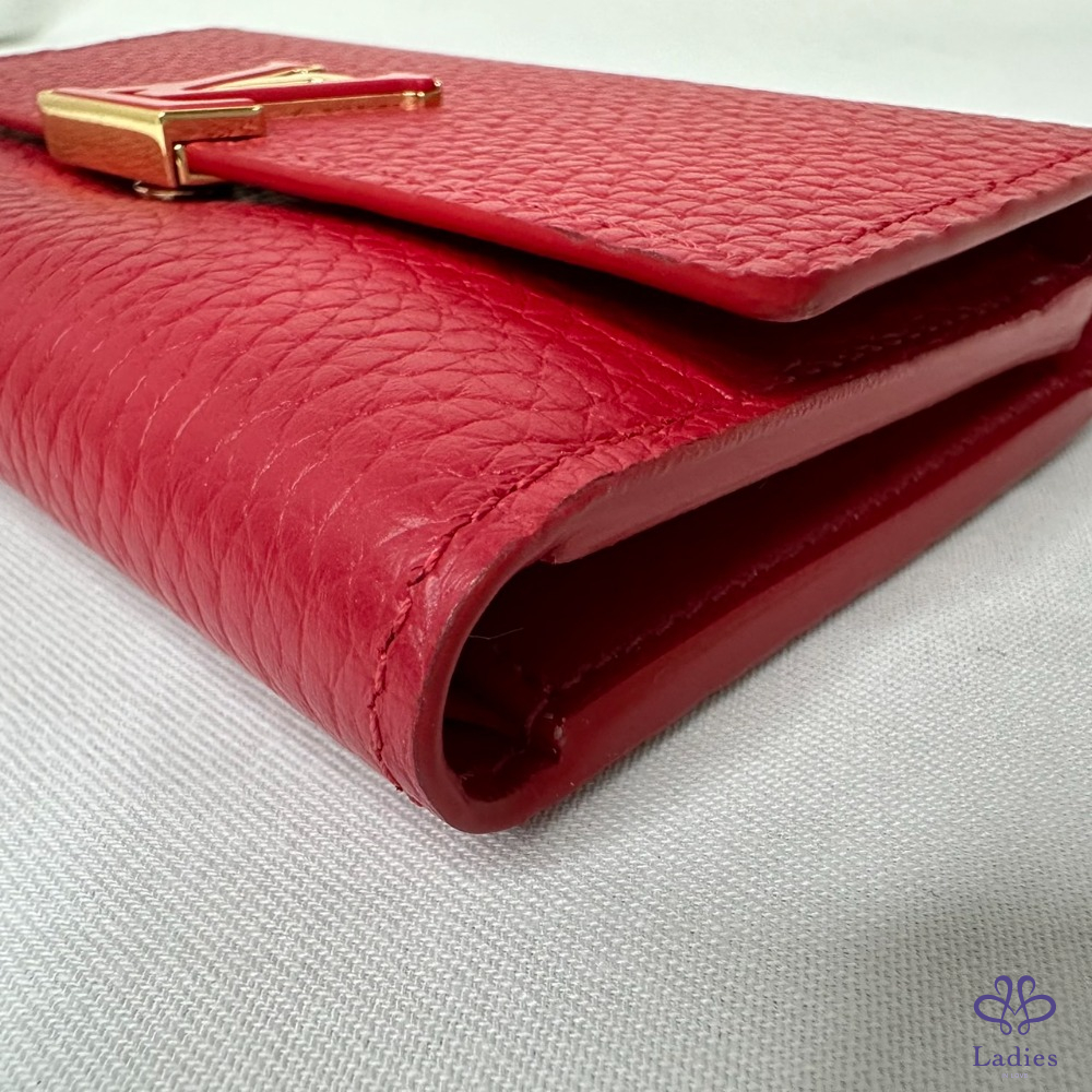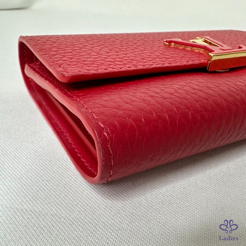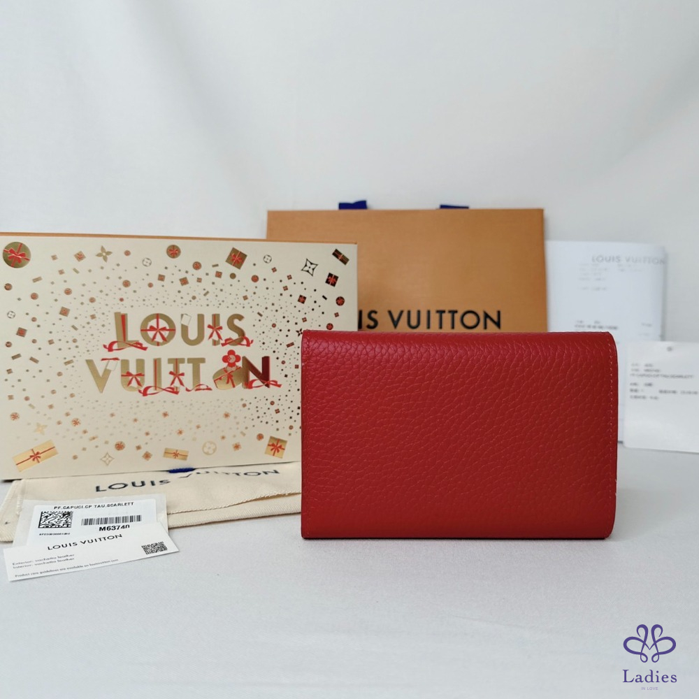 產品信息 【LV Capucines三折扣式短夾】 #專櫃價3萬5 以柔軟的Taurillon皮革打造 空間寬敞可容納日常隨身物 8個卡夾層 / 1個拉鏈零錢袋 1個鈔票層 / 2個貼袋 整體包況約9成2新,二手商品均有正常使用/存放痕跡 型號:M63740 尺寸:13.5x9.5x3cm 附件:原廠盒、原廠紙袋、台灣購證影本(去個資)、小卡 #B113092402