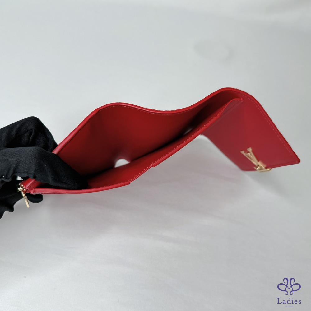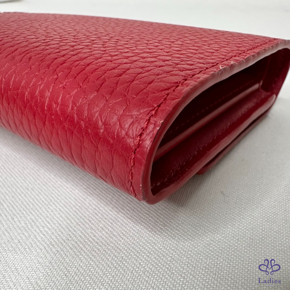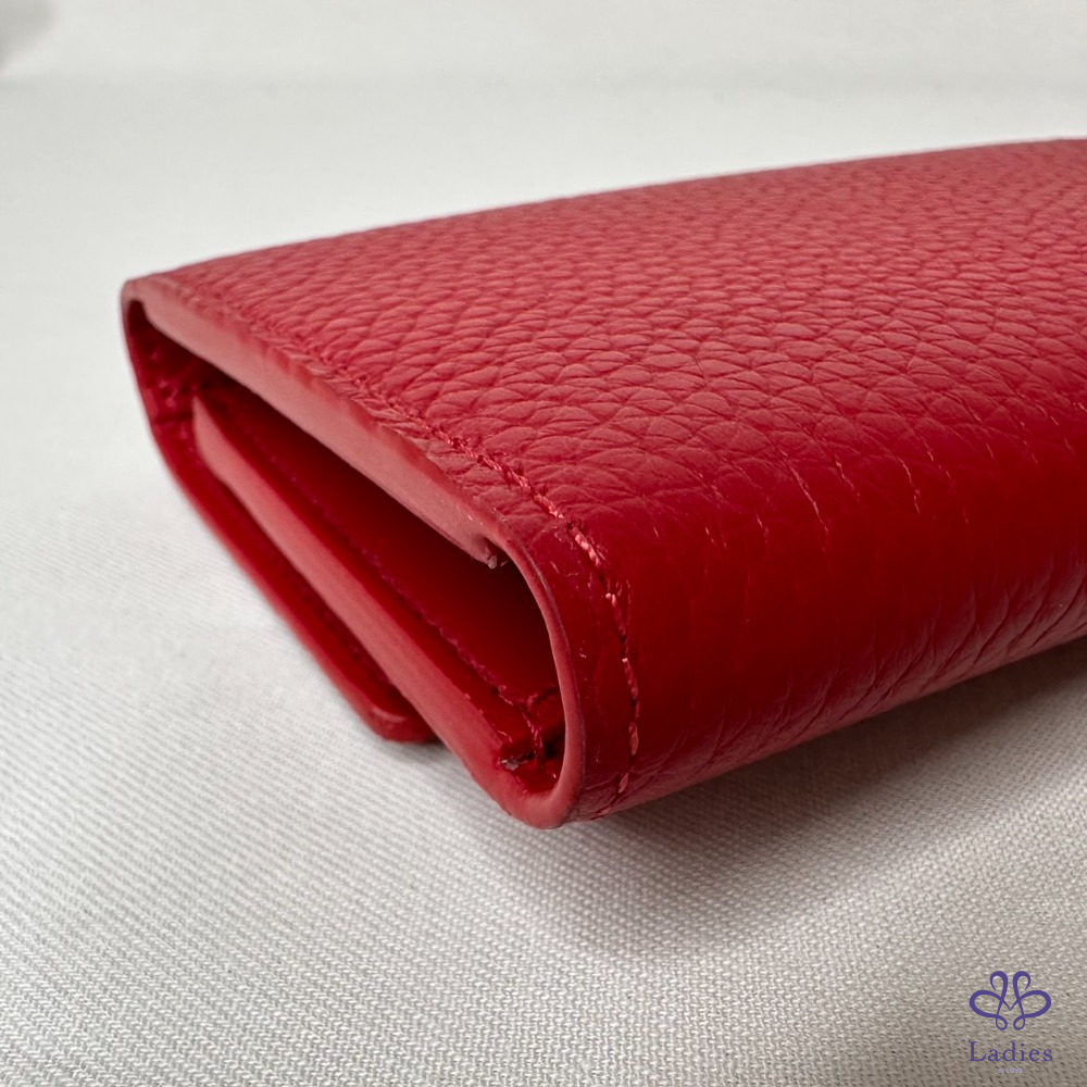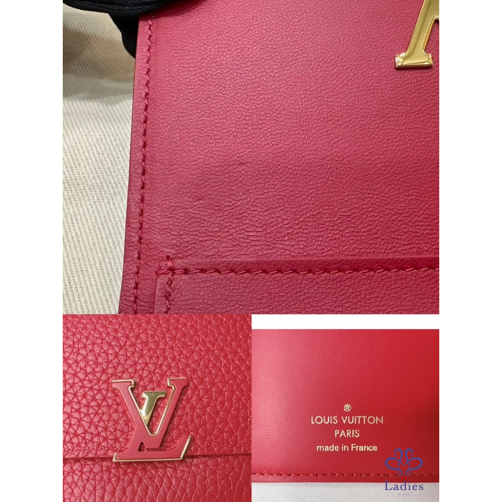 產品信息 【LV Capucines三折扣式短夾】 #專櫃價3萬5 以柔軟的Taurillon皮革打造 空間寬敞可容納日常隨身物 8個卡夾層 / 1個拉鏈零錢袋 1個鈔票層 / 2個貼袋 整體包況約9成2新,二手商品均有正常使用/存放痕跡 型號:M63740 尺寸:13.5x9.5x3cm 附件:原廠盒、原廠紙袋、台灣購證影本(去個資)、小卡 #B113092402