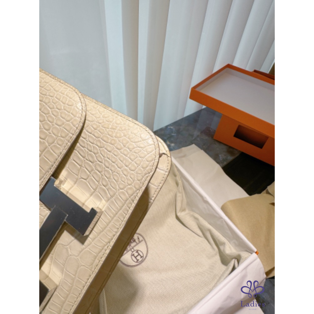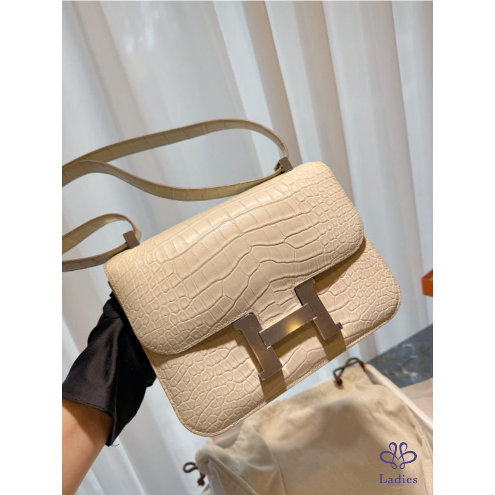 產品信息 寵編A000243 HERMÈS Constance 24 8L B 離櫃品 霧面鱷魚 #超甜直購125w含運 配上銀釦 真的整個超仙 8L在馬家有小喜馬拉雅之稱 可見顏值當擔當 地位也是拿捏的好好的 我們家的姊姊們真的都太強 拿到的色號真的都超強 真的不愧都是在拚排名的 全配附購證、皮革證 台灣專櫃抱出 ????
