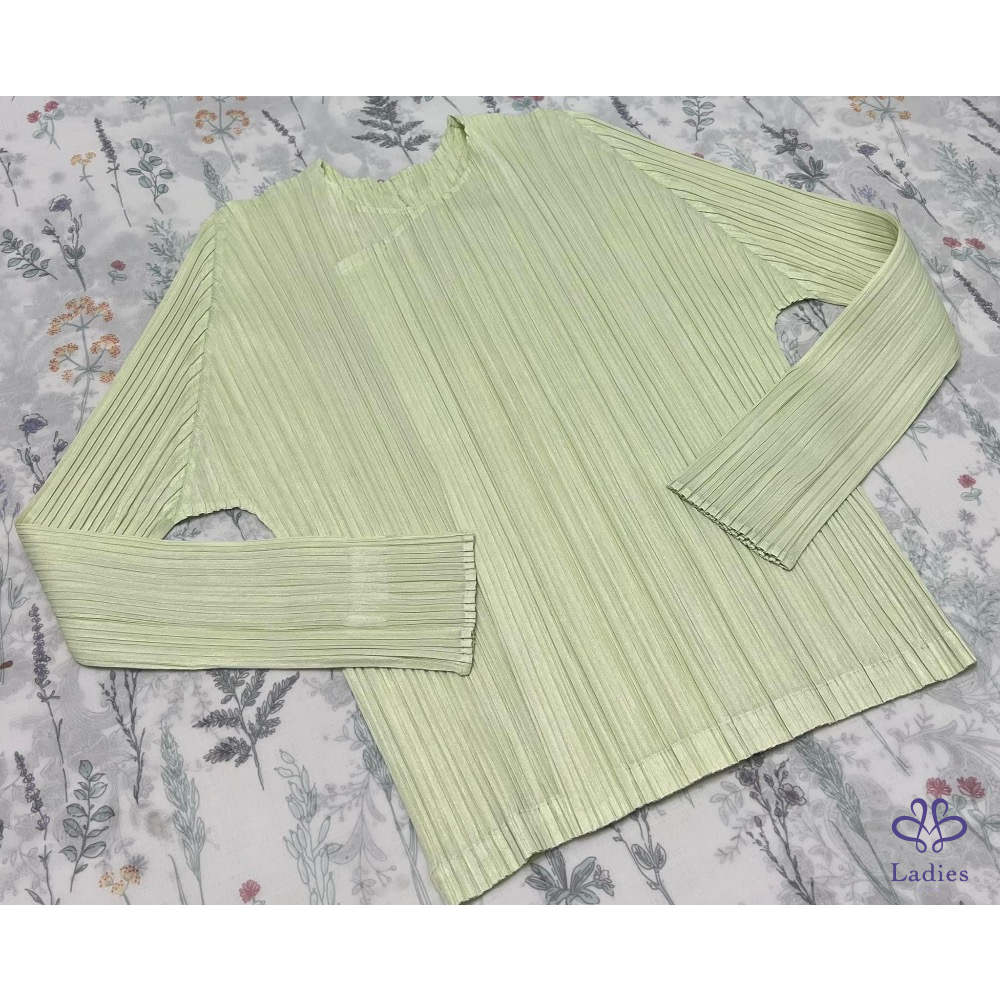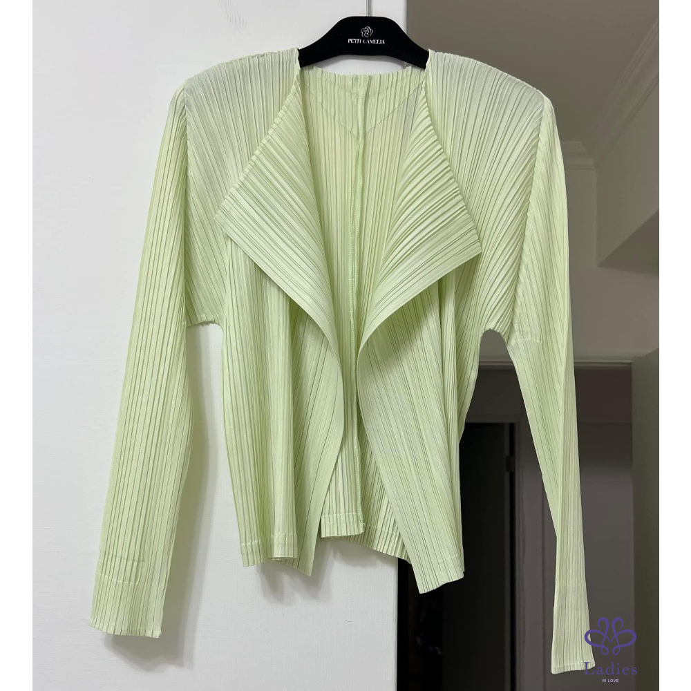 售三宅一生Pleats Please舒柔系列蘋果綠色褶皺外套,2022年8月款,絕版美品,高級的光澤感,比一般的PP材質更舒適,當然價格也比較貴,