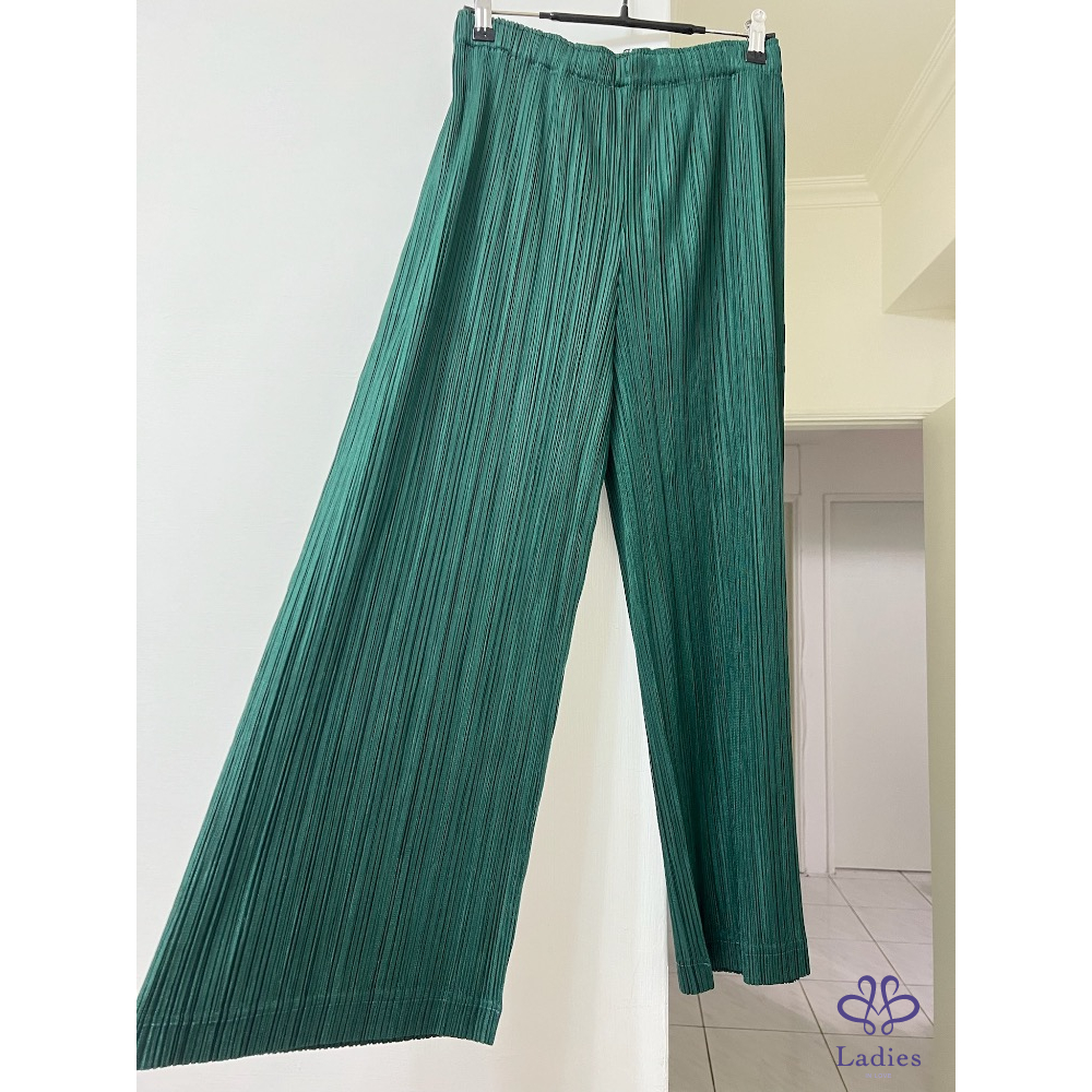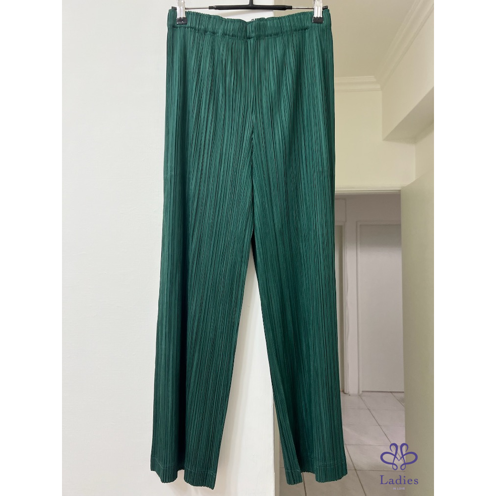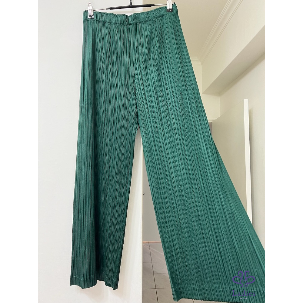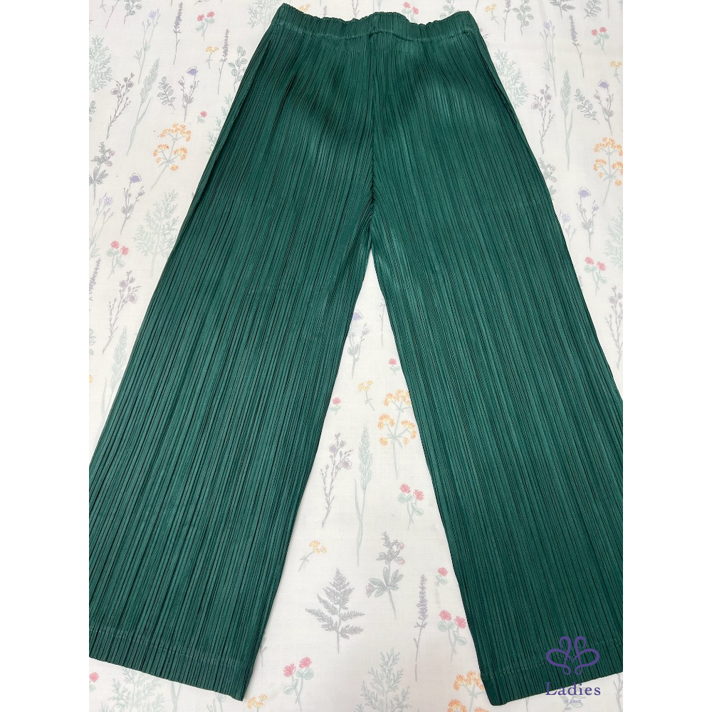 售三宅一生Pleats Please森林綠色皺褶寬褲,厚料的垂墜感很好,22年7月經典基本款,三宅迷必備;