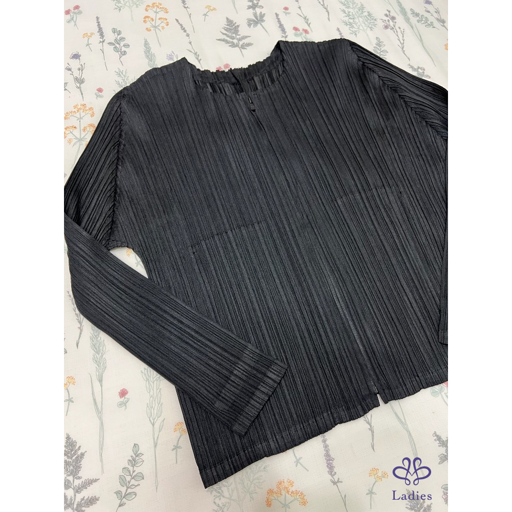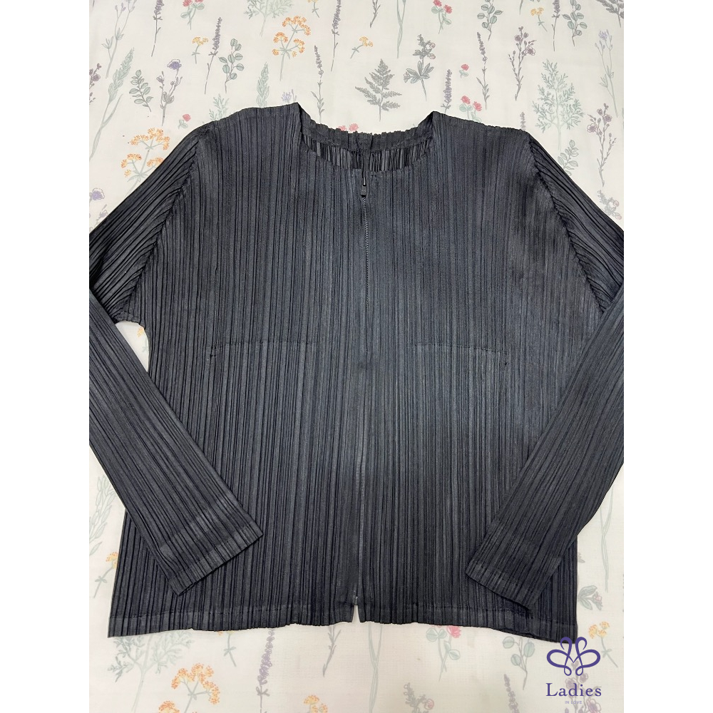 代家人售三宅一生Pleats Please黑色褶皺拉鍊外套,經典款,????面隨便搭一件基本款上衣或T恤就很美,三宅粉必備款;