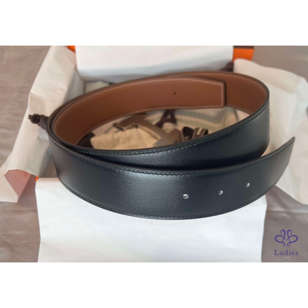 全新男用Hermes經典雙面用皮帶-H銀釦