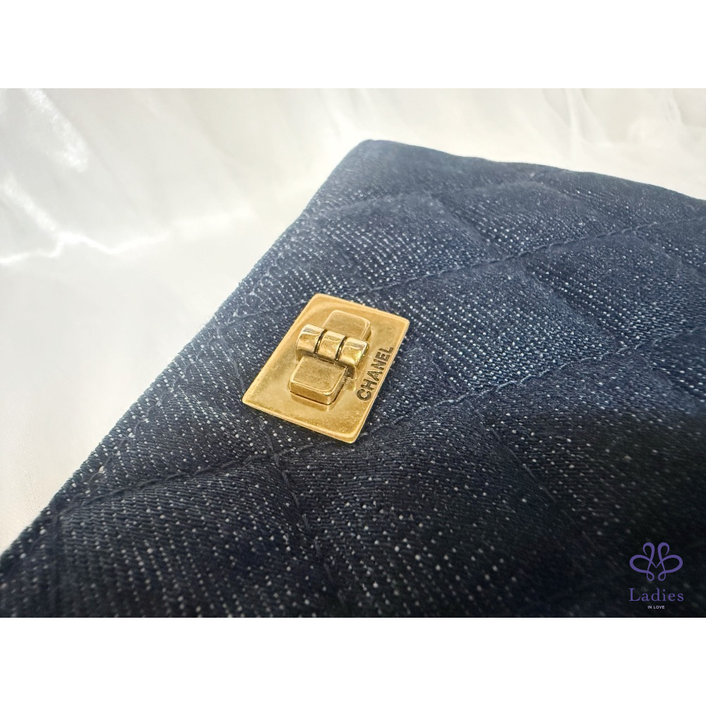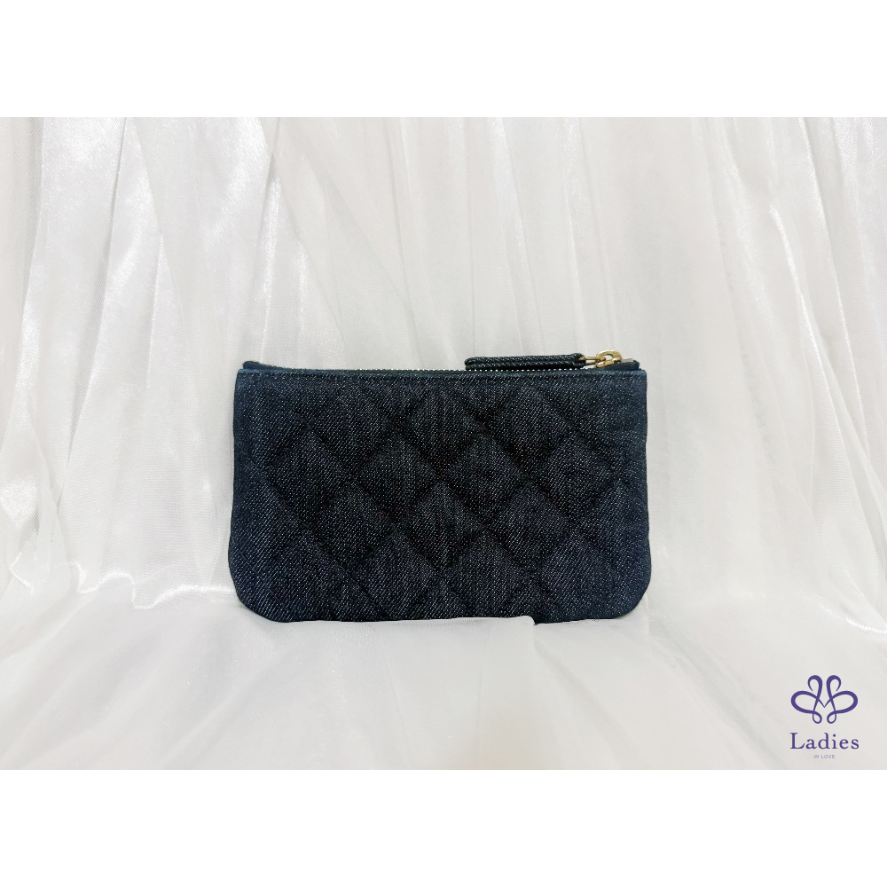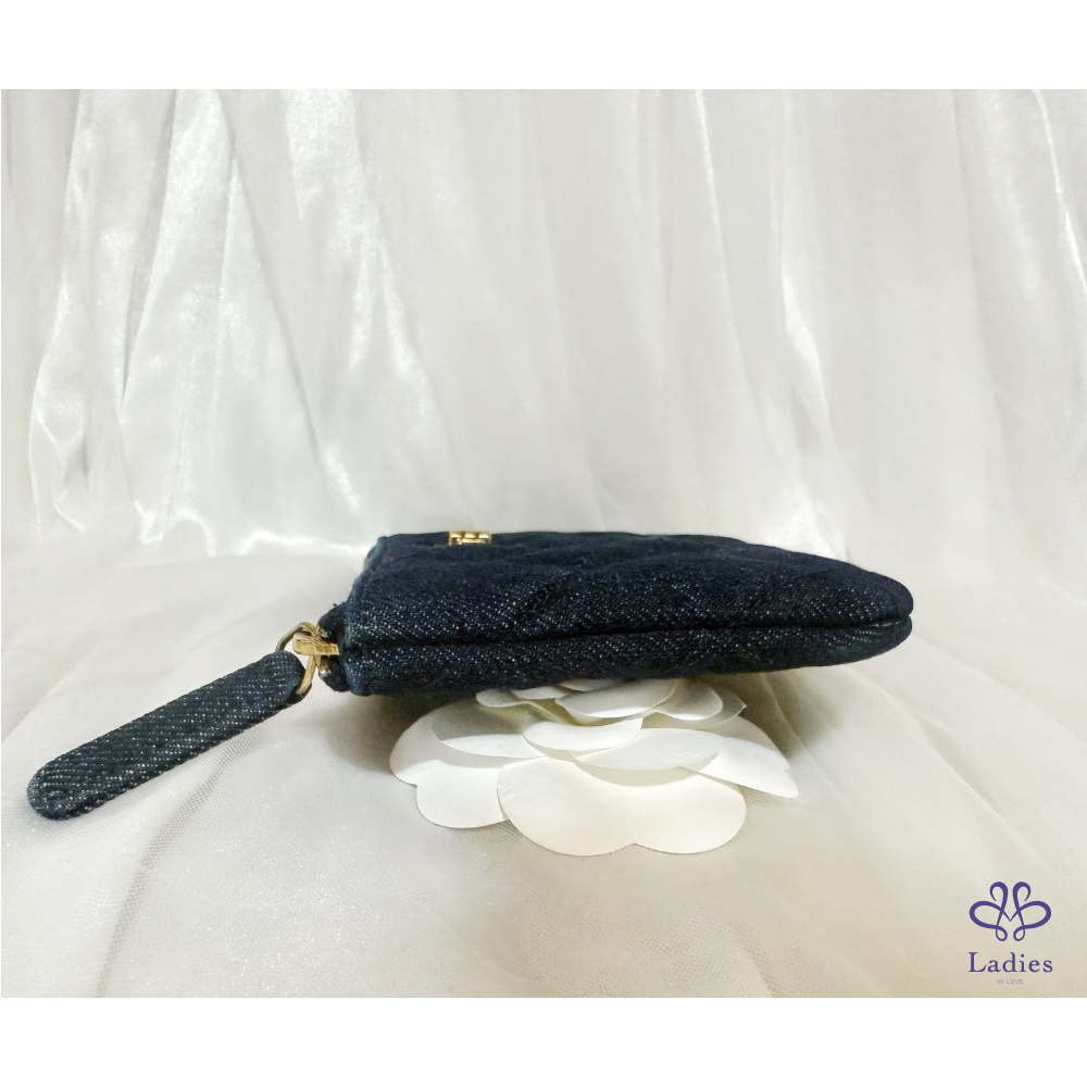 CHANEL 香奈兒 小香 2.55 方扣 復古仿舊古銅色 深藍 牛仔 單寧 一字 拉鍊 零錢卡包 ✨