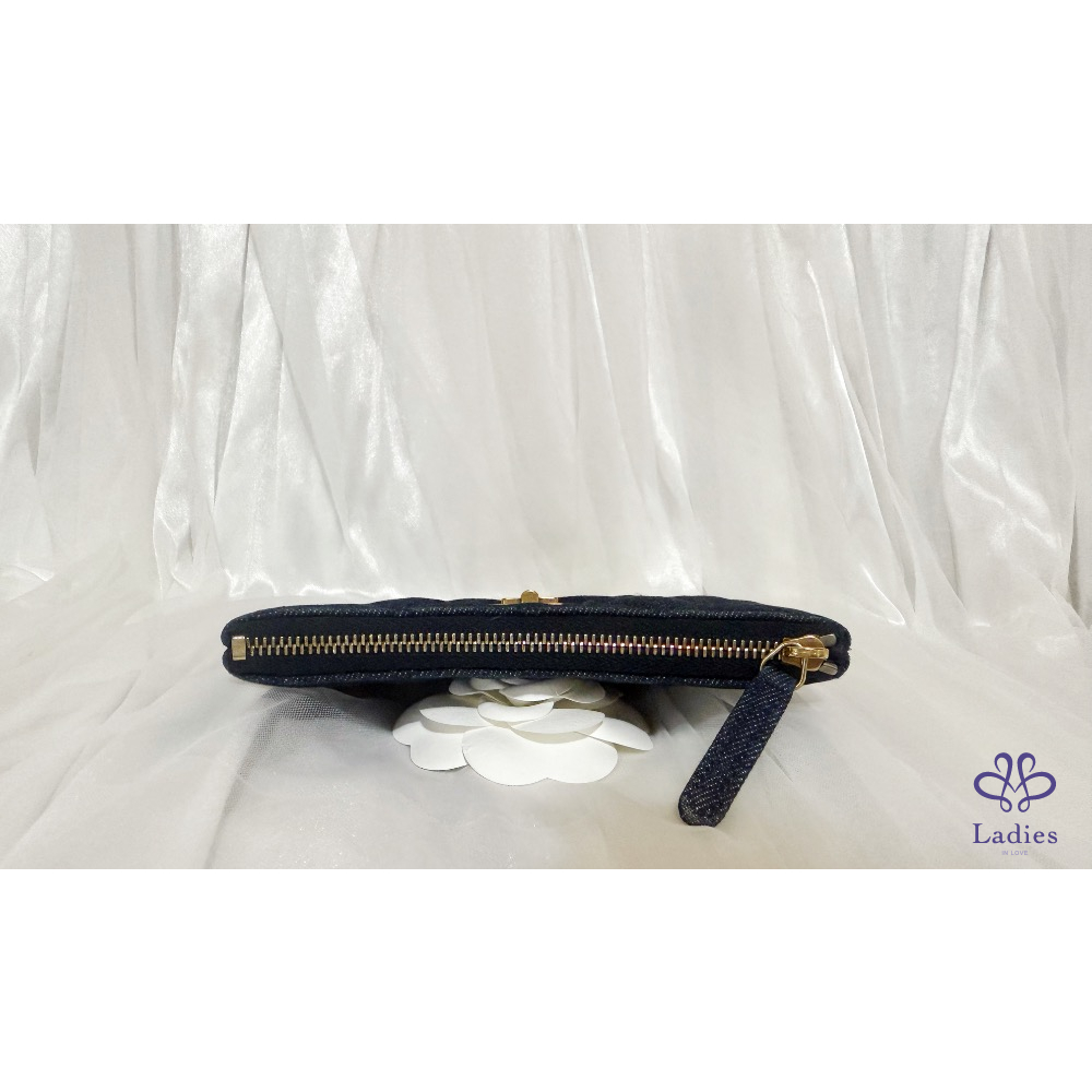 首頁 精品配件 CHANEL 香奈兒 小香 2.55 方扣 復古仿舊古銅色 深藍 牛仔 單寧 一字 拉鍊 零錢卡包 ✨