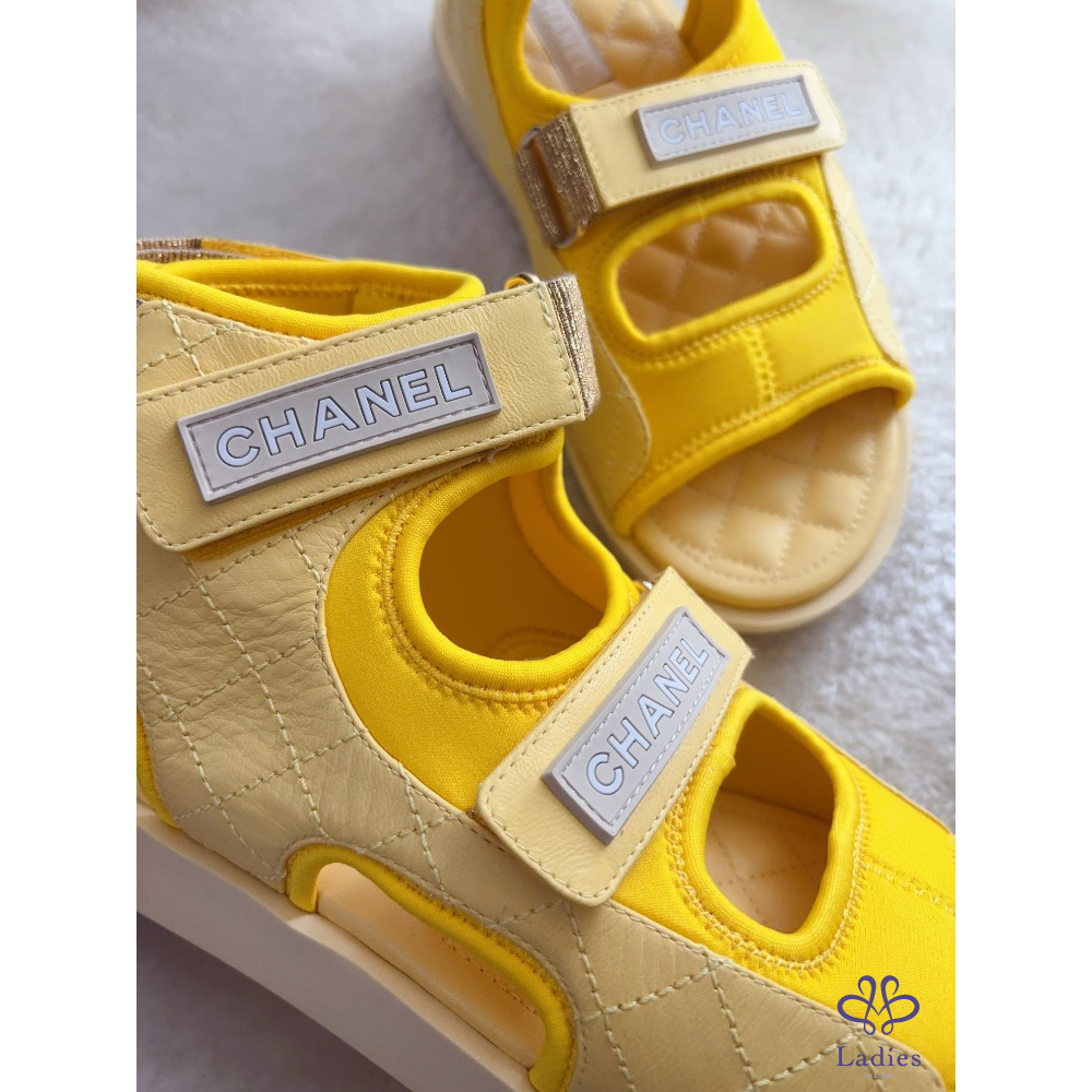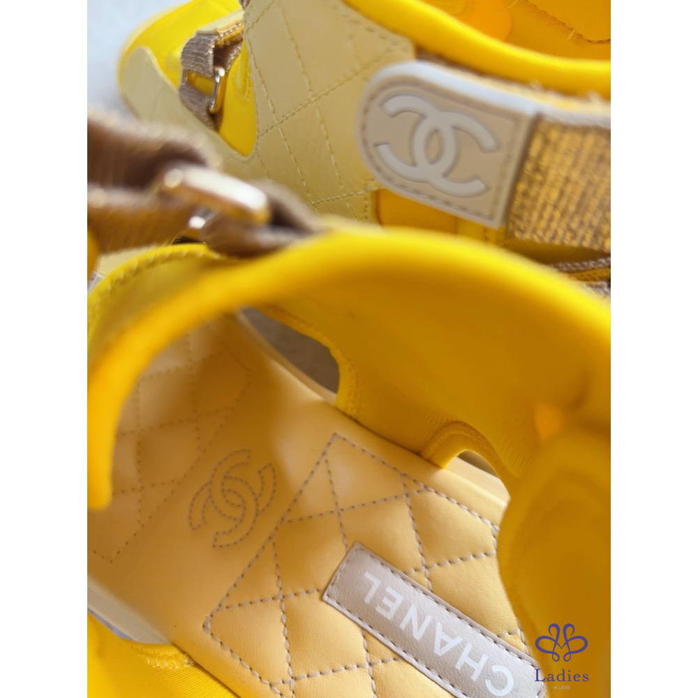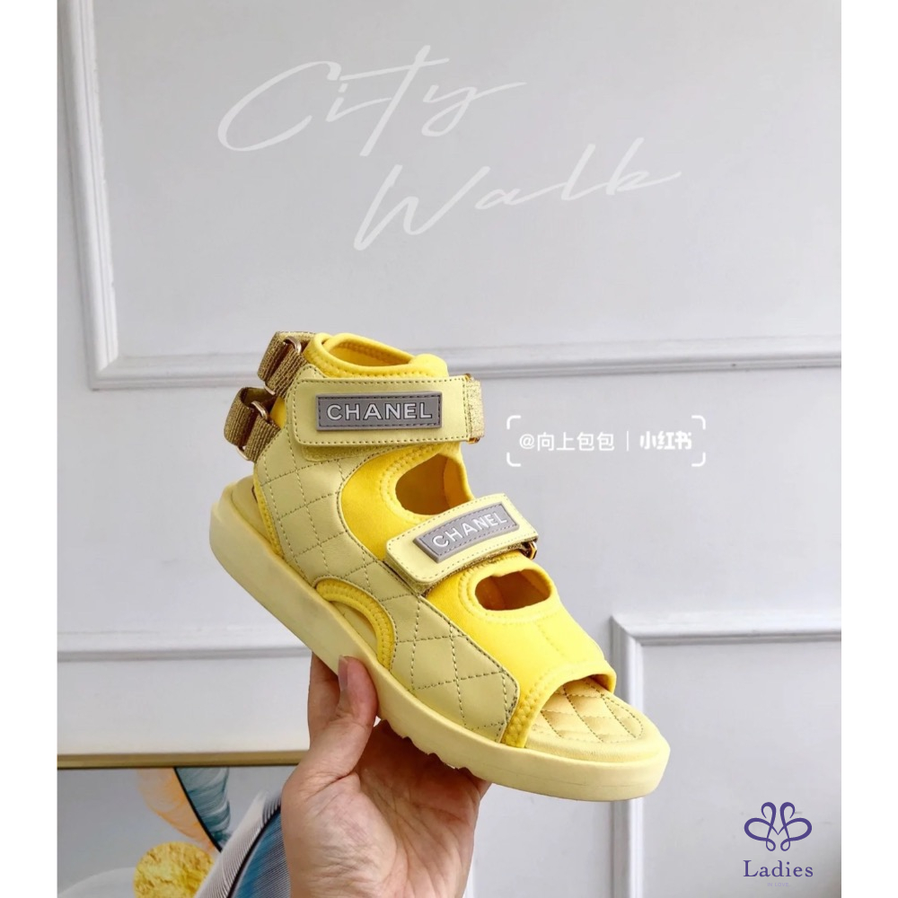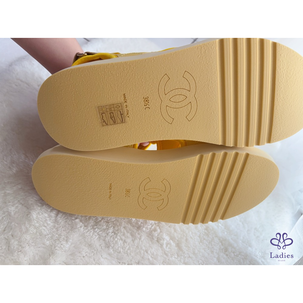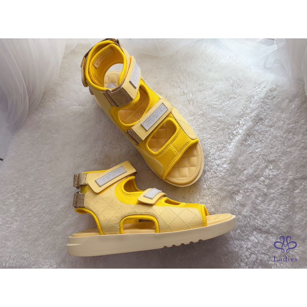 產品信息 A2644 Chanel➰限定款。小雞黃高筒魔鬼氈涼鞋 個性兼具設計感的款式,穿起來超輕盈 非常好穿、非常好走,完全不咬腳~ 休閒的時尚風格,簡單的穿搭就很好看喔! 全新,僅拍照 尺寸:38.5 購入價約$45000 附盒、鞋套、小冊,它團同步 ‼️❌請確定購買再私訊,沒確定購買問一堆勿浪費彼此時間 ‼️❌習慣已讀不回、不讀不回、議價問問請勿擾