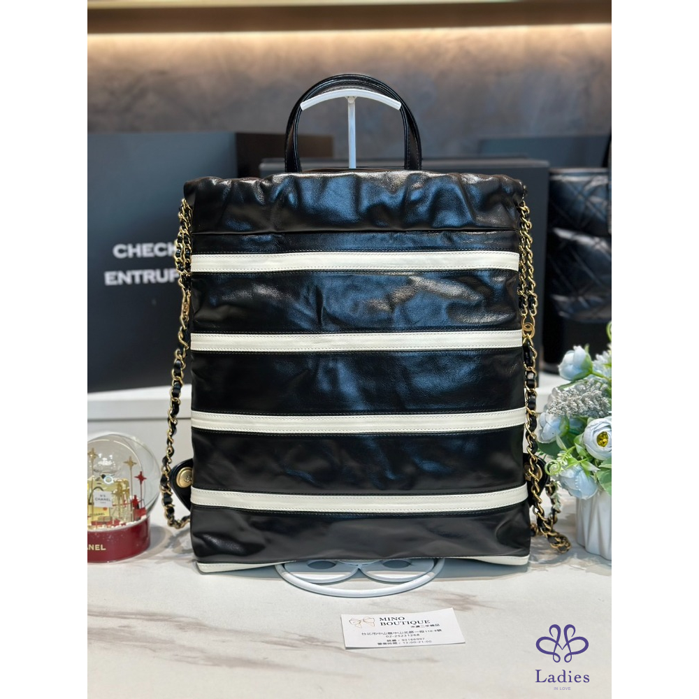 Chanel 24S 22 後背 小號 黑白條紋