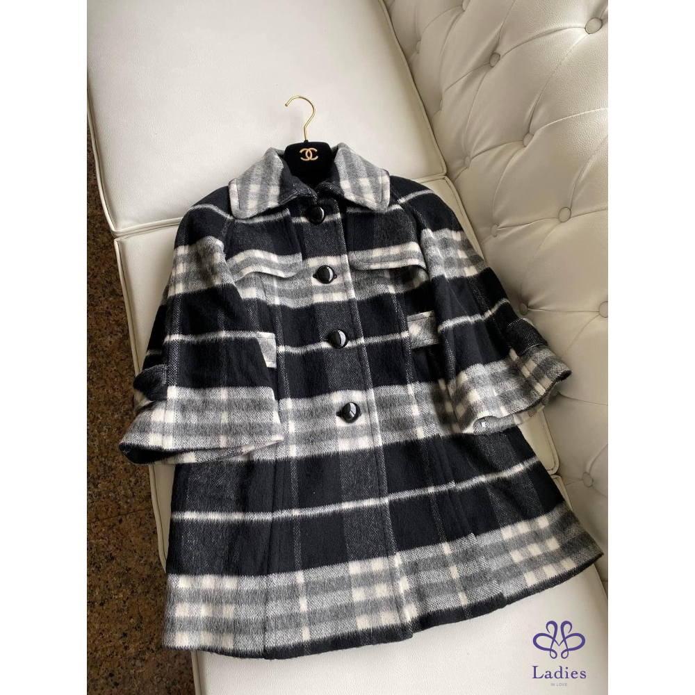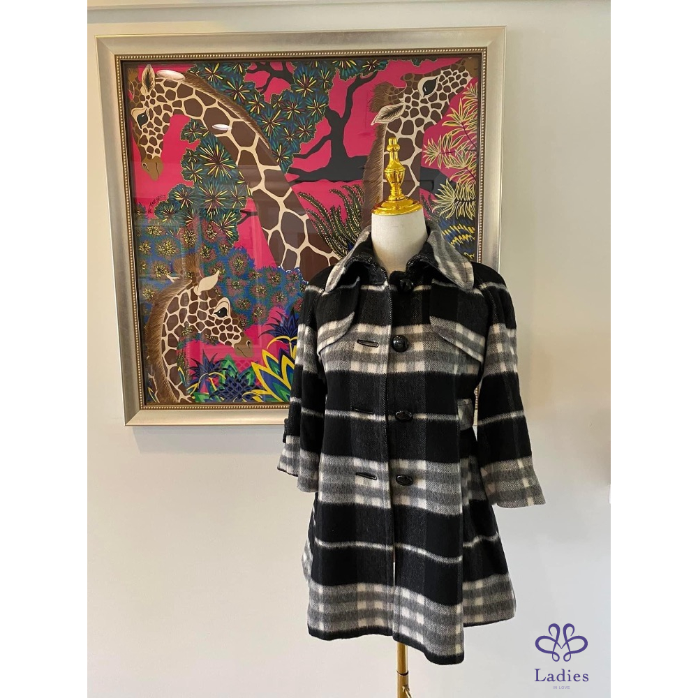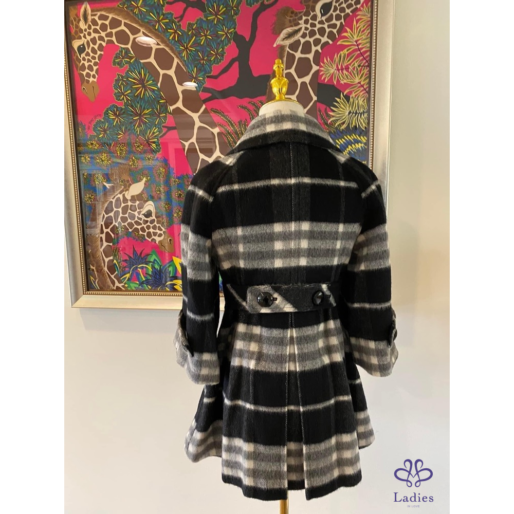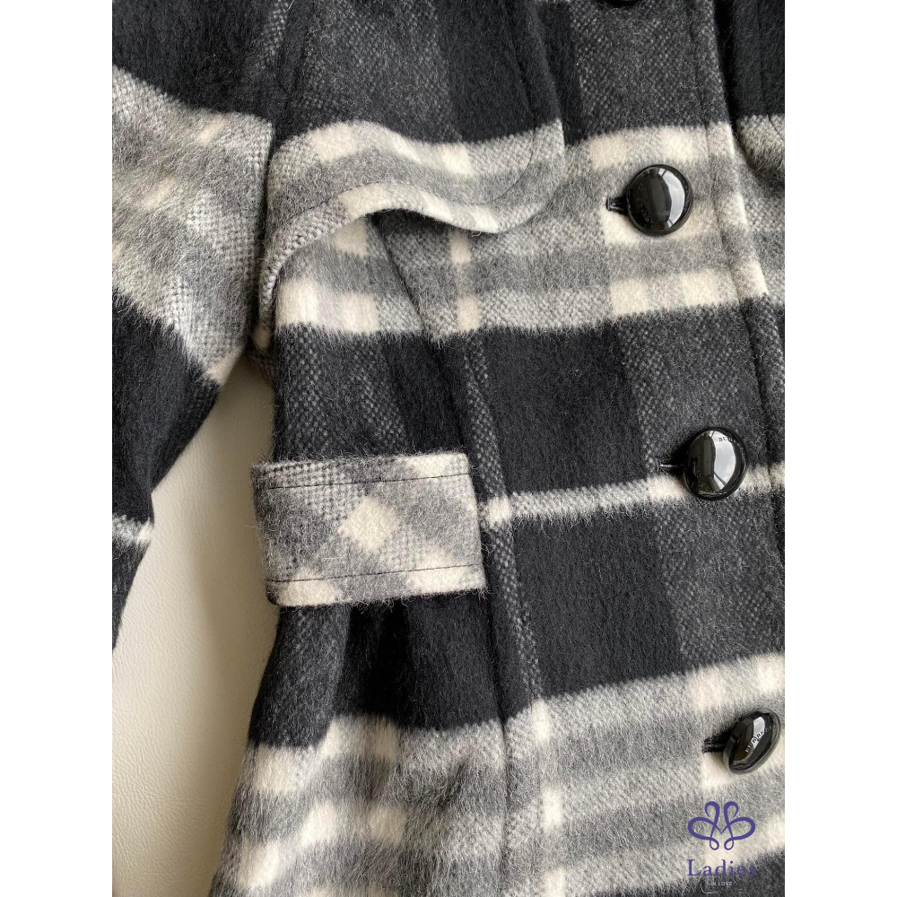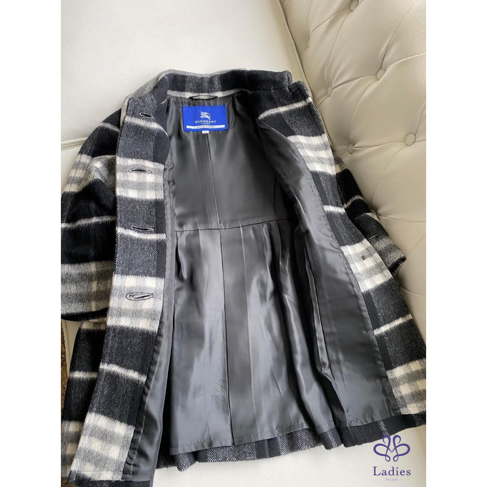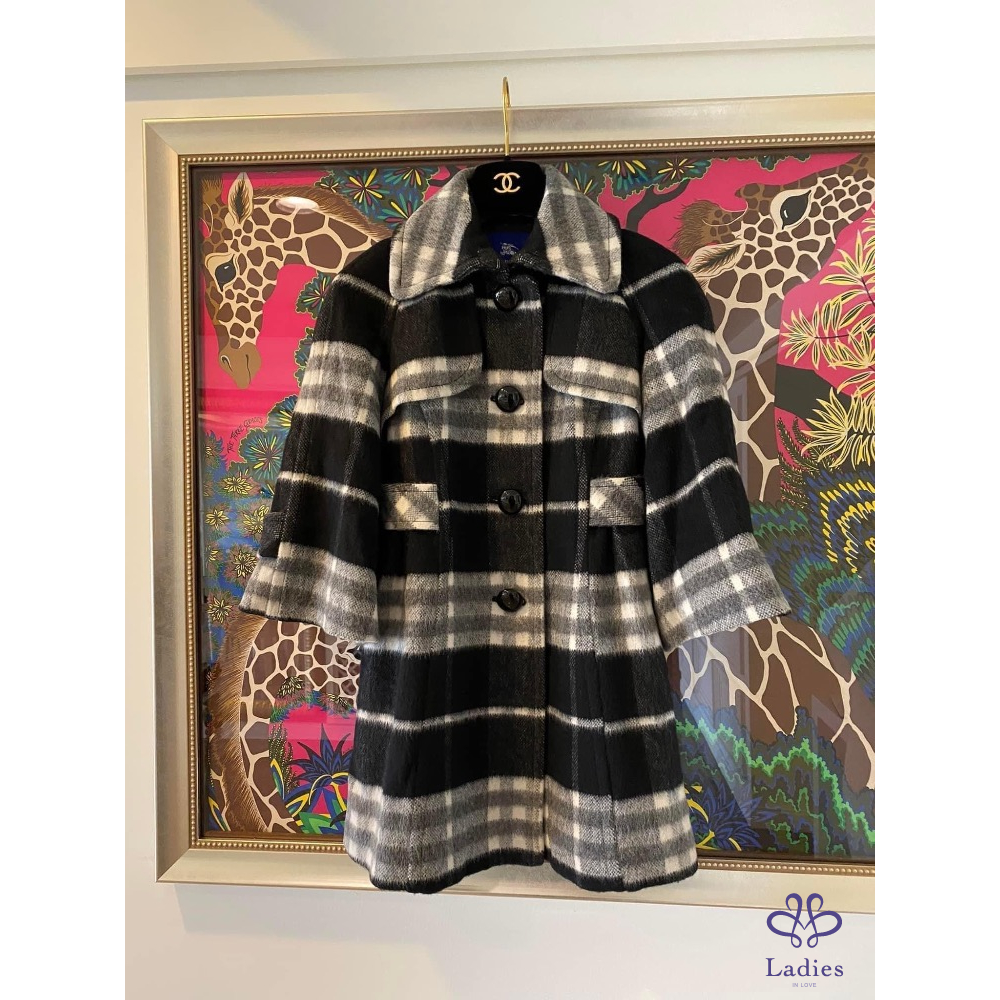 ????極美近新美品????BURBERRY 藍標 羊毛混毛海安哥拉山羊毛 黑灰大格紋外套
