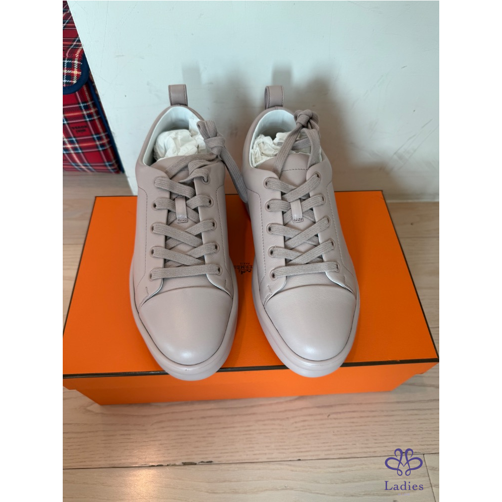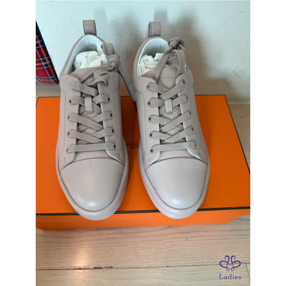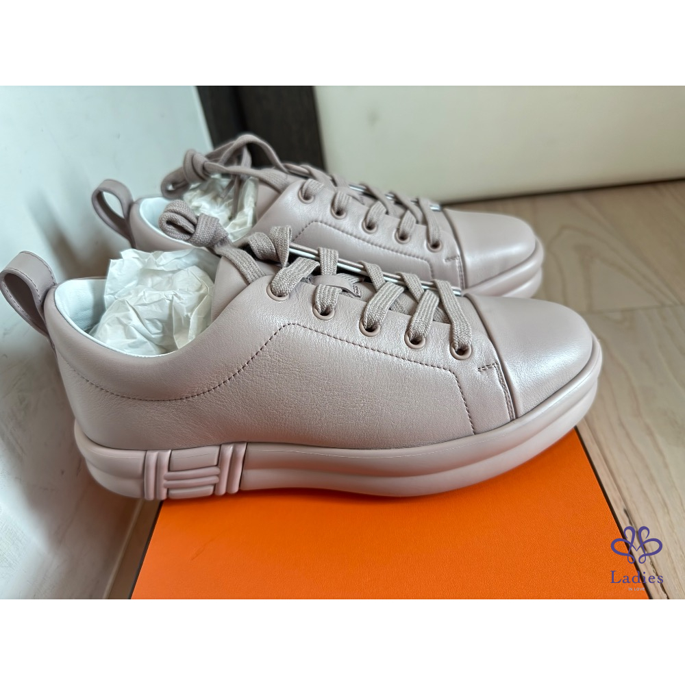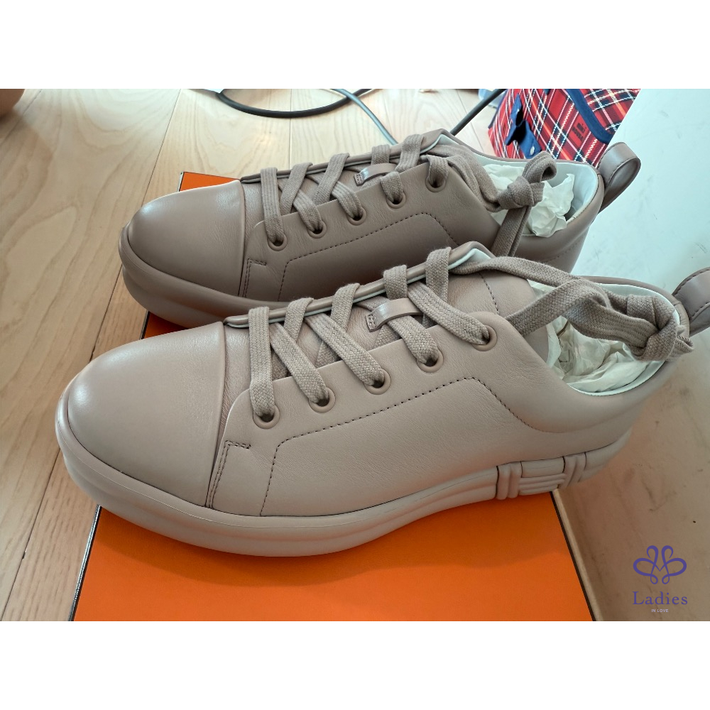 產品信息 寵編 #A000301 ❤️Hermès H字母球鞋 ❤️ 甜售$24800 這款非常舒服,購於專櫃$27200,2024年5月購入,尺寸:38全新,版型比較適合37.5或38的腳,運動鞋穿7.5或8號的都適合,好穿不咬腳,附件:原廠盒子、鞋帶白色、購證影本去個資,以板上喊我要優先,請於24小時內付款,已離櫃商品高標勿入/售出不退/保證真品。