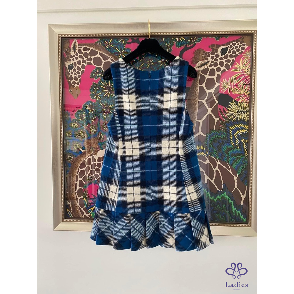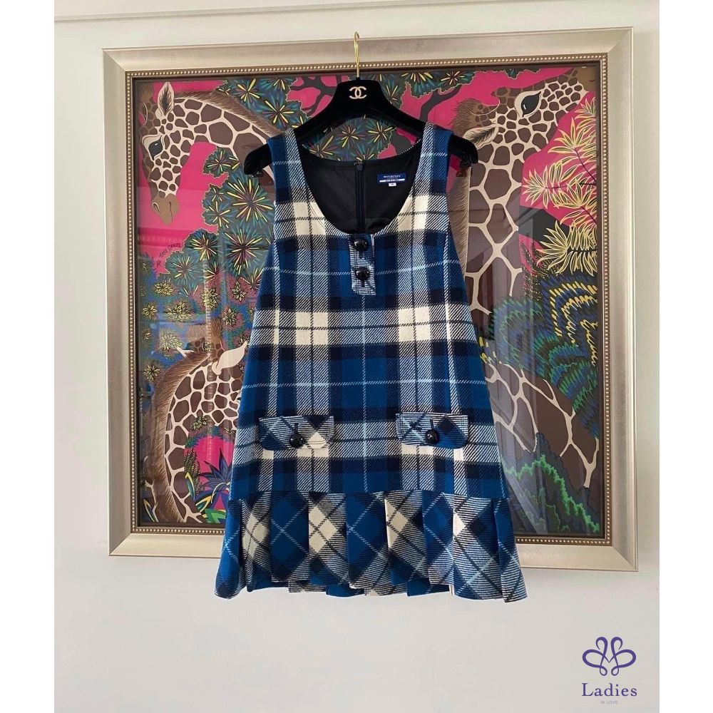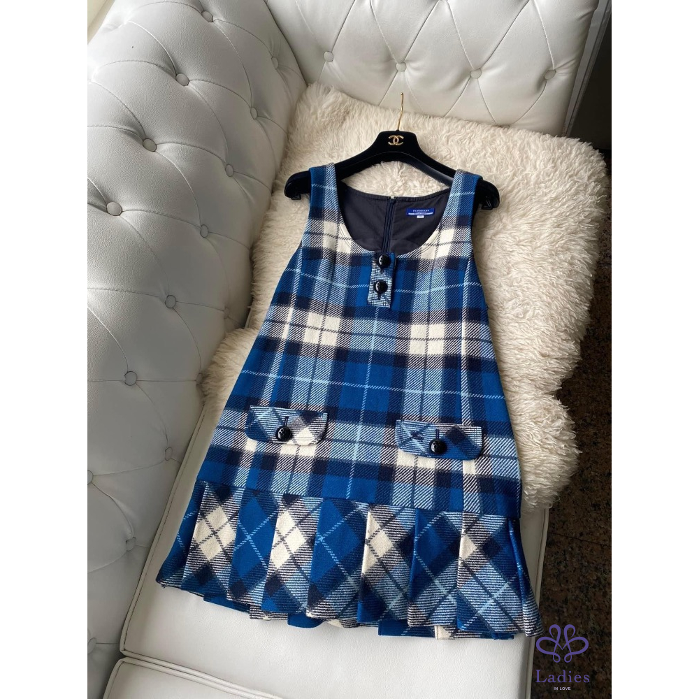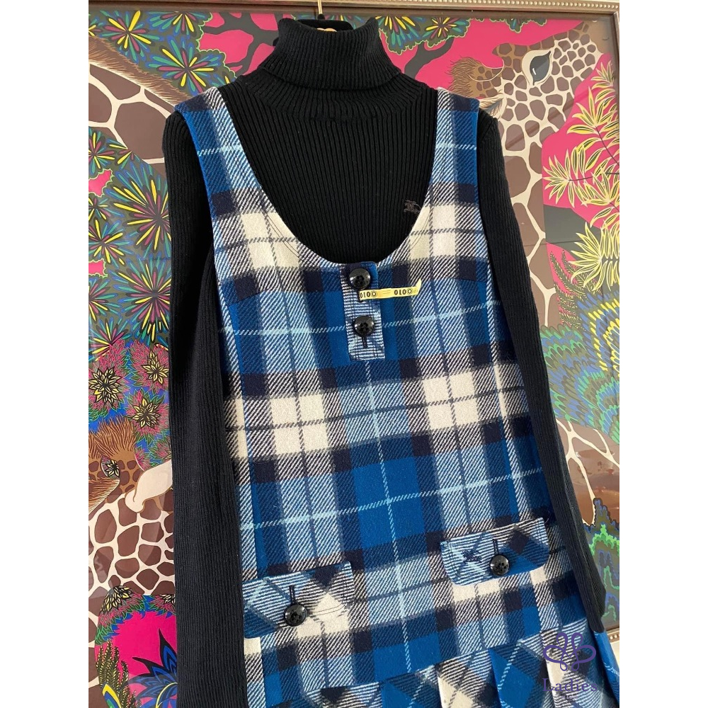 Burberry藍標 剌繡戰馬格紋羊毛背心式洋裝 (內搭短袖T,或是天冷加長袖上衣)