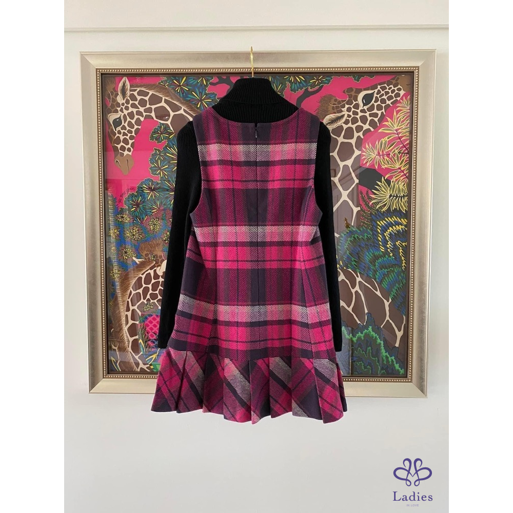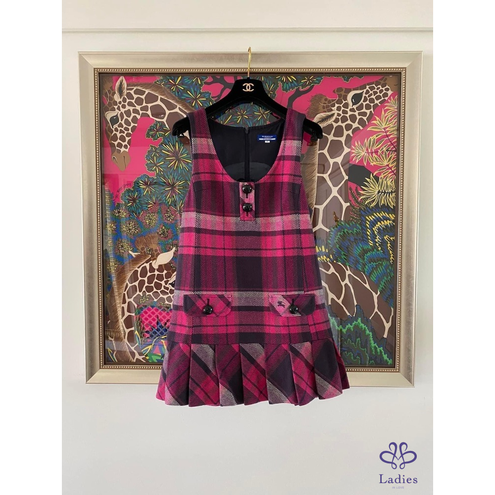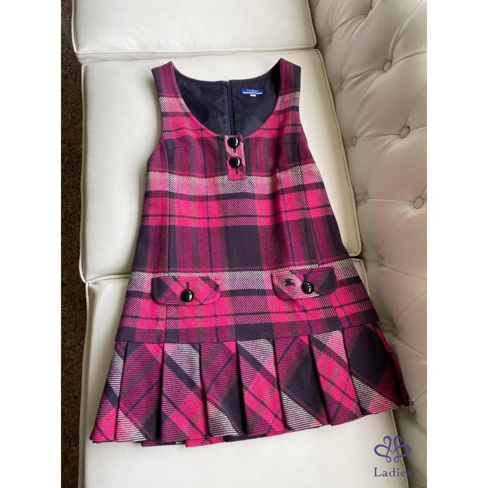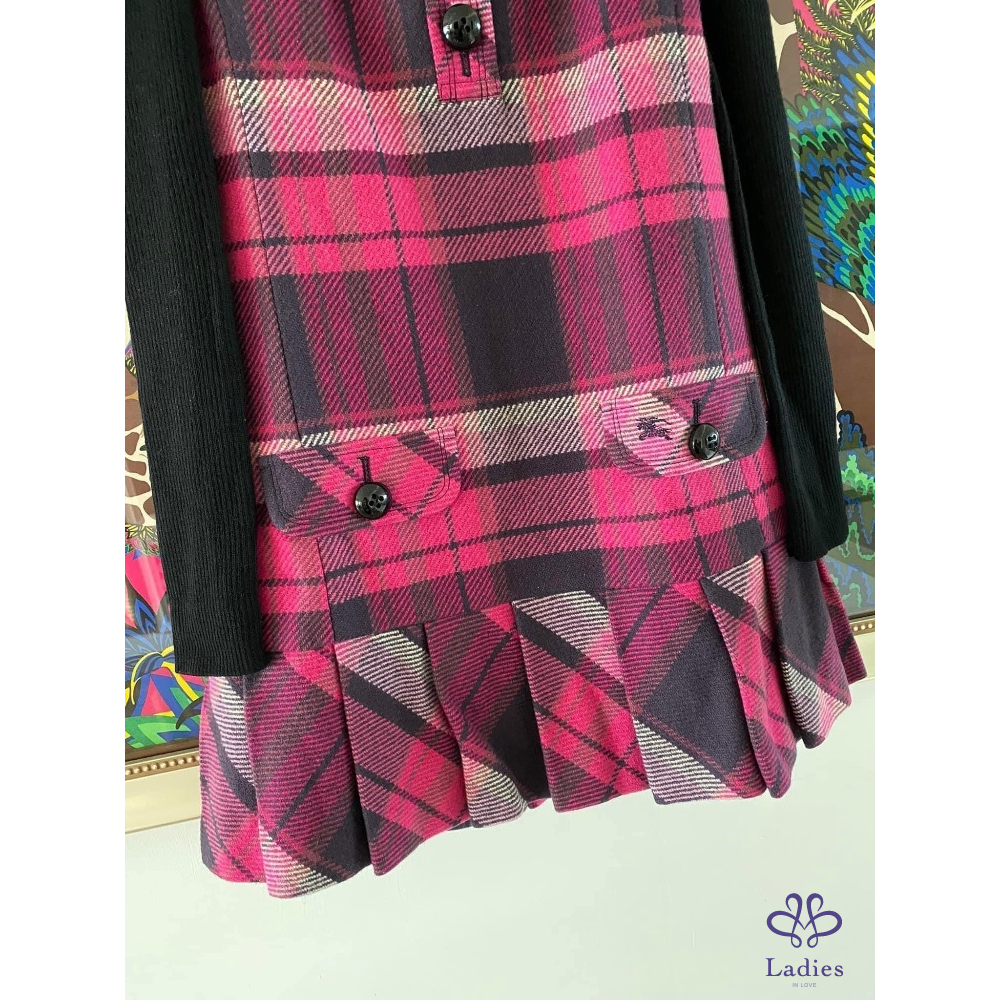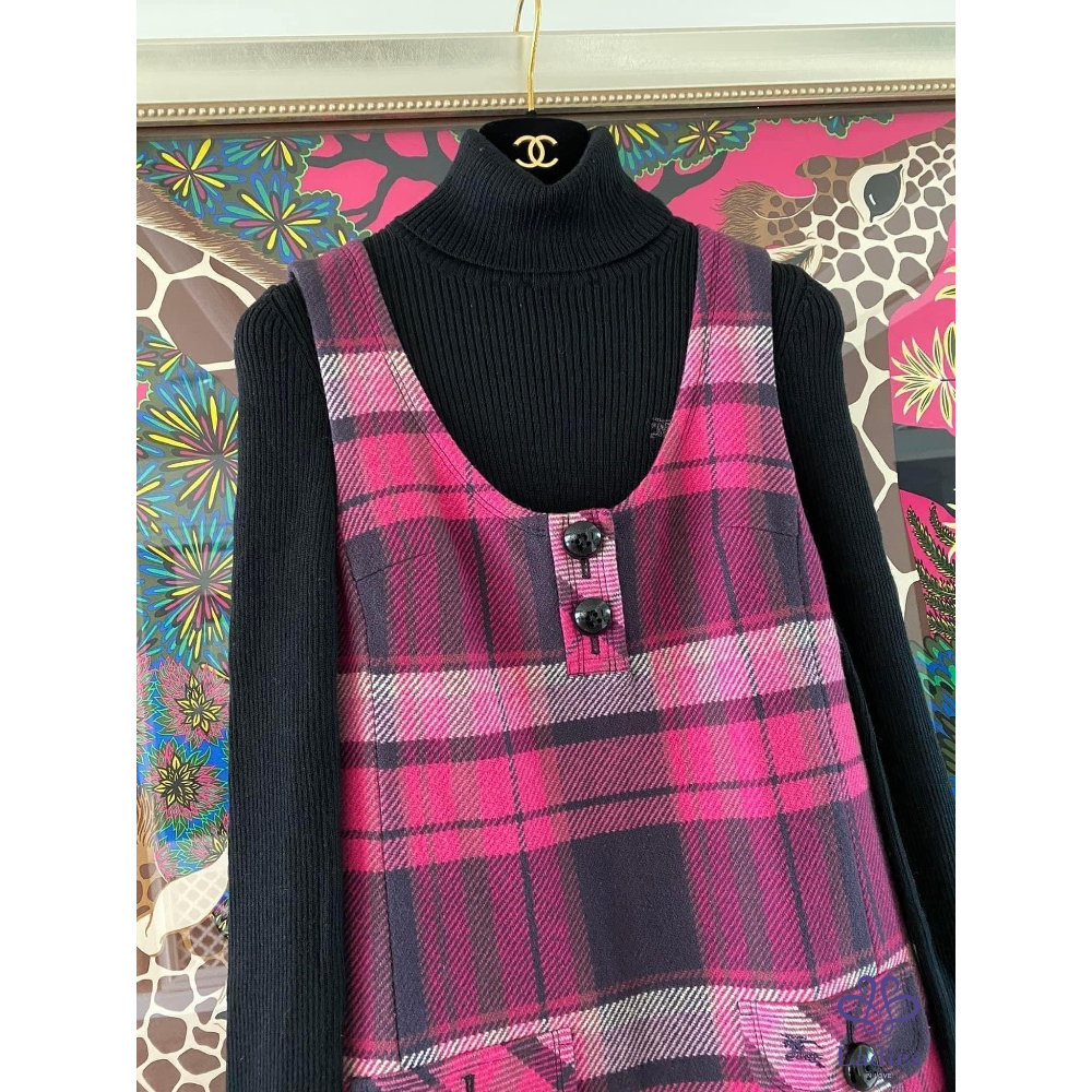 超美????Burberry藍標 ????剌繡戰馬格紋羊毛背心式洋裝 (內搭短袖T,或是天冷加米色或黑色長袖上衣)