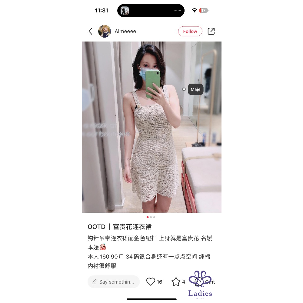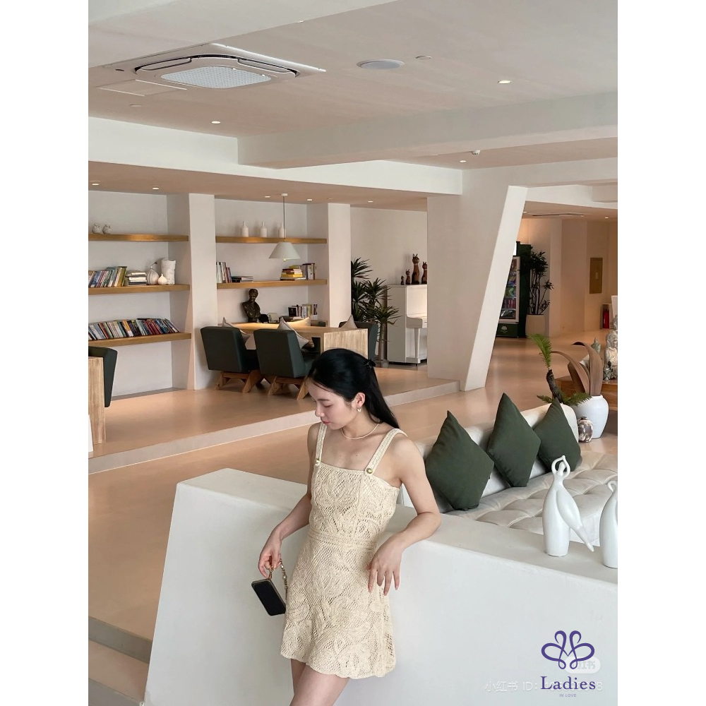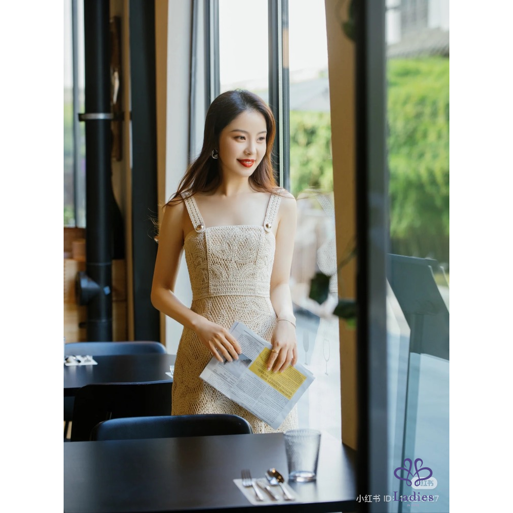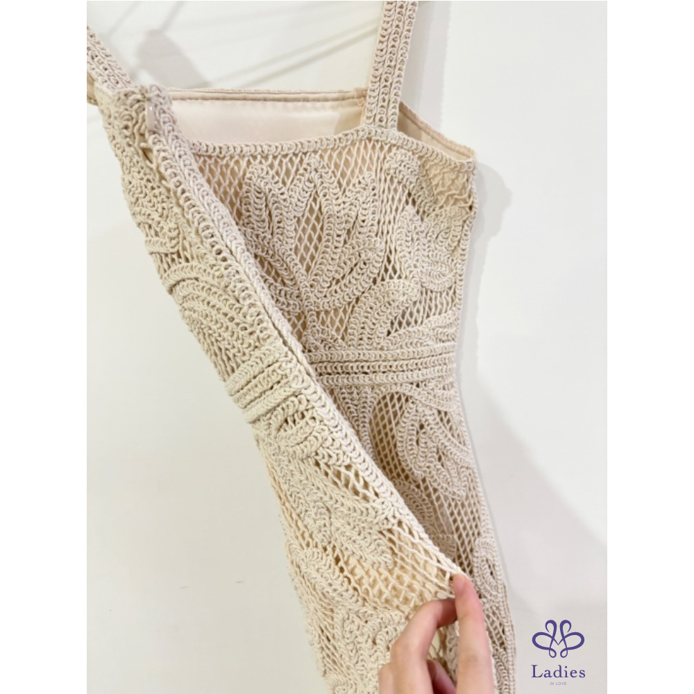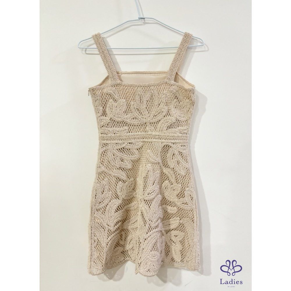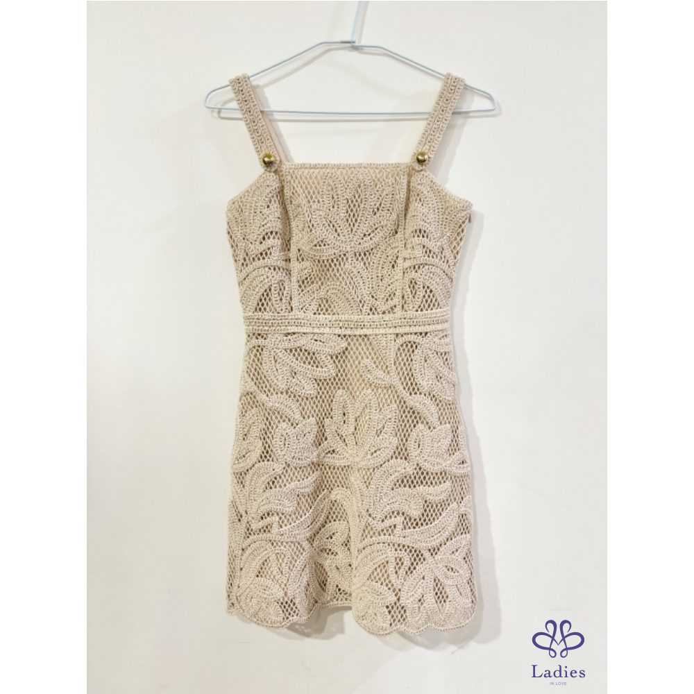 首頁 精品服飾 MAJE 米白鉤花蕾絲金屬釦吊帶裙