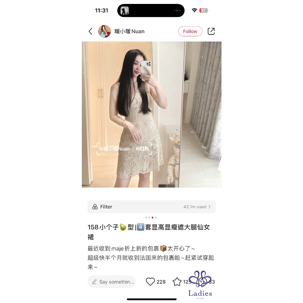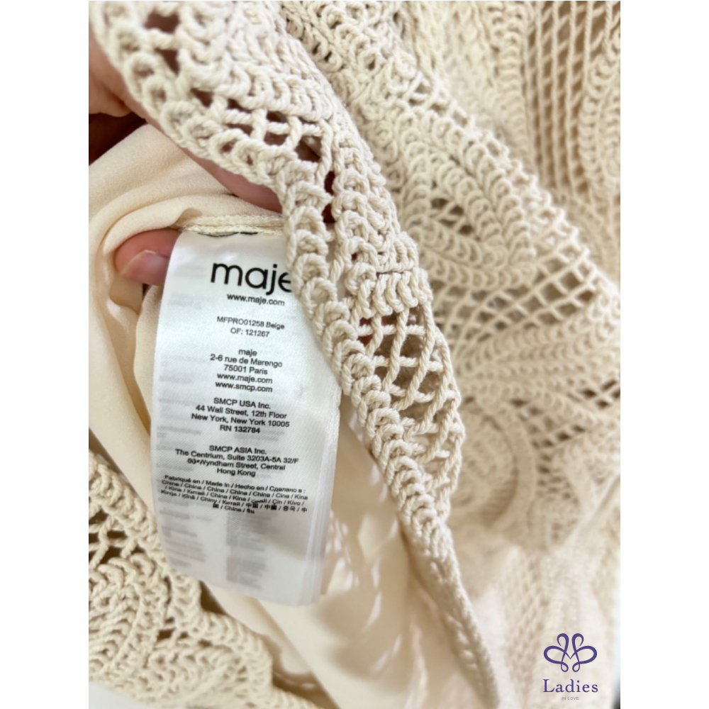 MAJE 米白鉤花蕾絲金屬釦吊帶裙