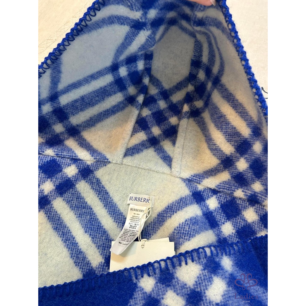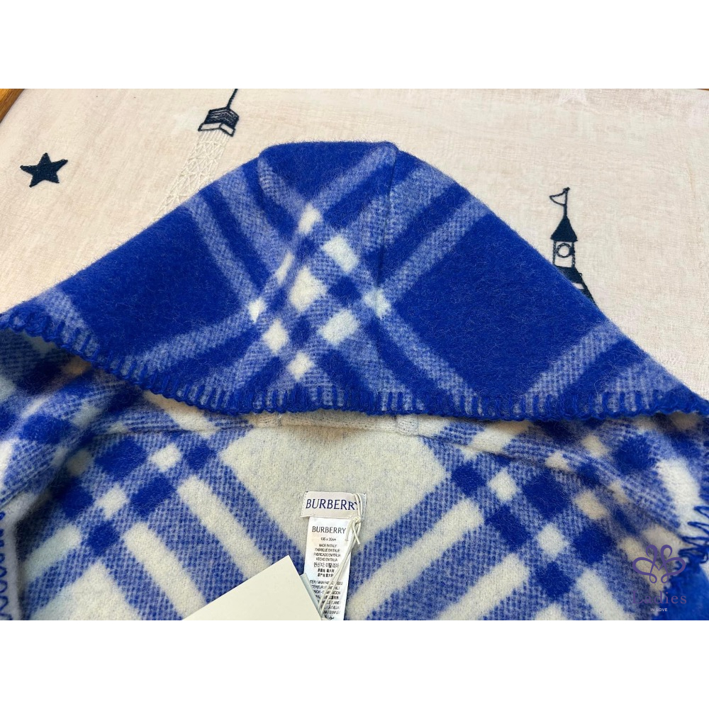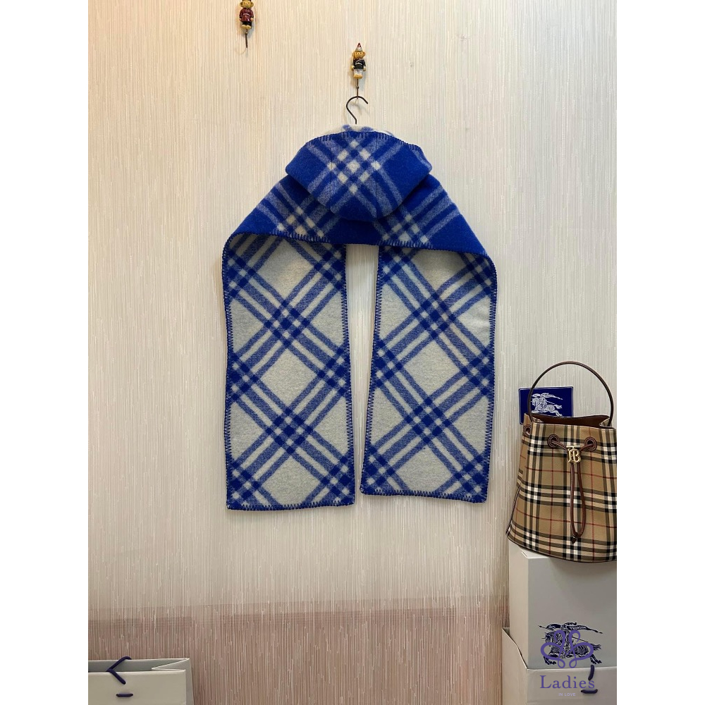 ????BURBERRY英國黑標騎士藍格紋連帽圍巾
