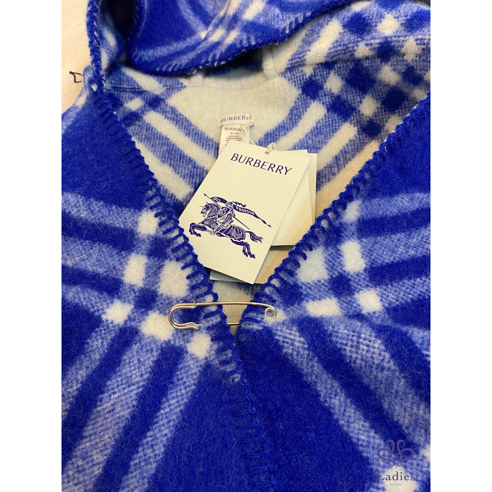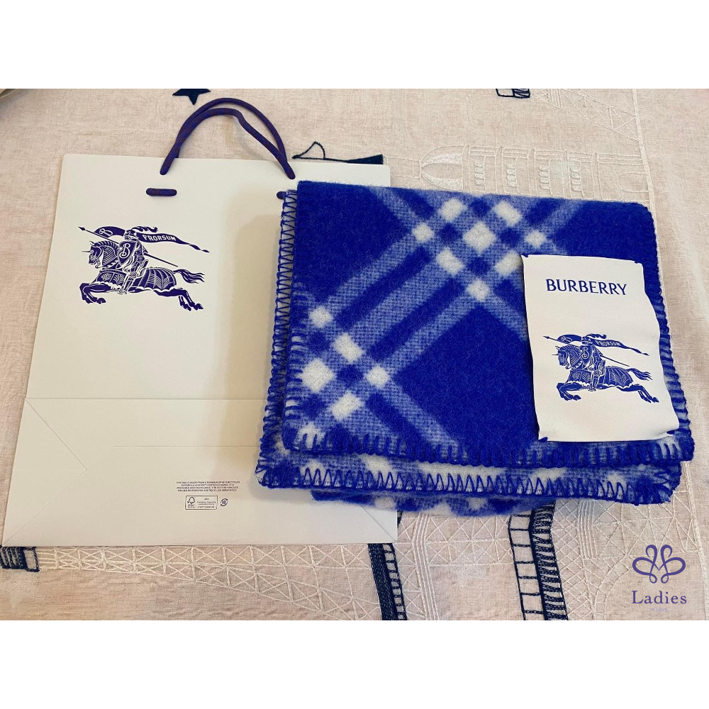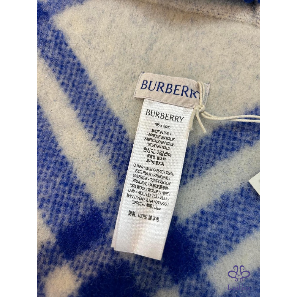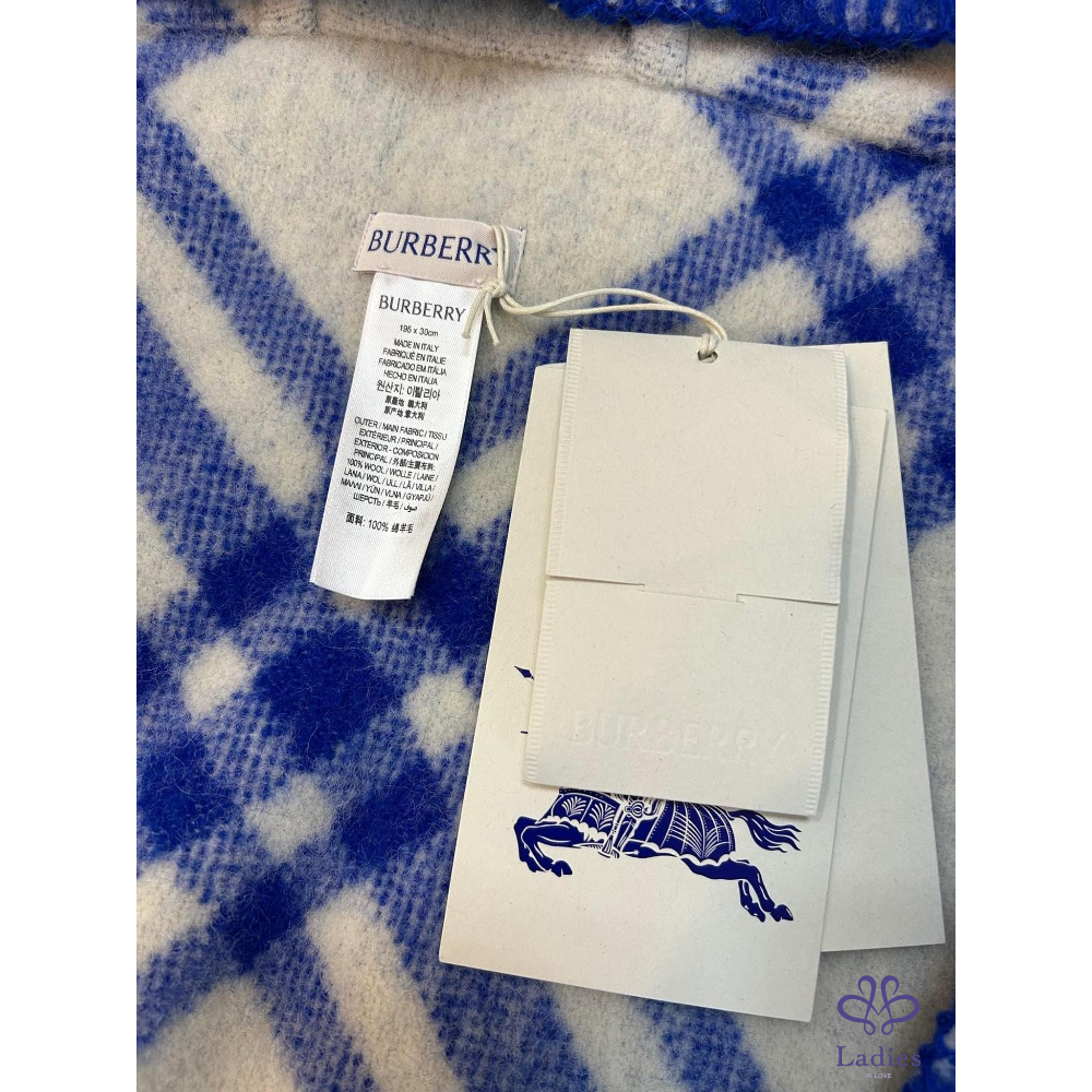 ????BURBERRY英國黑標騎士藍格紋連帽圍巾