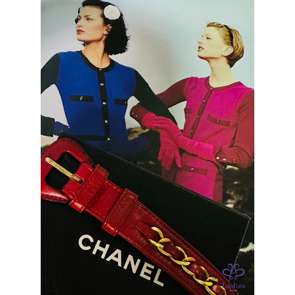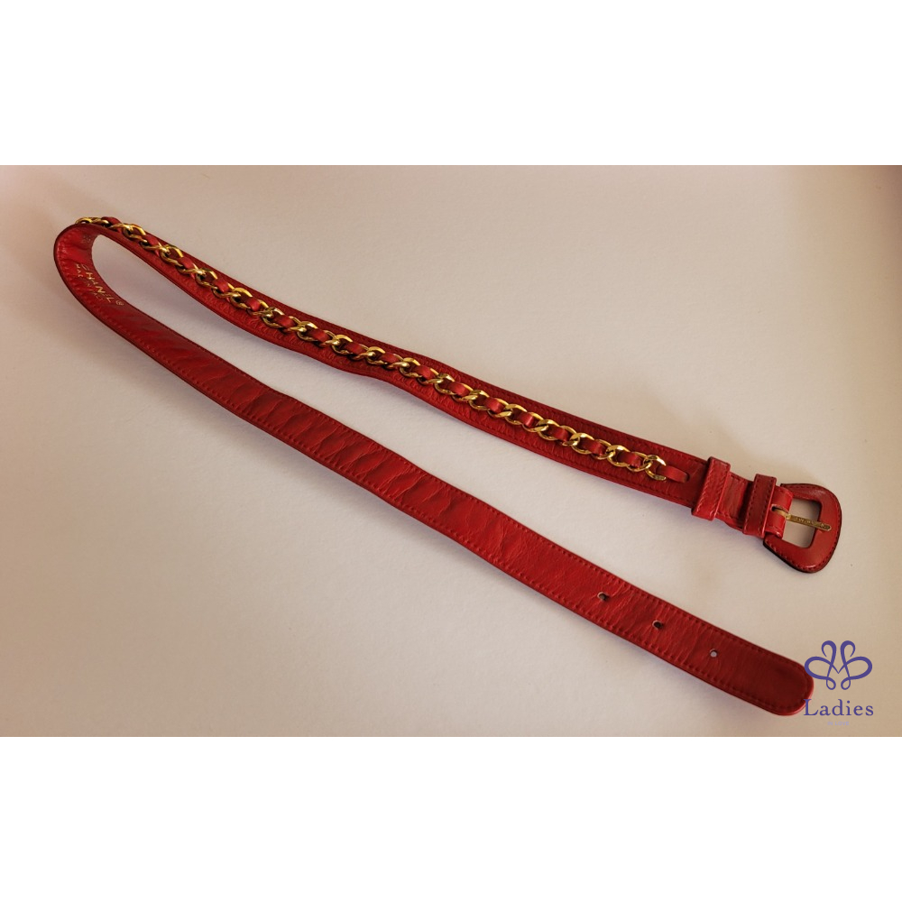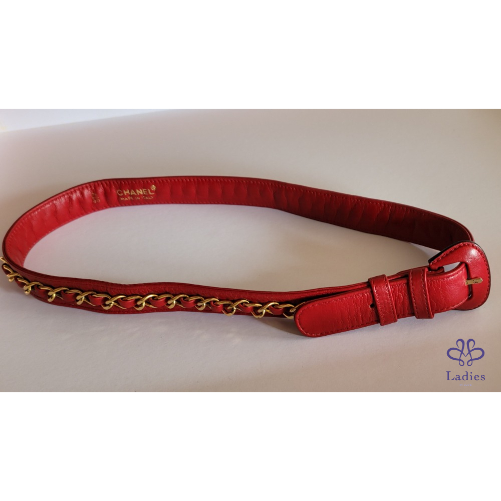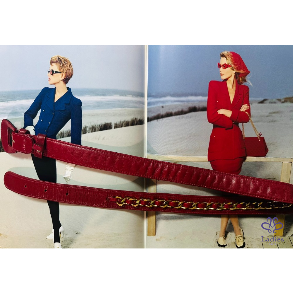 ~CHANEL Vintage 紅色小羊皮金鍊腰帶75刻印