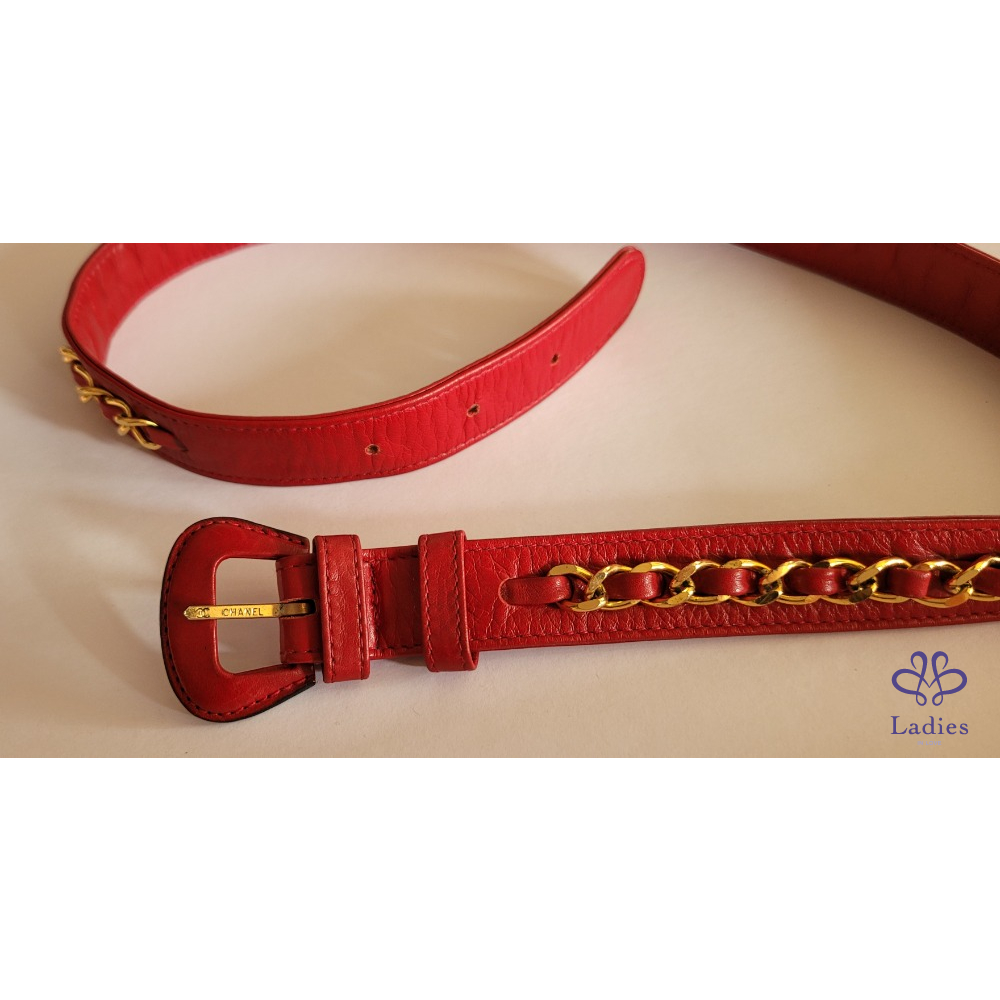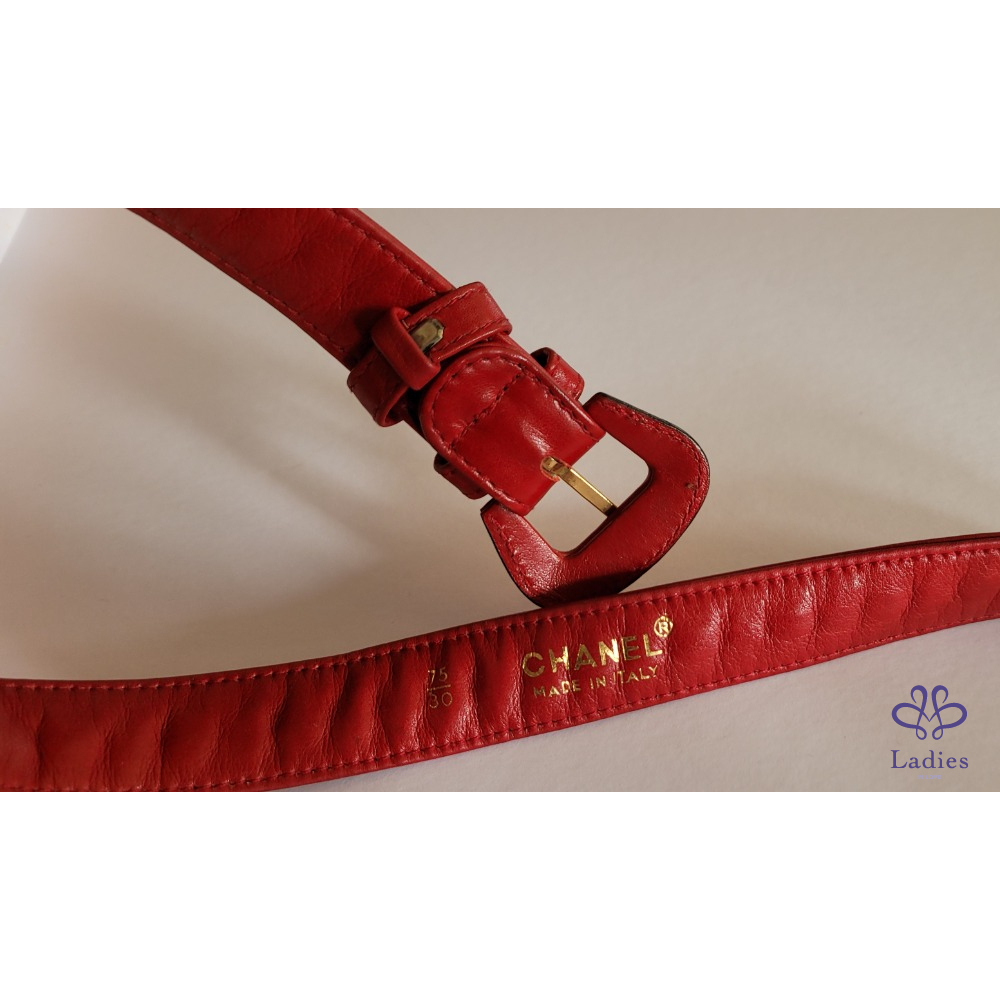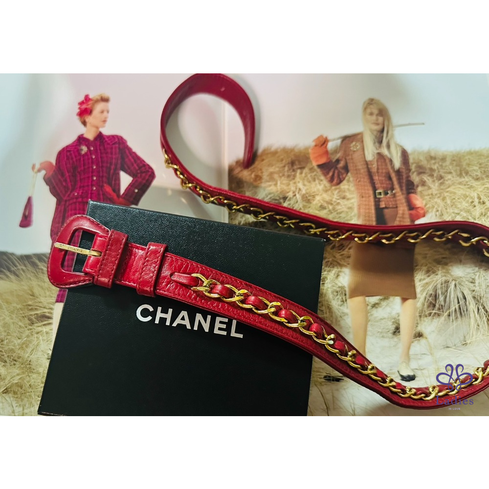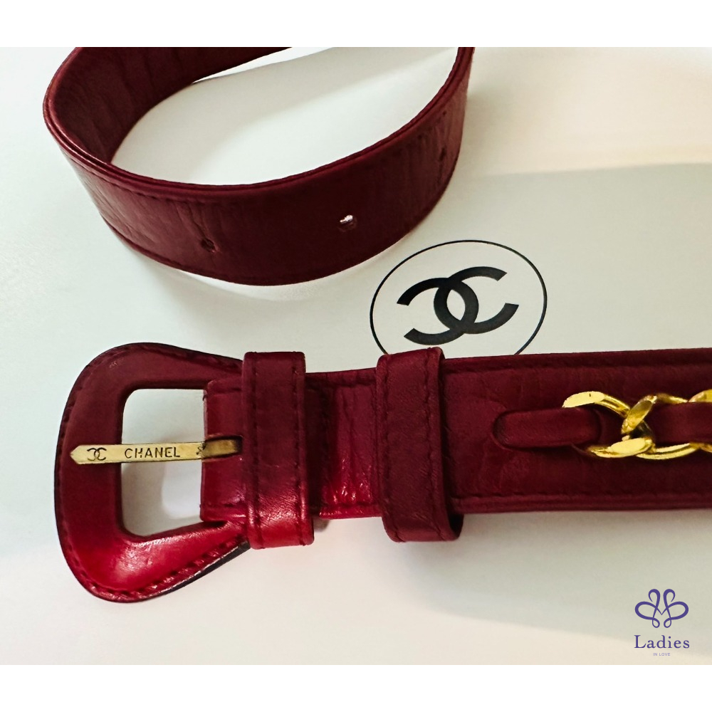 ~CHANEL Vintage 紅色小羊皮金鍊腰帶75刻印