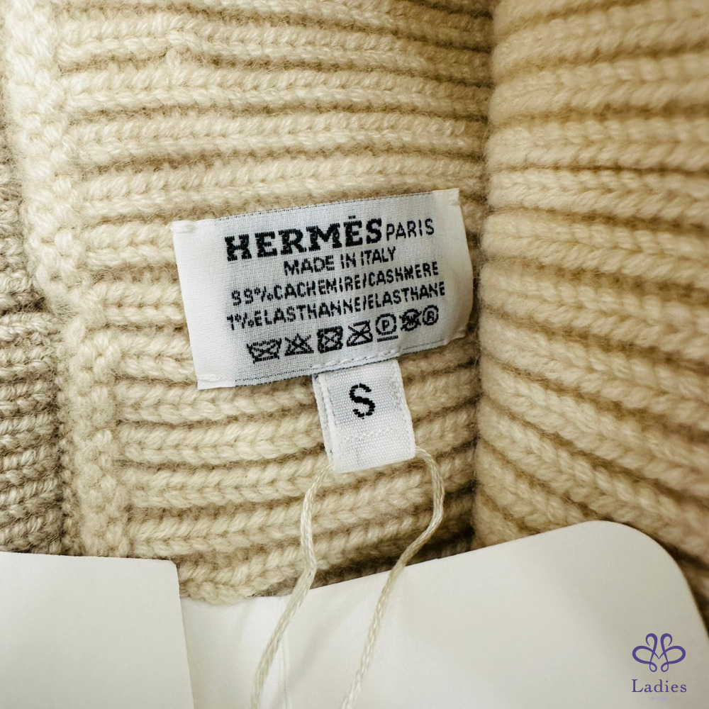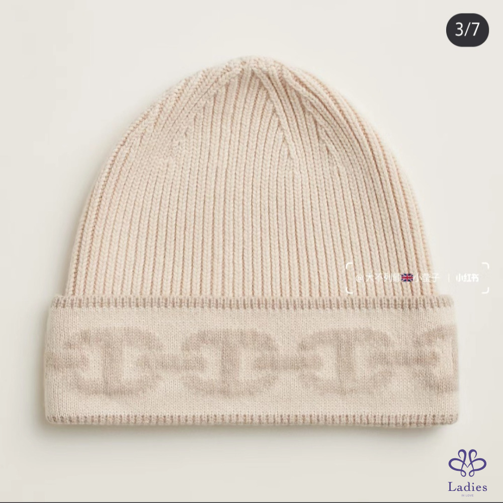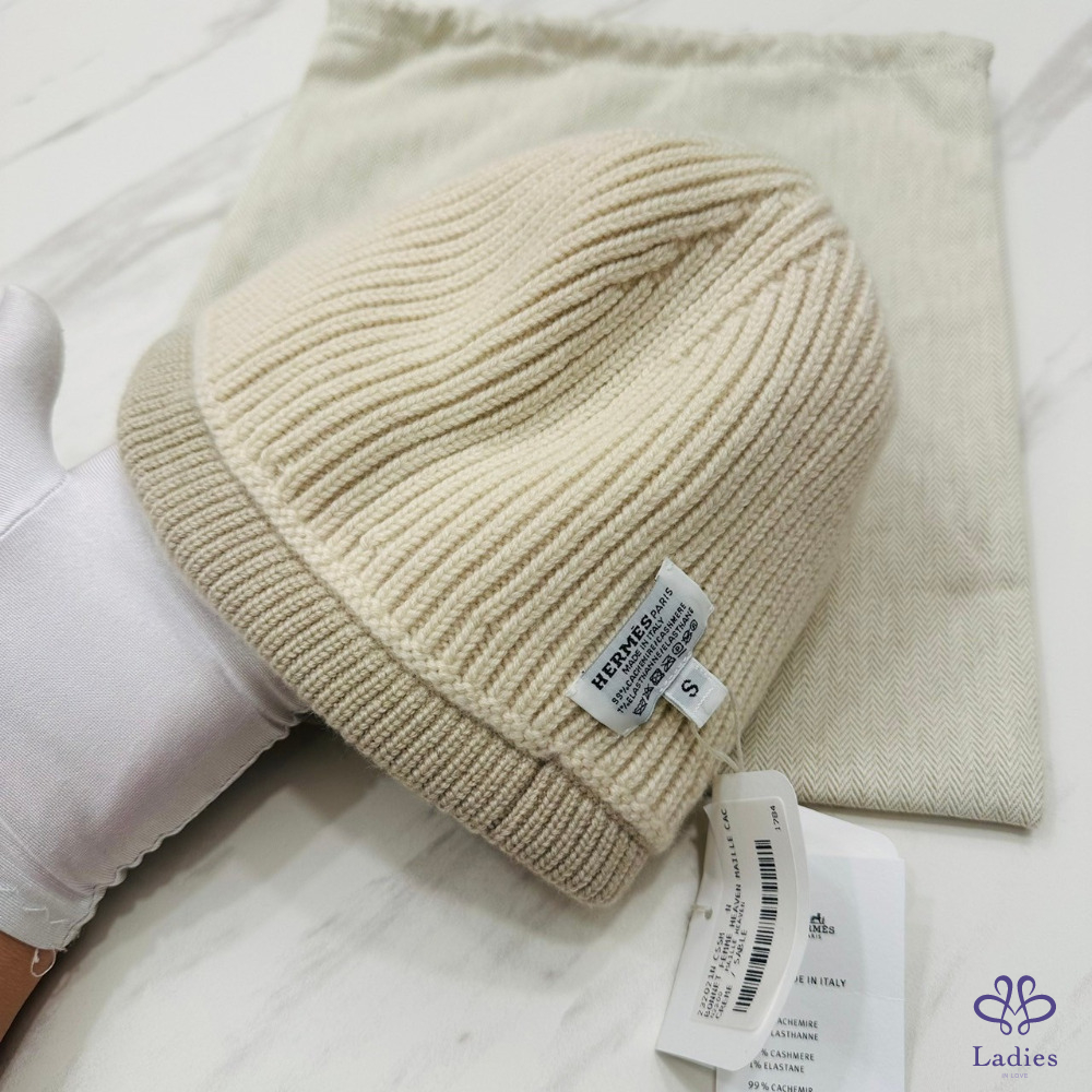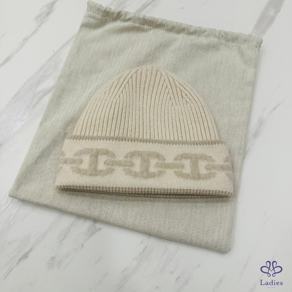 售 Hermes Heaven Bonnet Beanie x creme/sable 愛馬仕經典豬鼻標誌奶油色反折針織帽/毛帽/毛線帽/冷帽/帽子