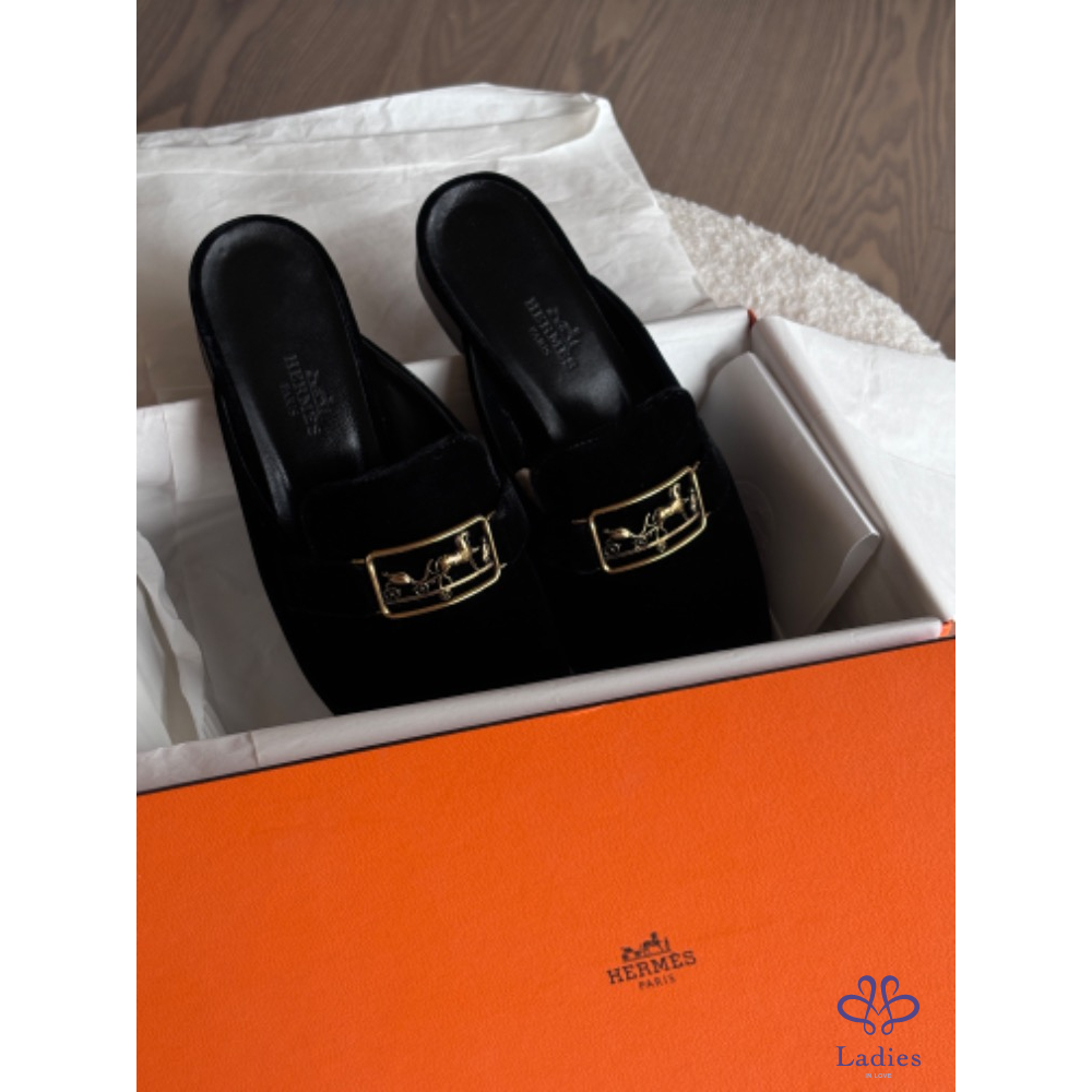 Hermes 天鵝絨穆勒鞋 36.5