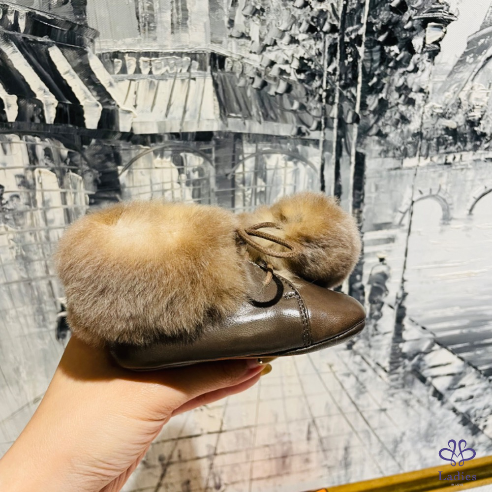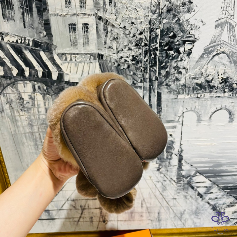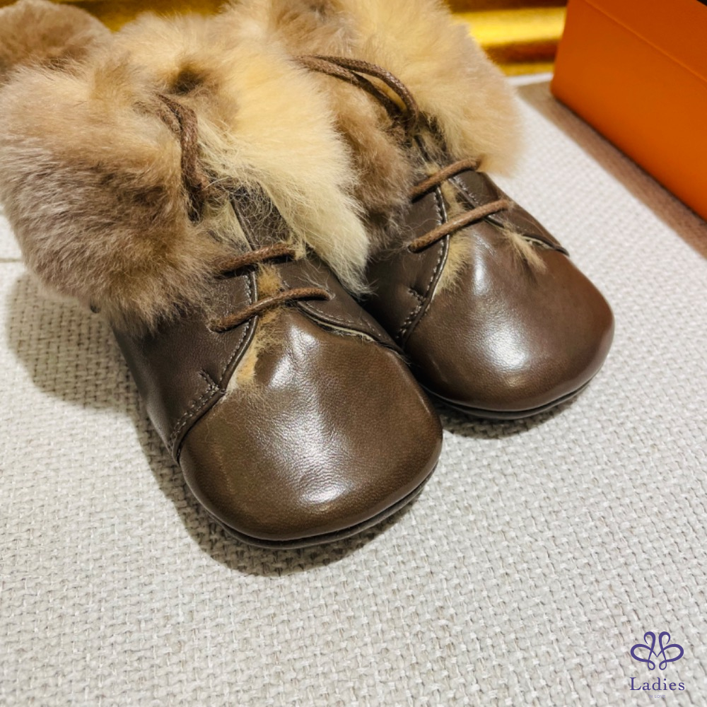 Hermès 兔毛寶寶鞋 深棕色