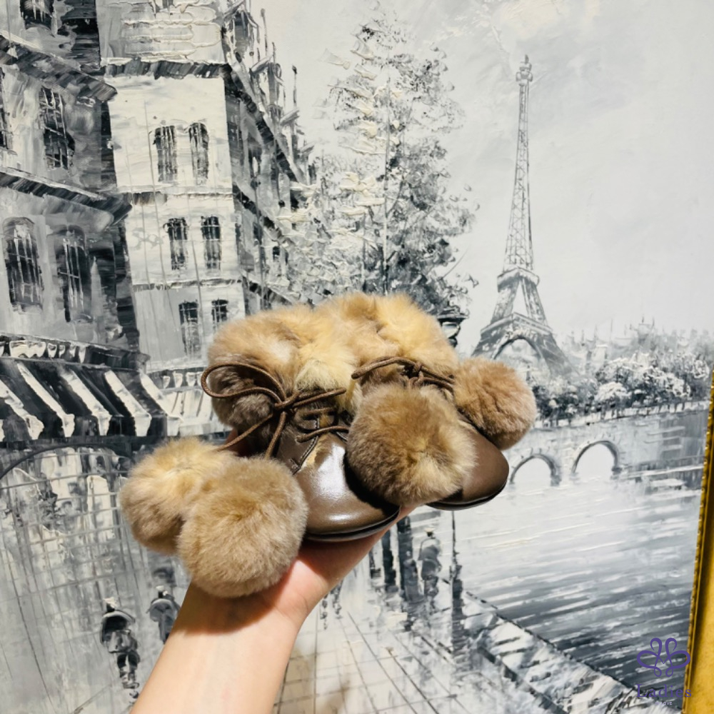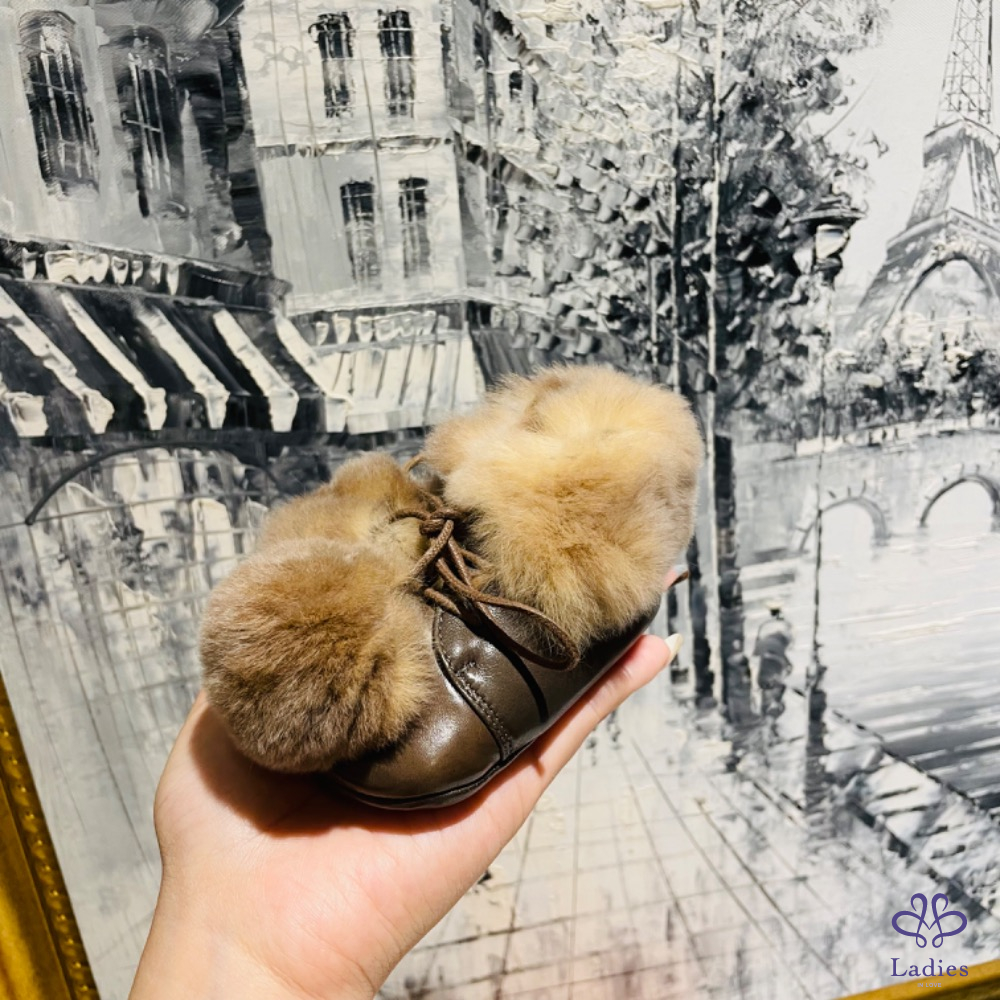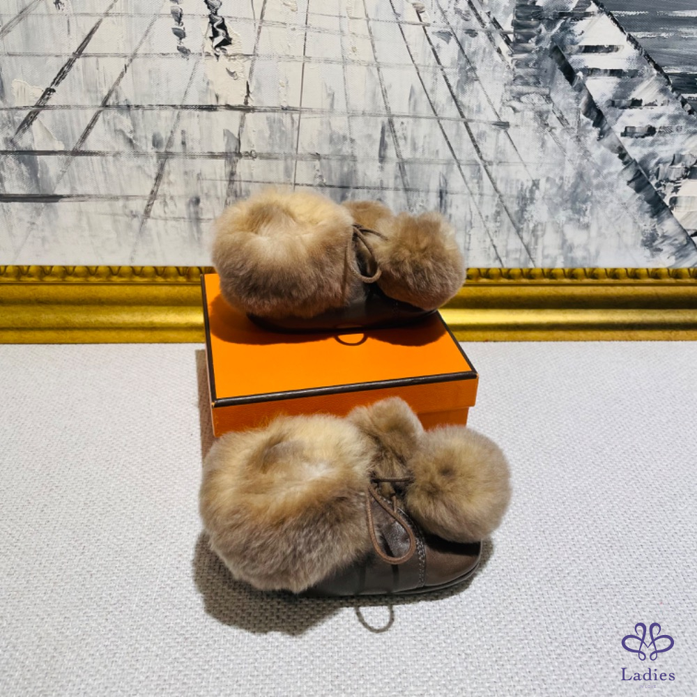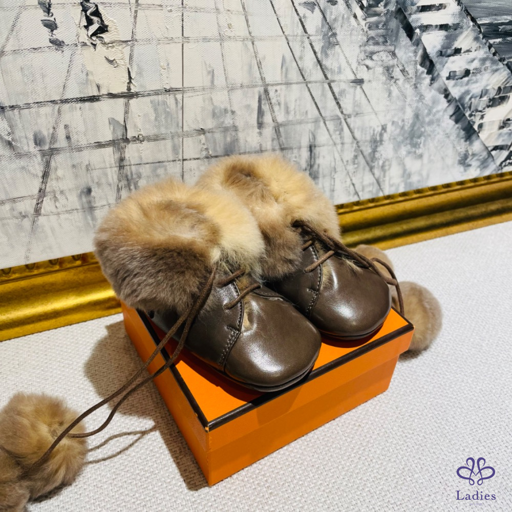 Hermès 兔毛寶寶鞋 深棕色
