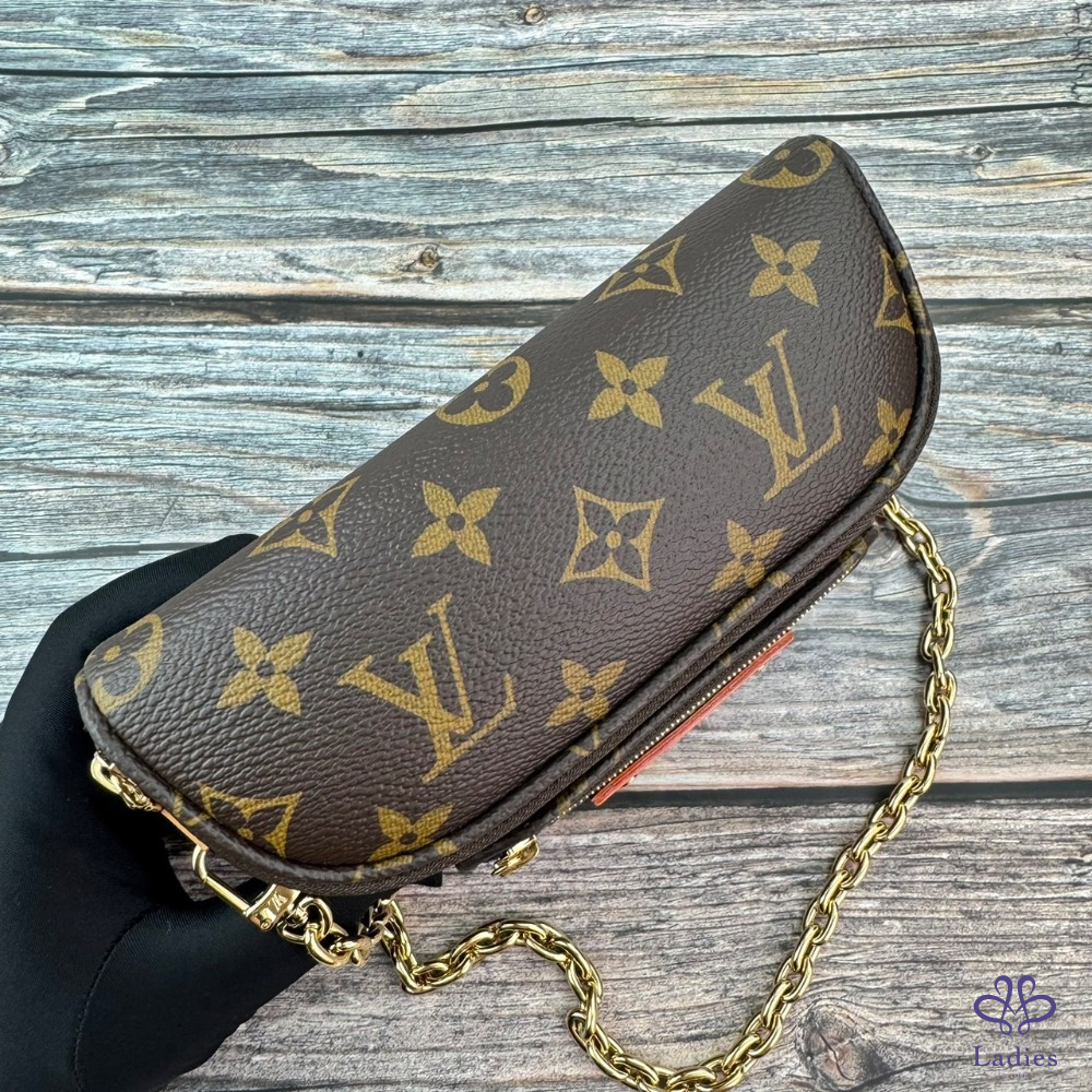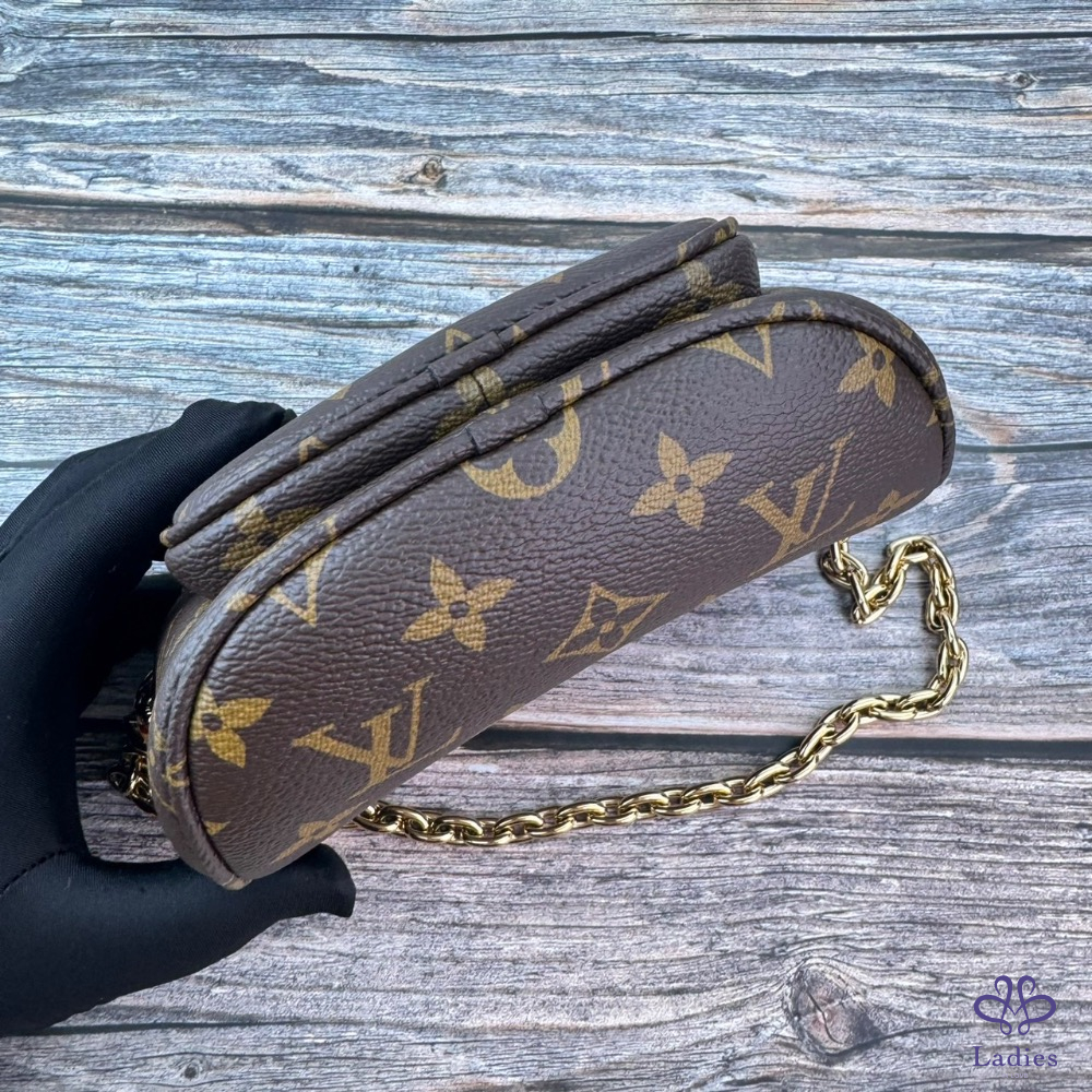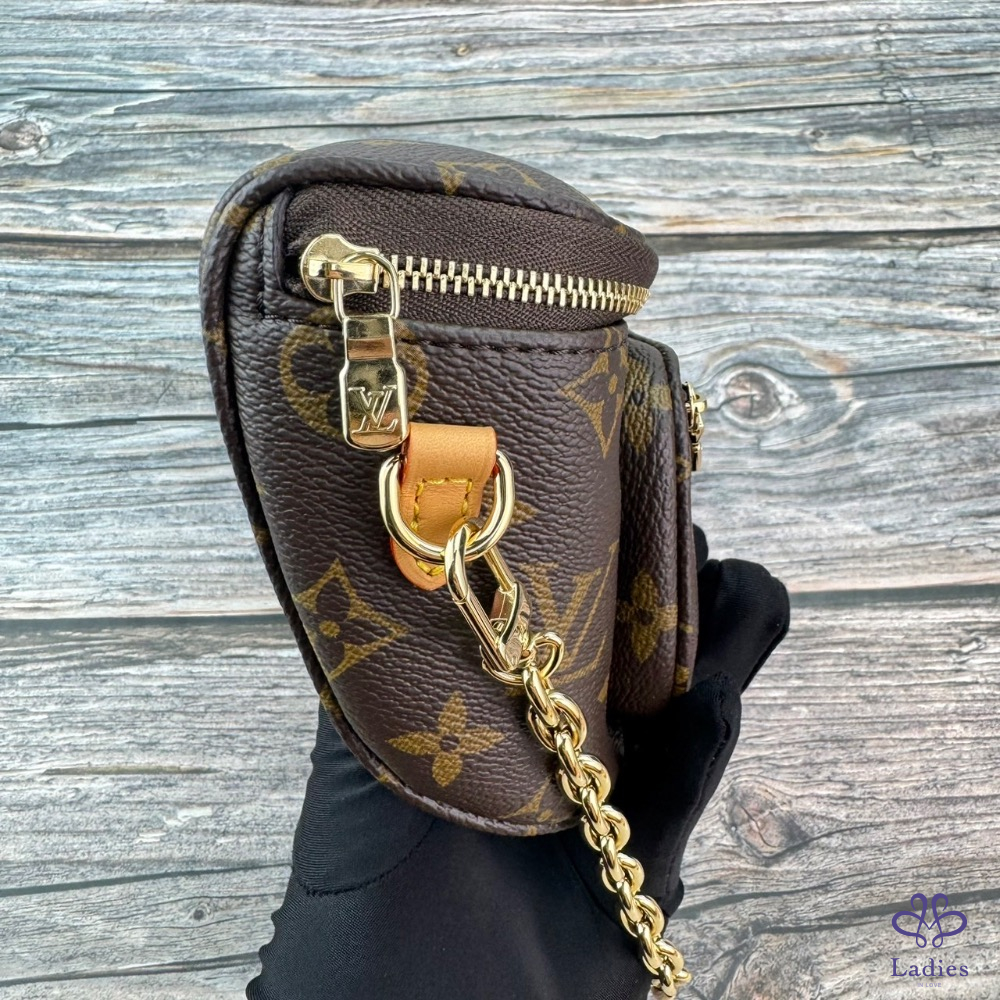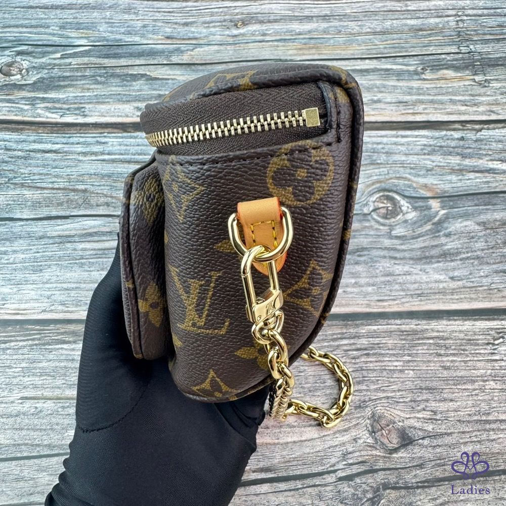 這款以Monogram帆布製造的Mini Bumbag以路易威登的柔美設計重新演繹時尚的腰包。款式採用多功能設計,備有可拆式的可調節長度肩帶,以品牌標誌性的天然皮革製造,並配上可拆式金色鏈帶,兼備實用功能與時尚裝飾。腰包設有一個拉鏈主隔層及一個拉鏈前袋,並飾以有壓花皮革標籤。