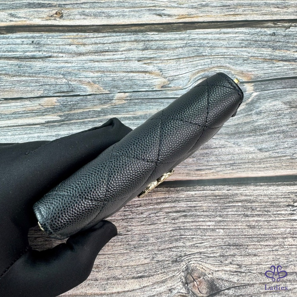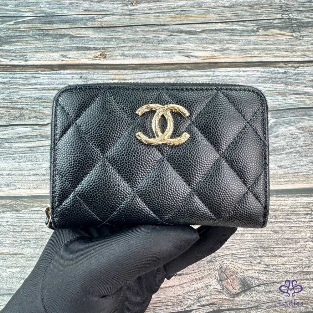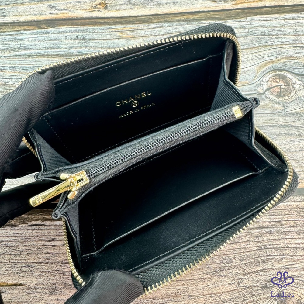 CHANEL 24S荔枝牛皮大ㄇ字零錢包/卡夾 芯片款 鈔票對折可入‼️