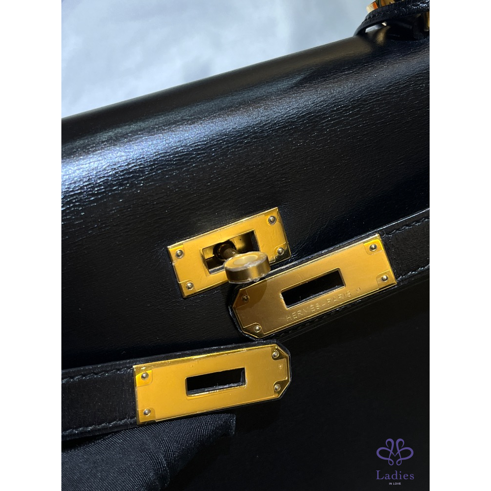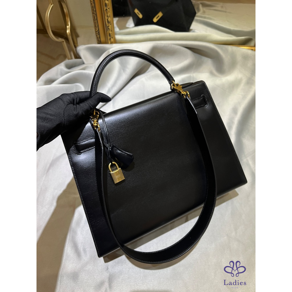 產品信息 日本購入35,因閒置故割愛售出 Kelly32優雅經典,黑金配色更顯質感 整體狀況很漂亮,box皮質光澤超級美,容量耐裝,出差逛街都非常適合百搭,簡單搭配吊飾絲巾更多變亮眼!! 尺寸約:32*11.5*23cm左右 手把高8.5cm 刻印:圈U 後貼膜 配件:防塵袋/鎖頭/鑰匙/非原廠背帶/Entrupy正品證書 圖片已盡力拍攝高標請繞道謝謝