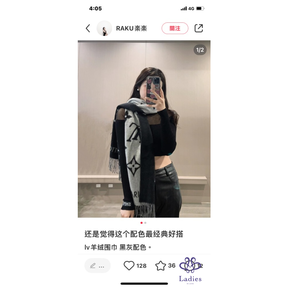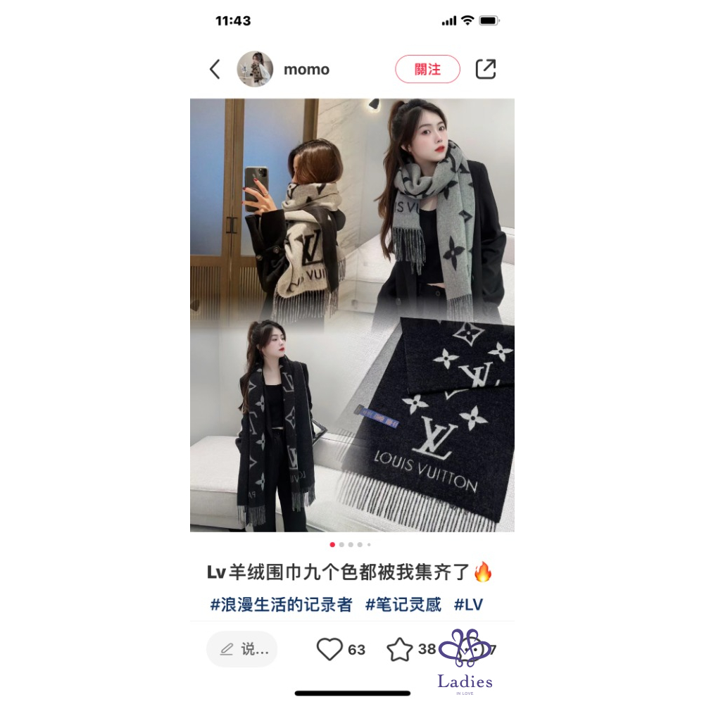 首頁 精品配件 LV爆款羊絨圍巾(黑灰)