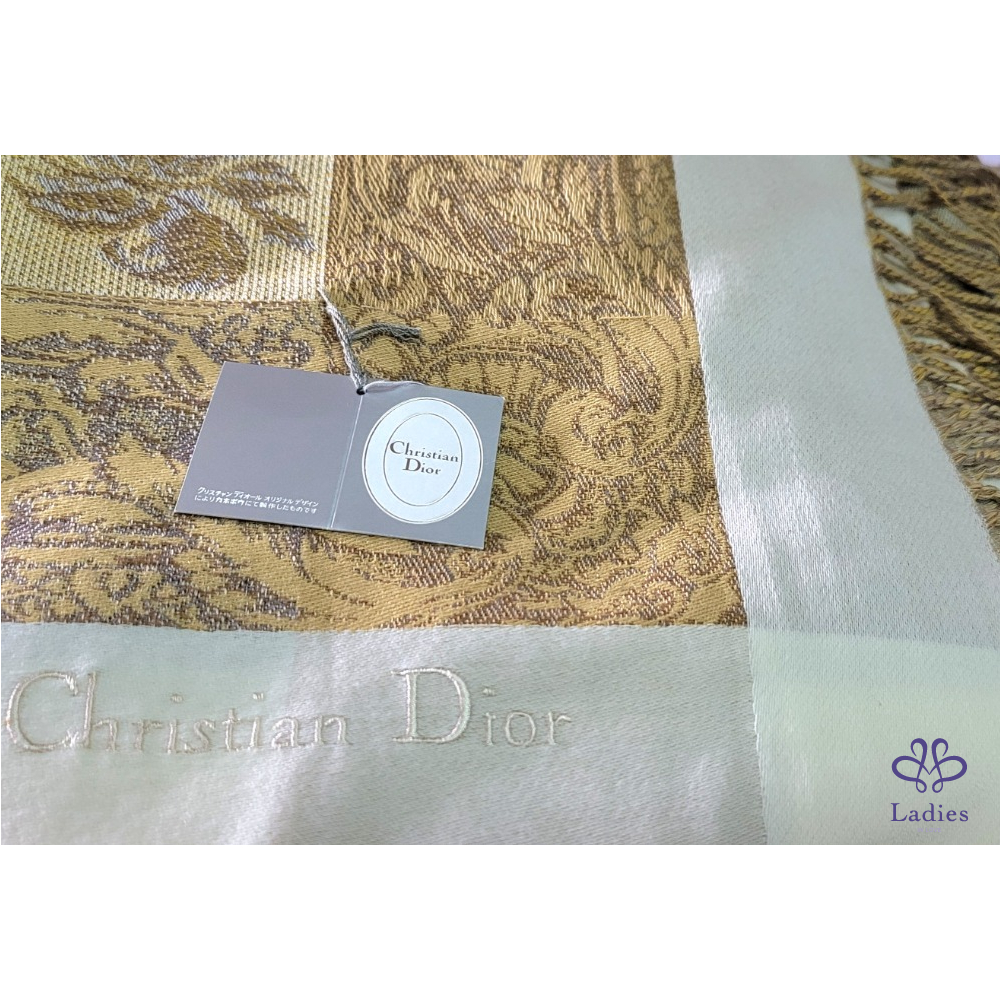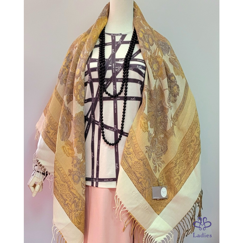 ~Christian Dior 全新 四邊流蘇緹花圖案大圍巾
