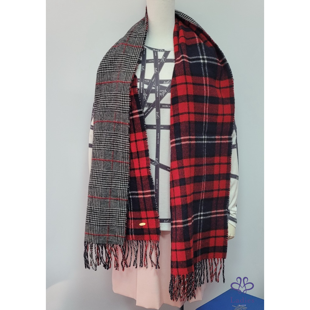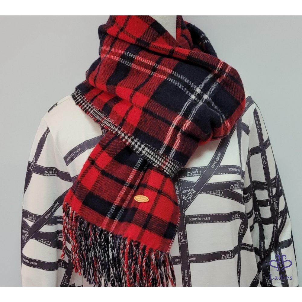 ~BURBERRY Blue Label 100%wool雙面紅黑格紋圖案長圍巾