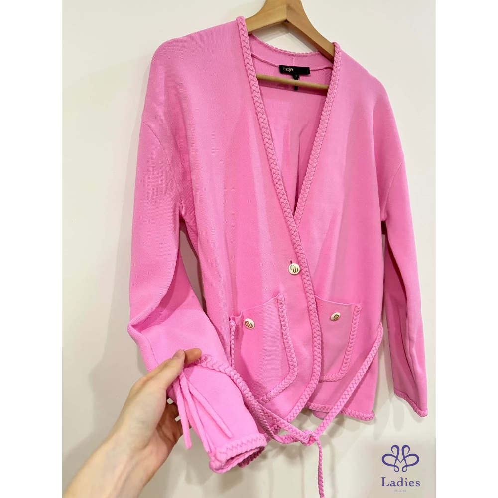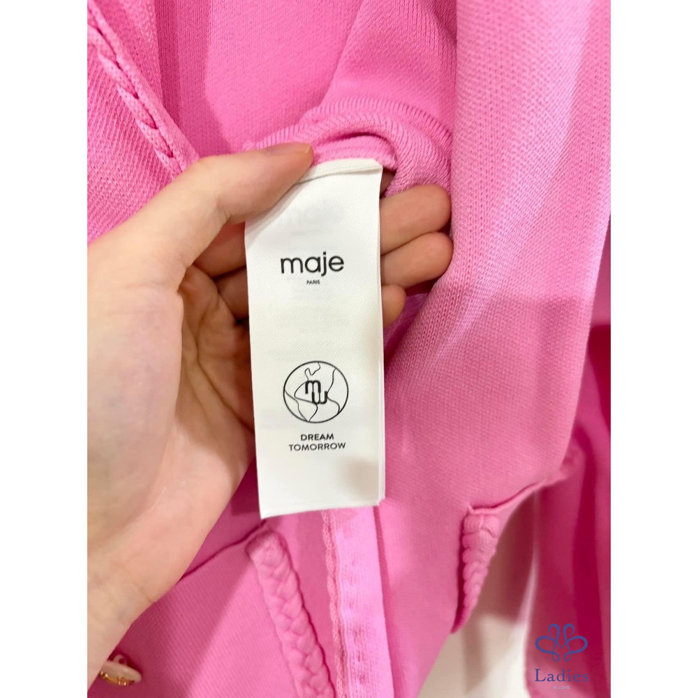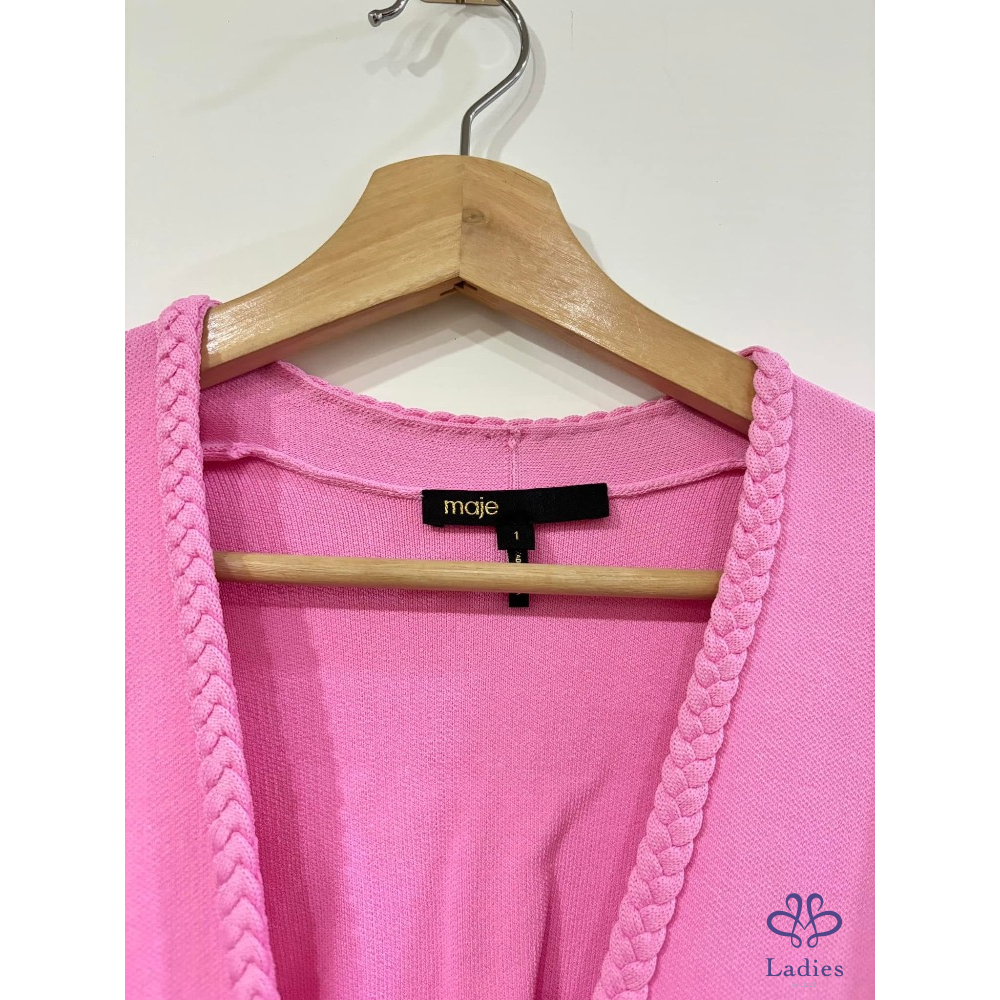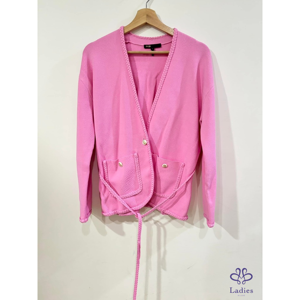 MAJE 粉色 小香風編織滾邊綁帶外套