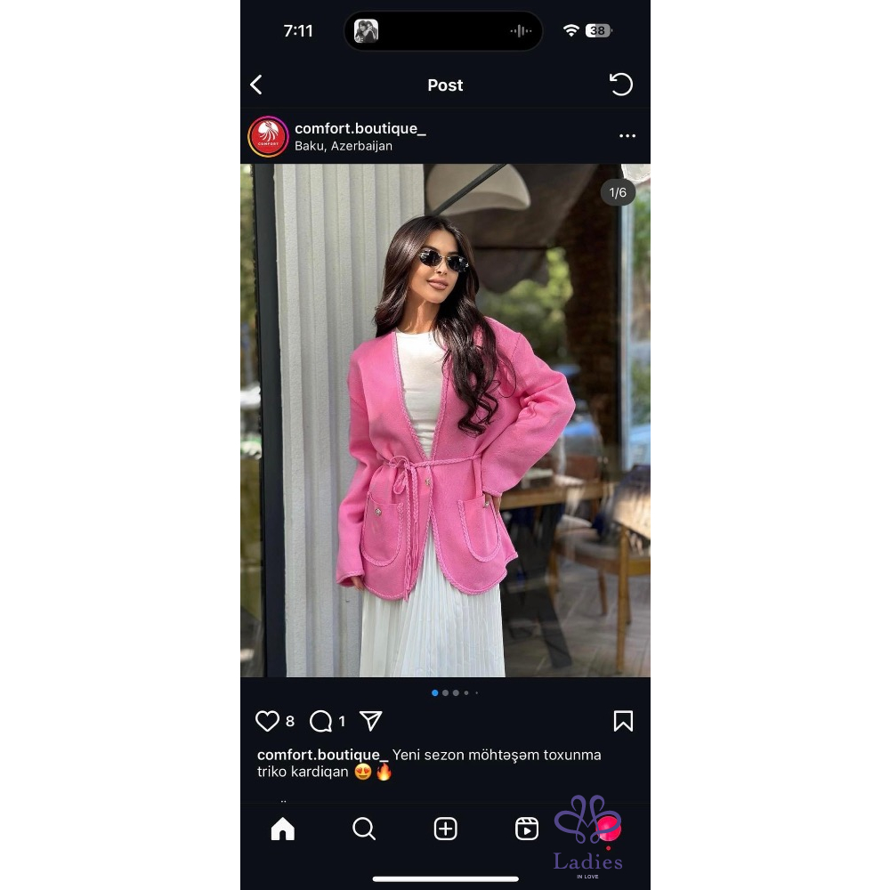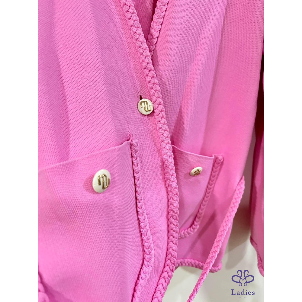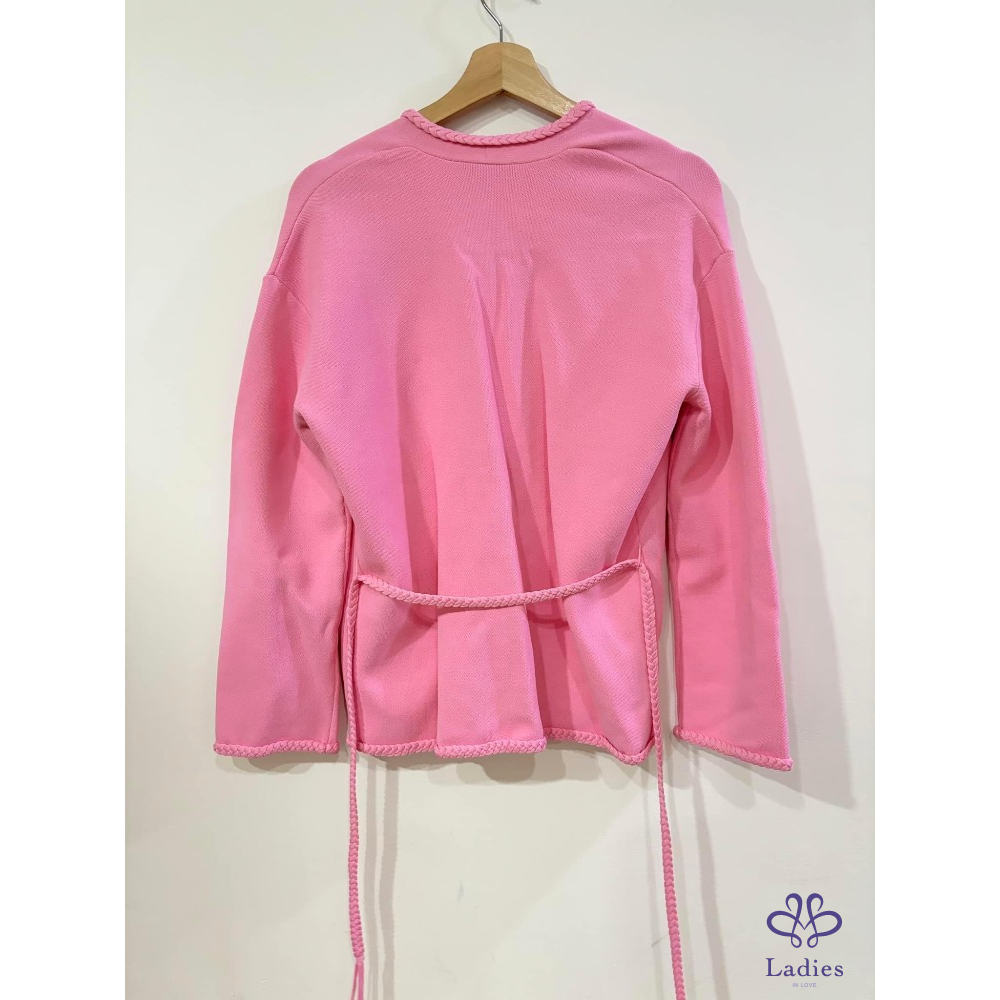 首頁 精品服飾 MAJE 粉色 小香風編織滾邊綁帶外套