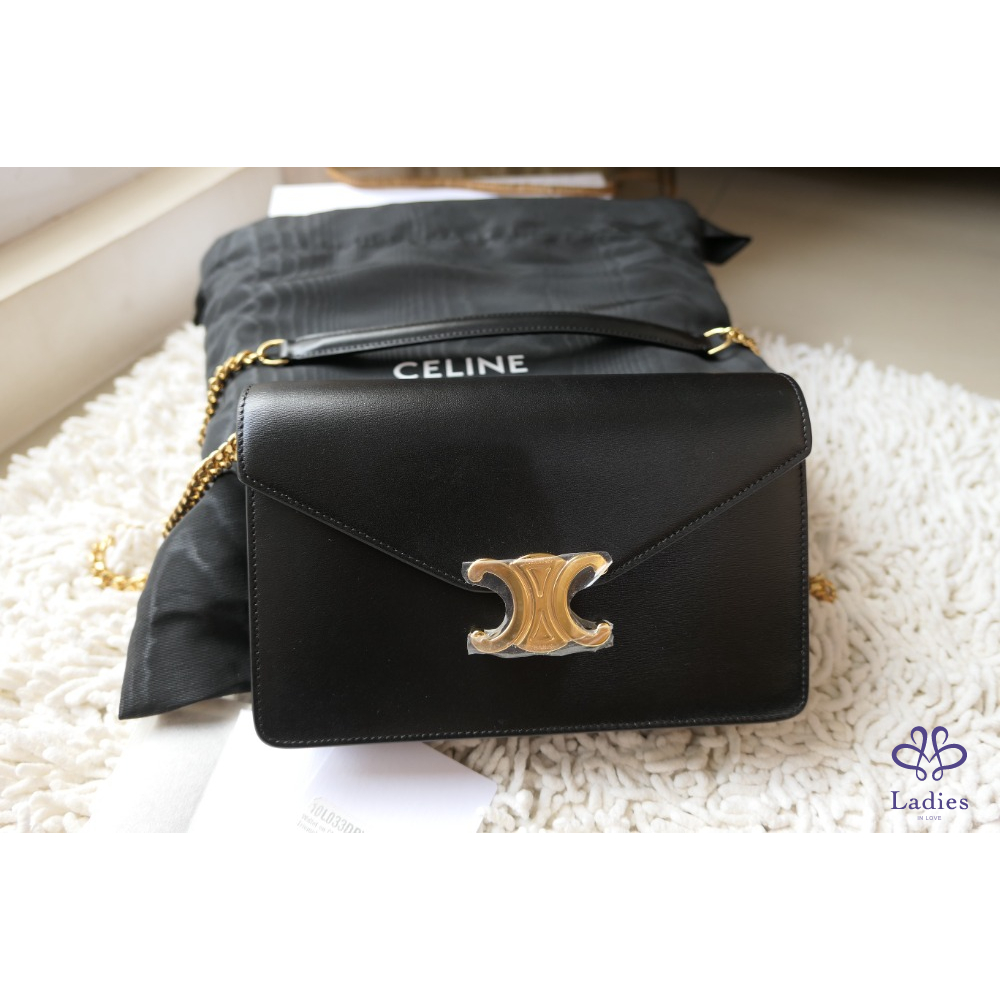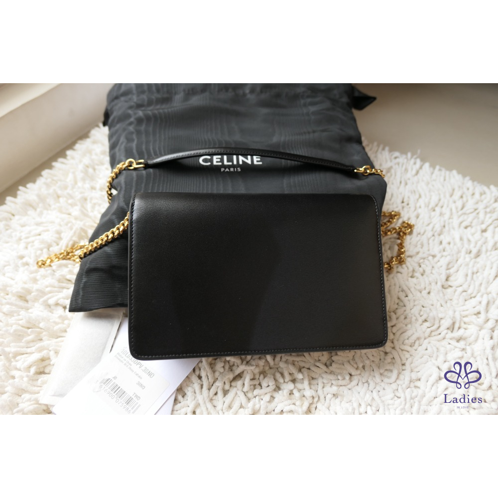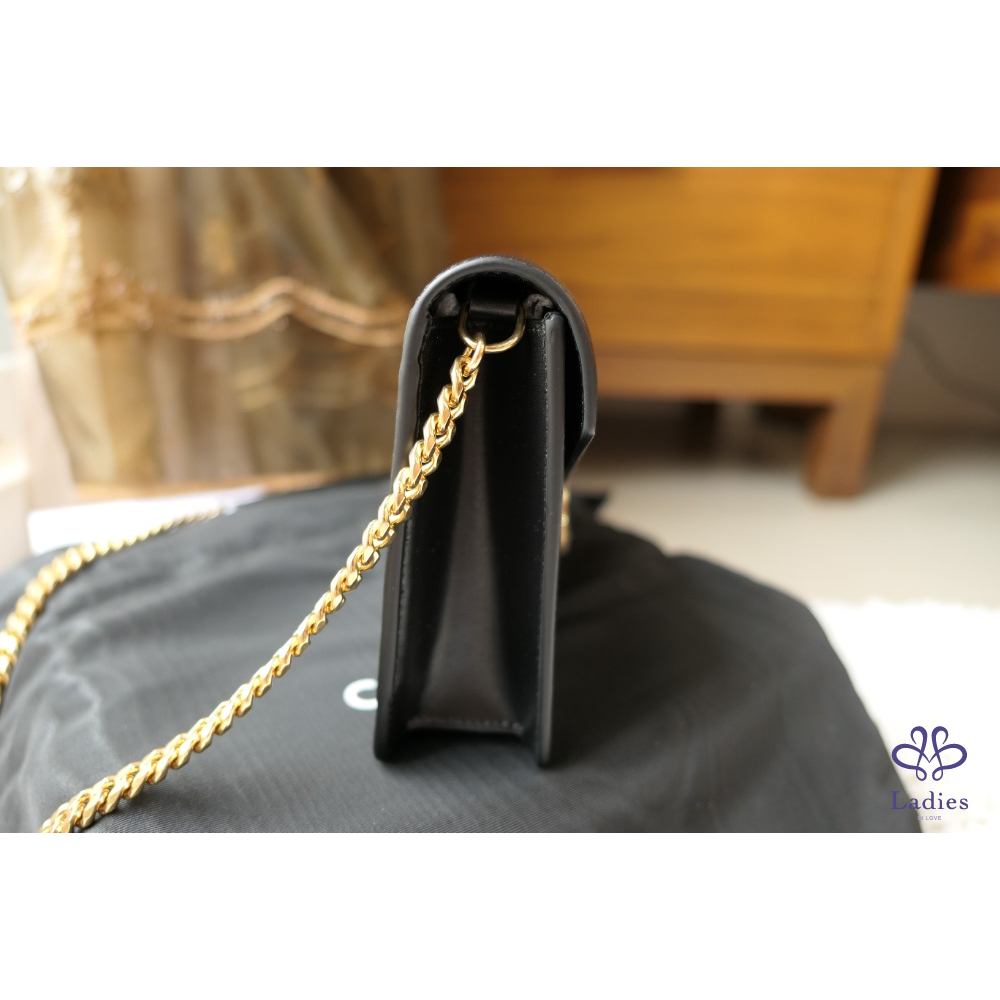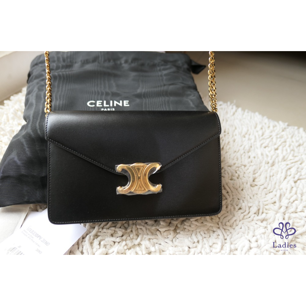 CELINE MARGO亮澤牛皮革飾鍊錢包 凱旋門WOC 黑金