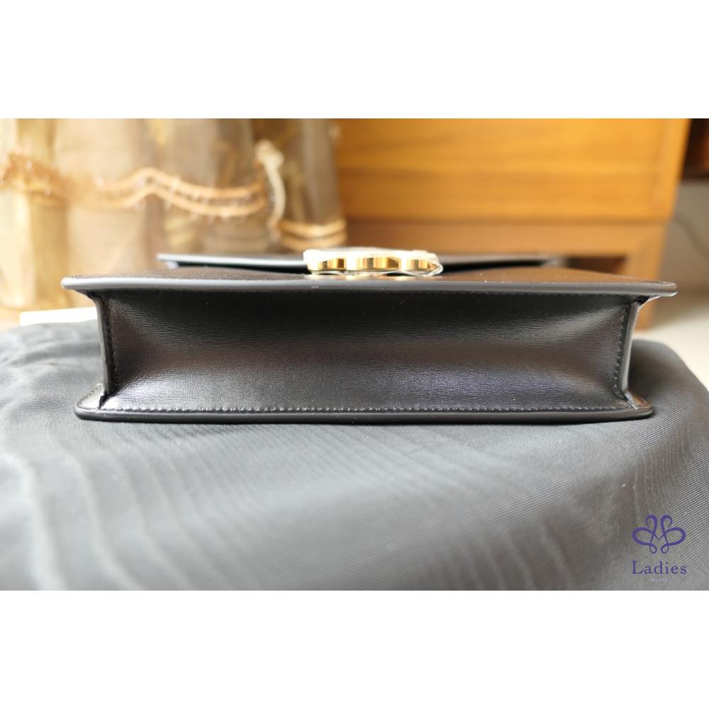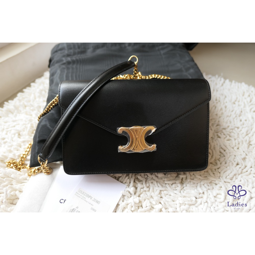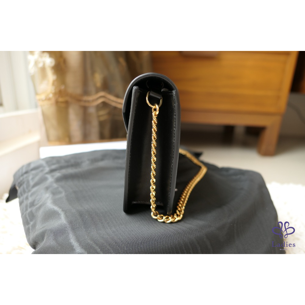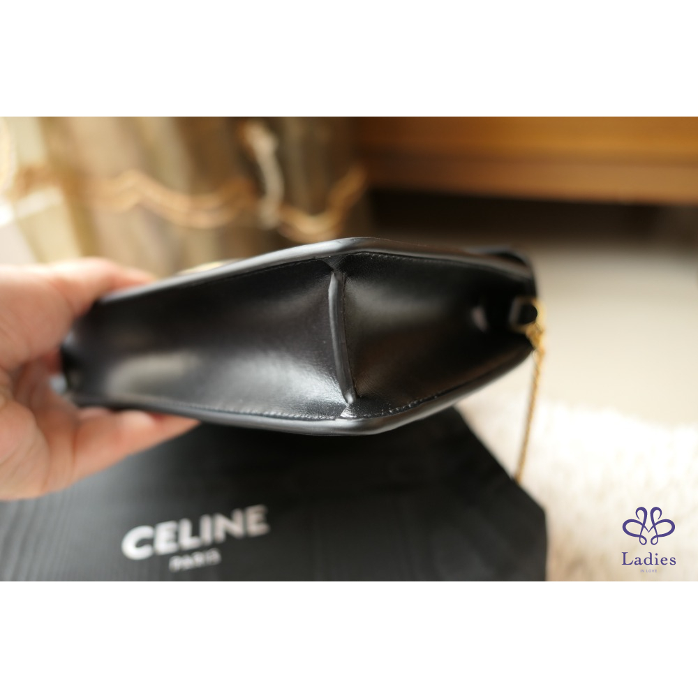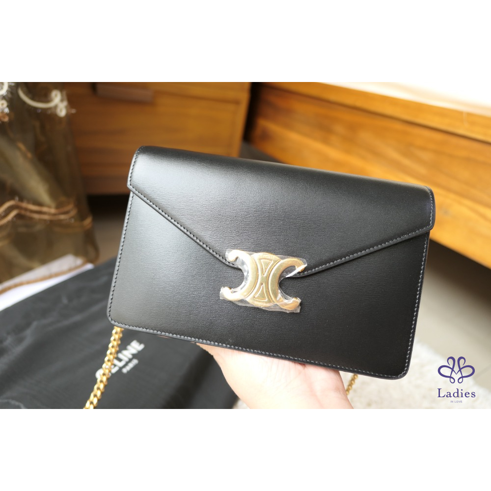 CELINE MARGO亮澤牛皮革飾鍊錢包 凱旋門WOC 黑金
