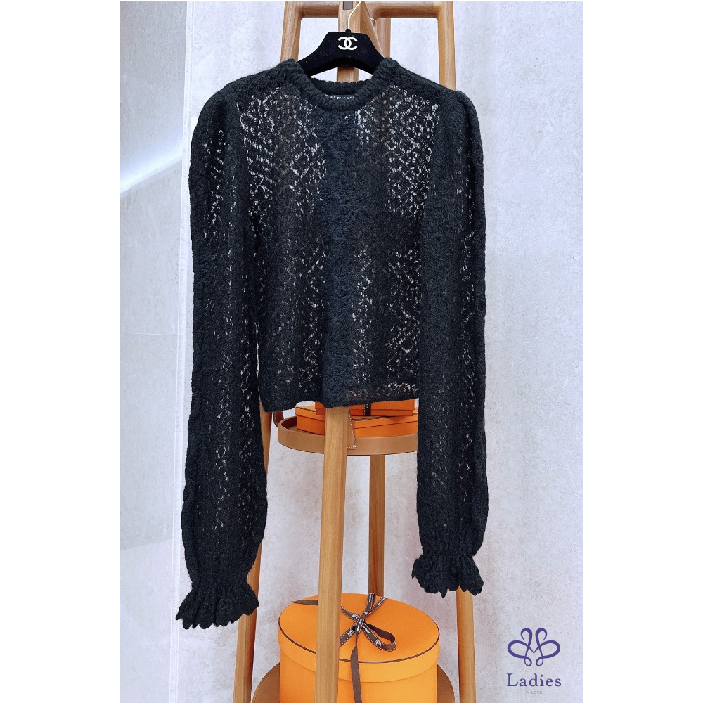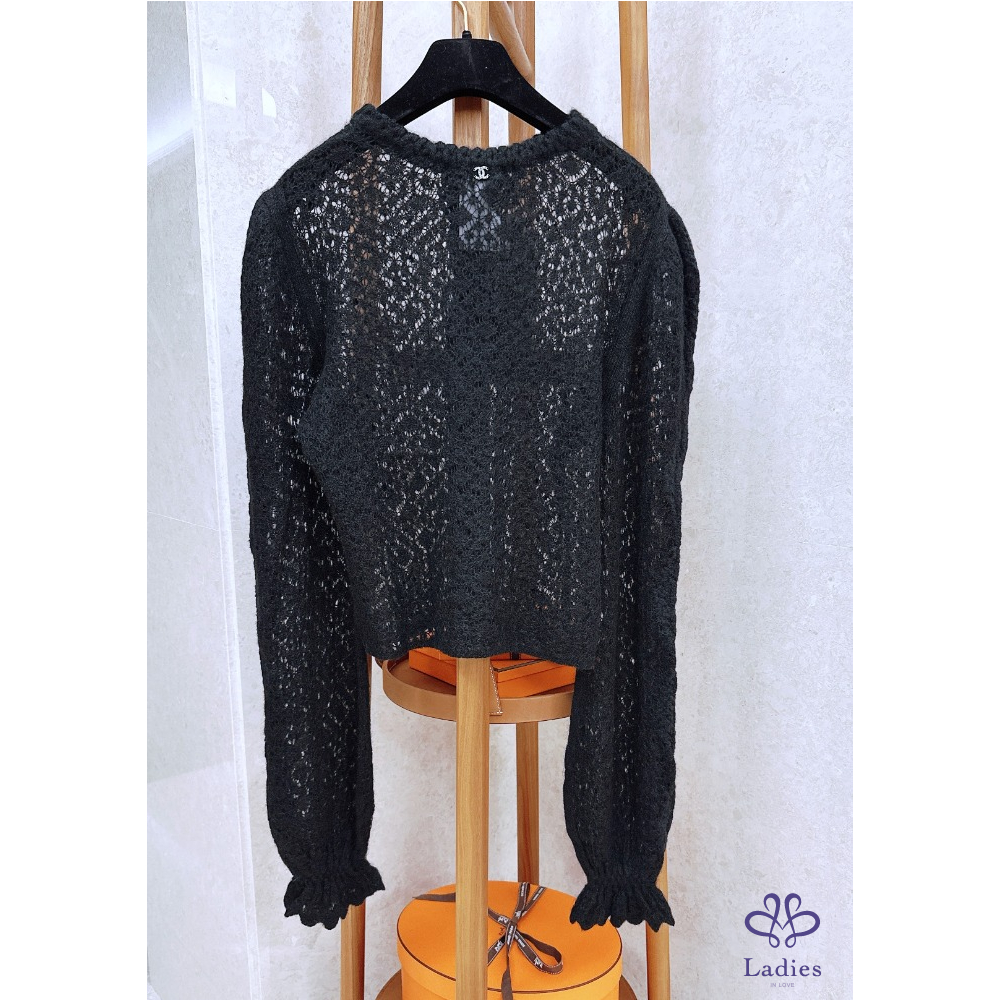 Chanel 23K 鏤空 針織毛衣 38黑色