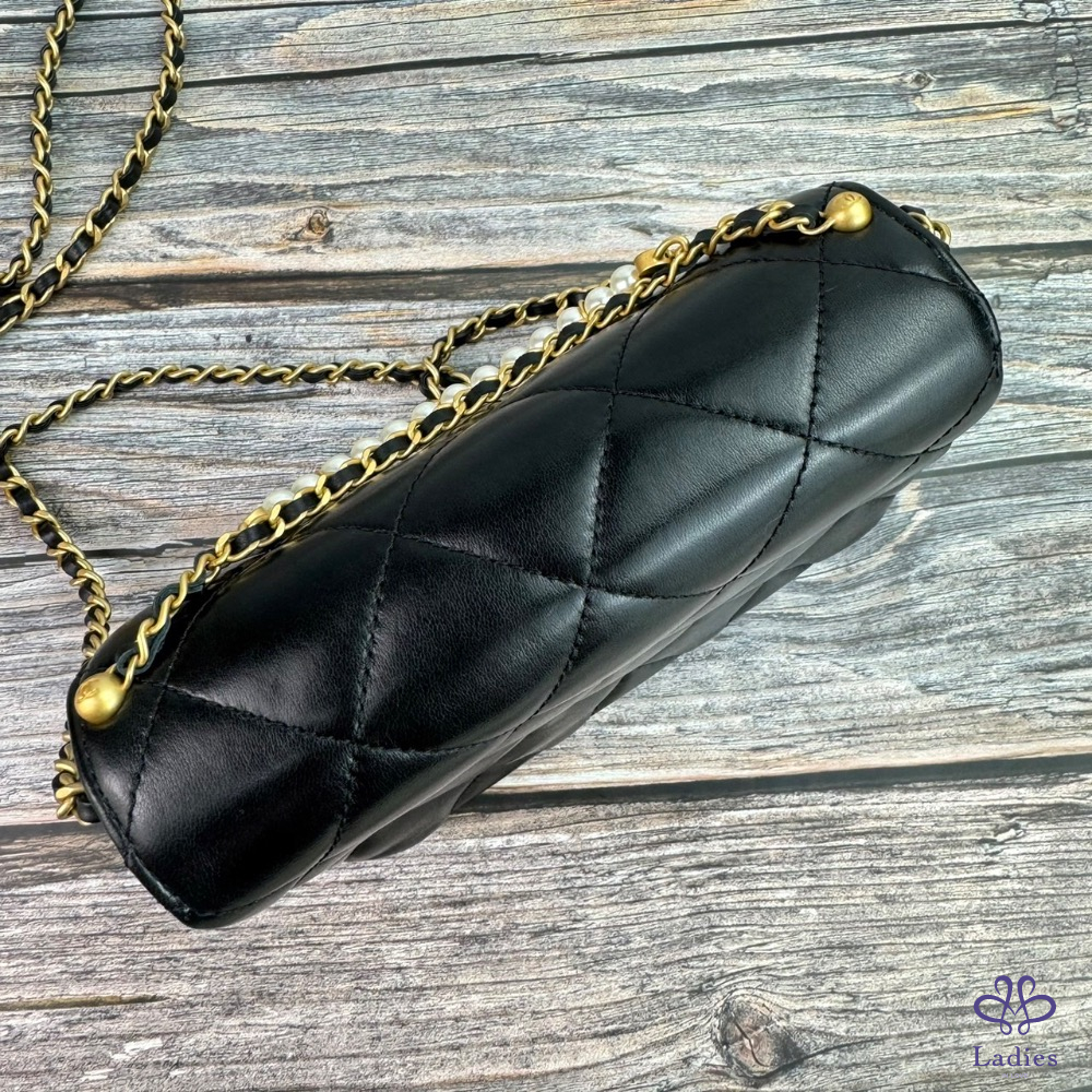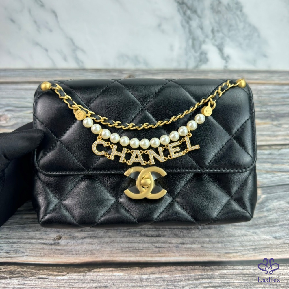 CHANEL 24A 珍珠鏈條字母 方胖子芯片款