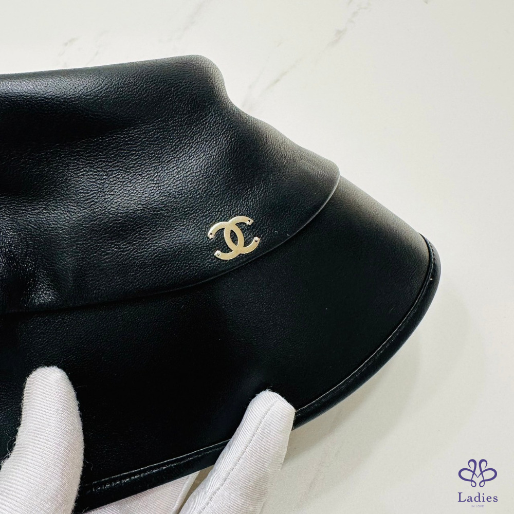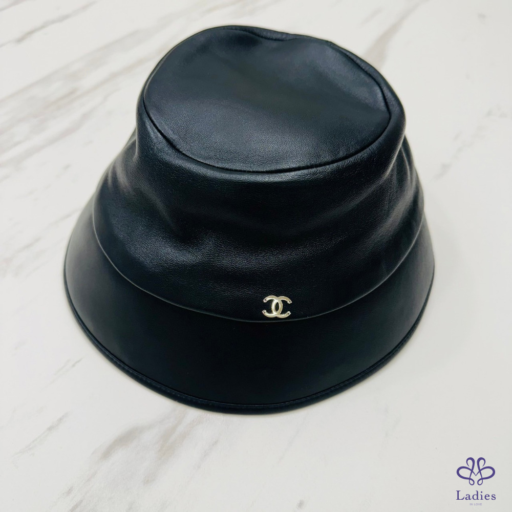 售 Chanel Bucket Hat 香奈兒經典雙 C 標誌黑色羊皮禮帽/漁夫帽/帽子