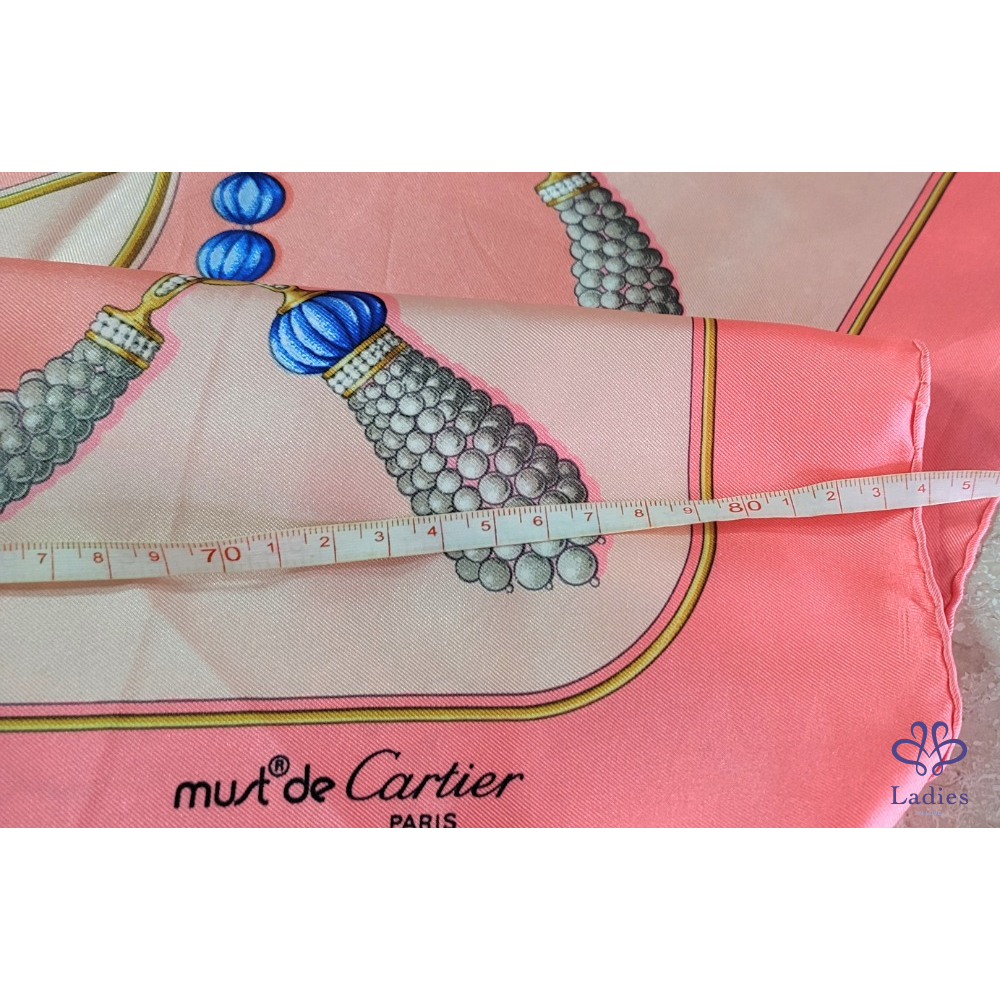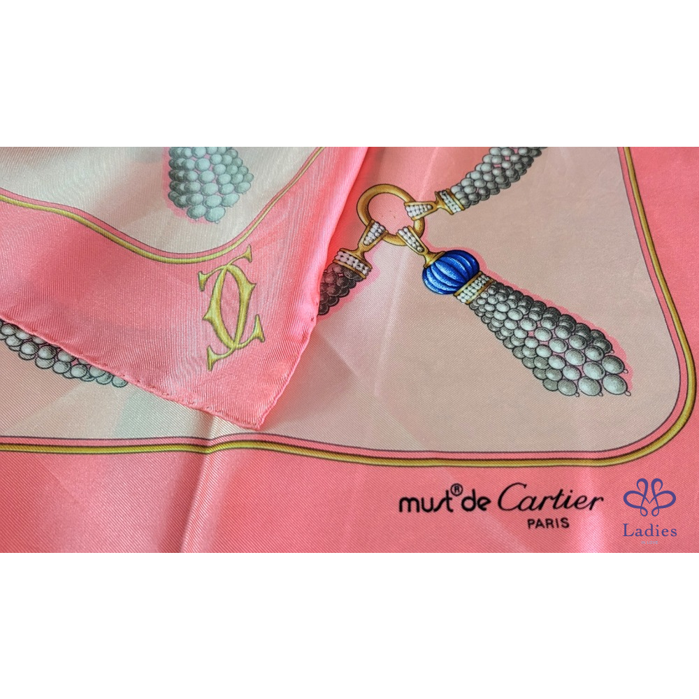 ~CARTIER 粉色串珠圖案絲巾 85x85cm絲巾