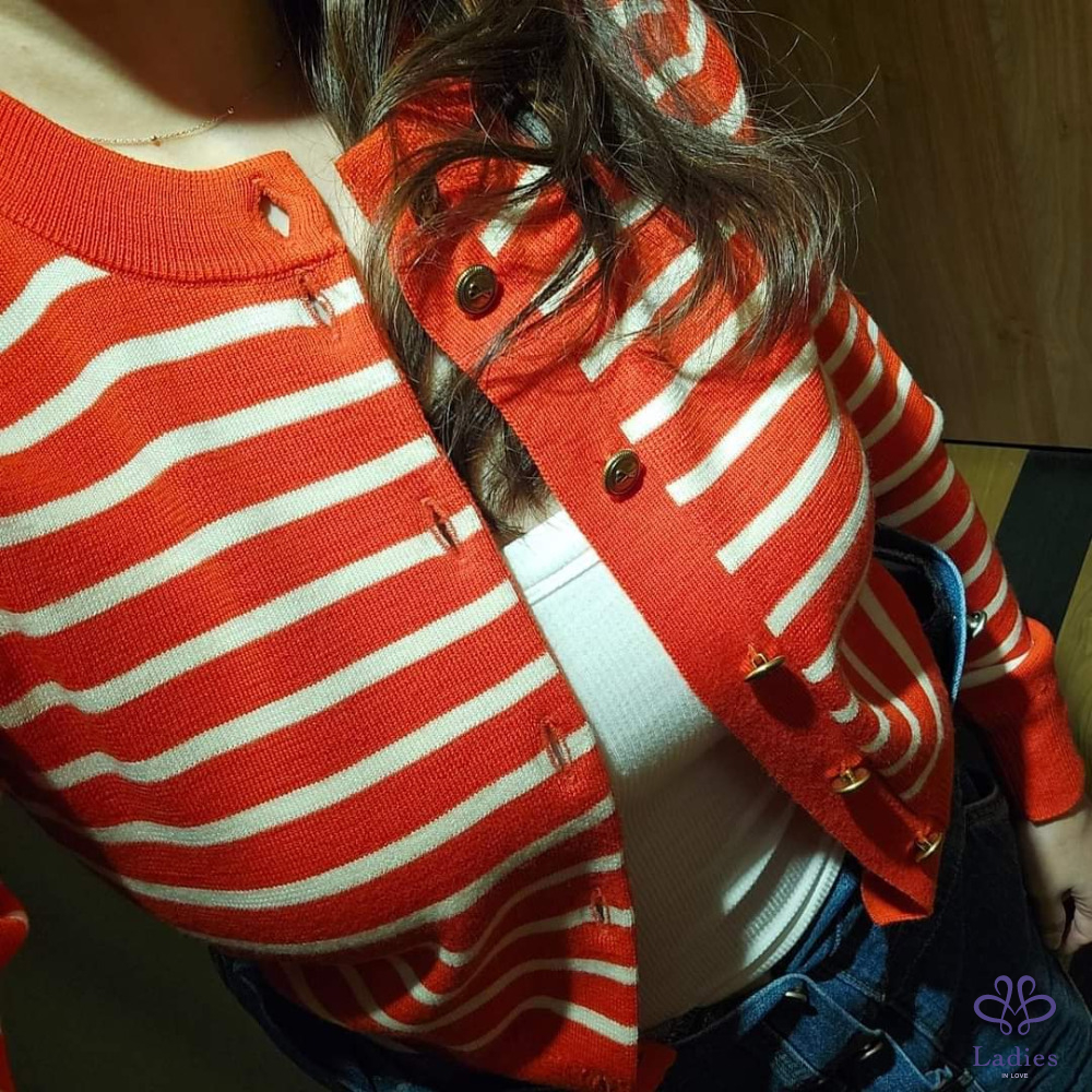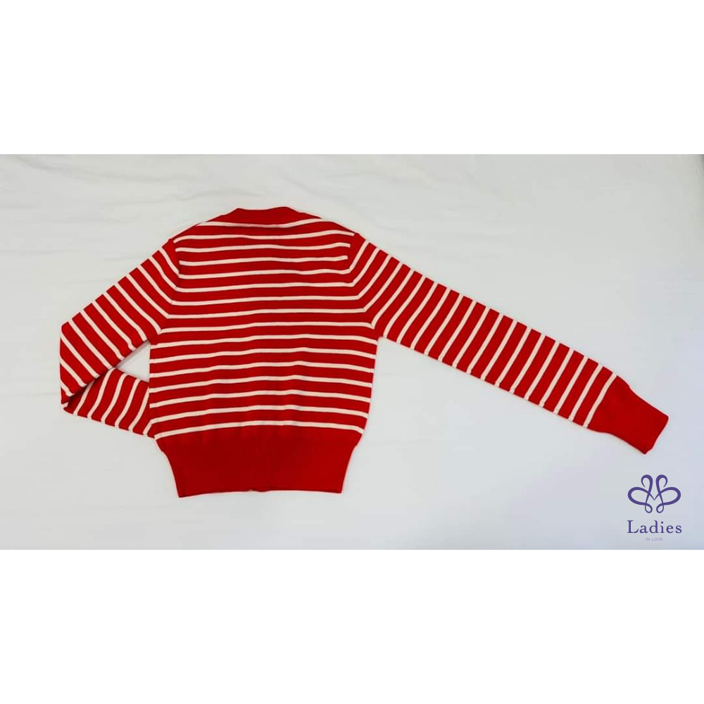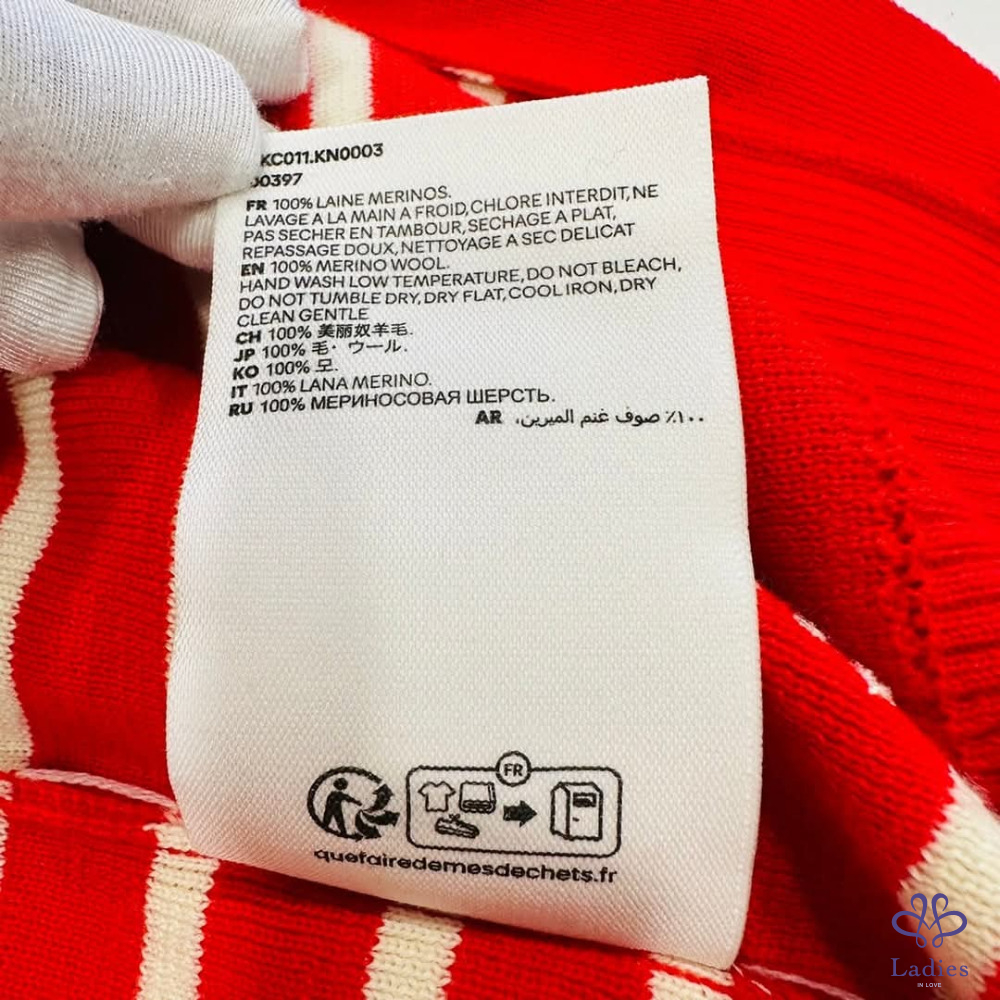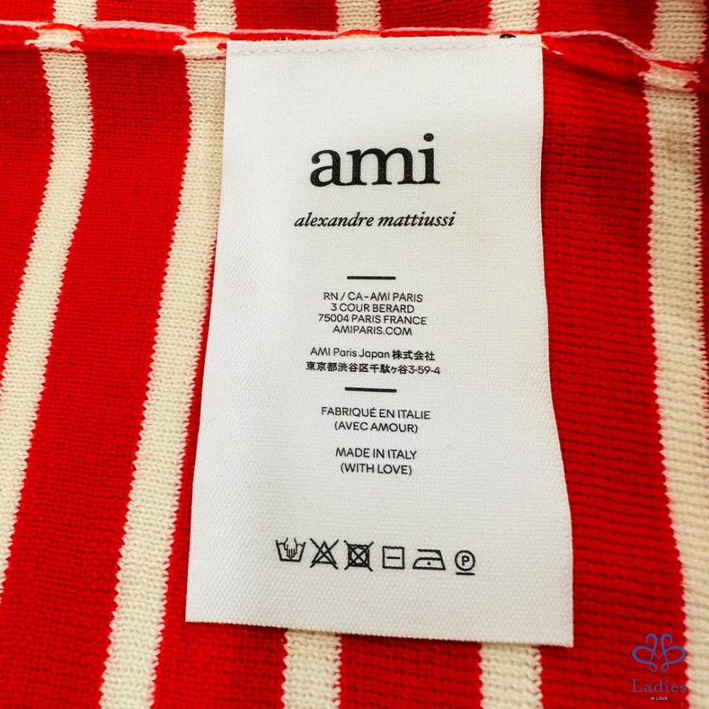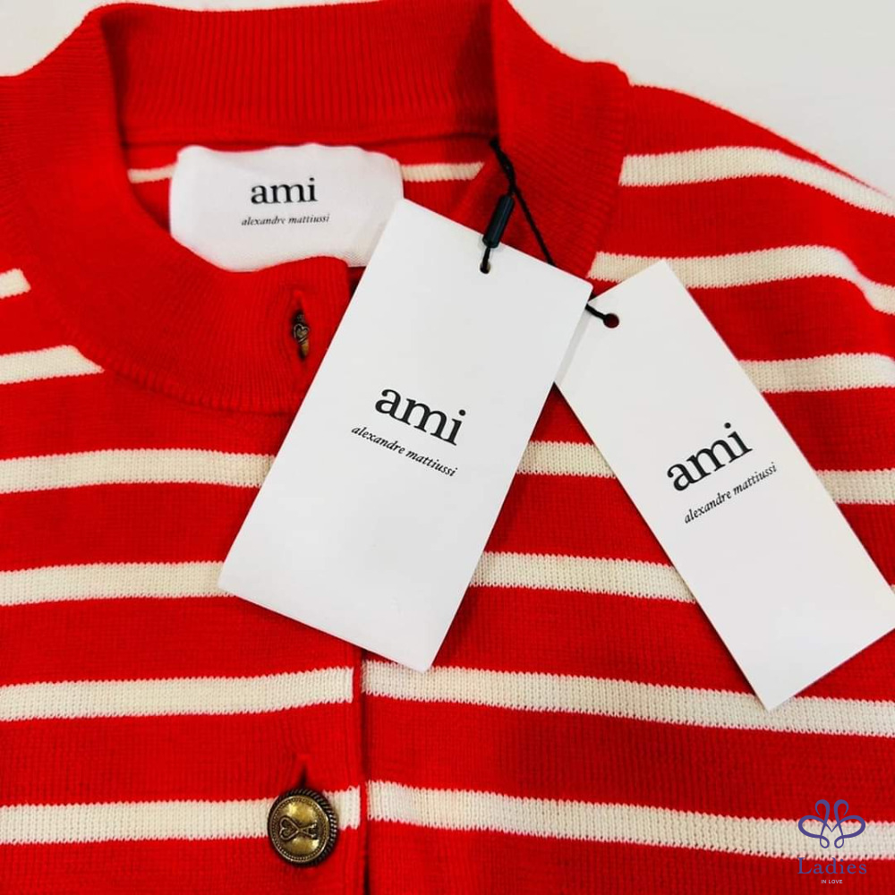 售 Alexandre Mattiussi AMI Paris Cardigan 草寫字母紅白條紋撞色顯瘦針織開襟外套/開衫/上衣/毛衣/衣服