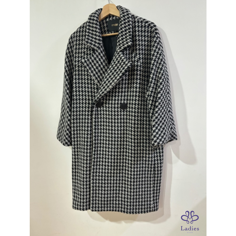 MAJE 經典法式千鳥紋羊毛大衣外套(69%綿羊毛)