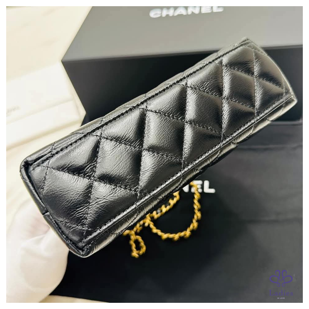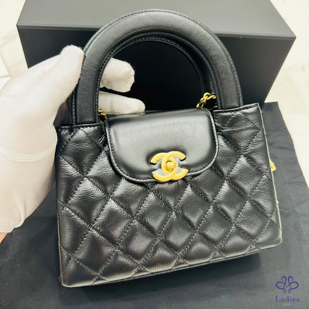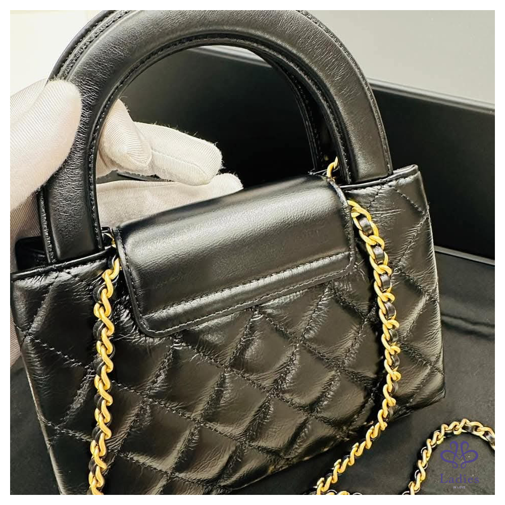 售 Chanel Kelly Nano Bag 香奈兒爆款凱莉包 黑色油蠟牛皮金釦皮穿鍊手提包/側背包/肩背包/斜背包/包包