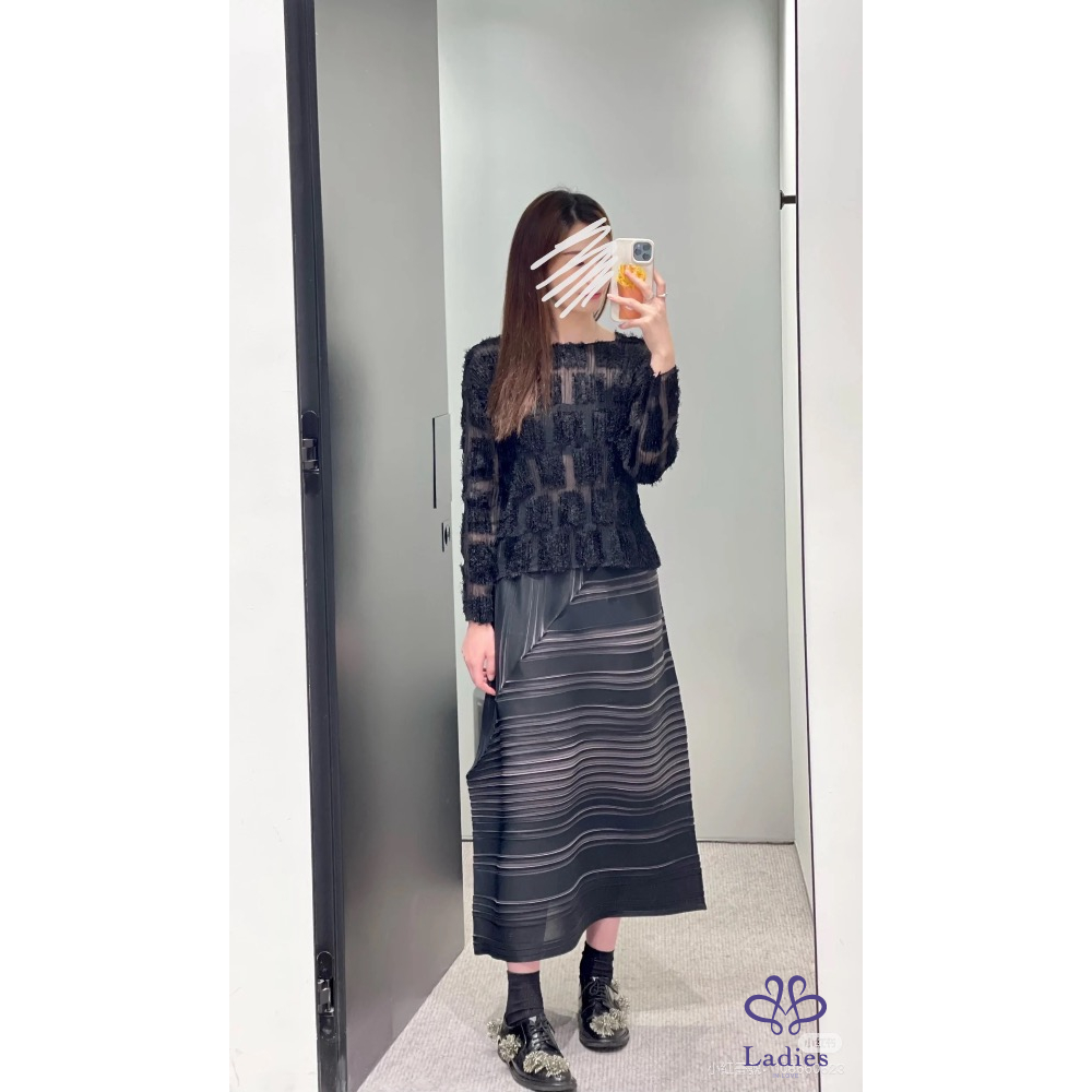 售三宅一生ISSEY MEYAKE 主線黑色彈跳褶皺半裙,造型簡約美麗不浮誇,23年11月專櫃斷貨款,材質很輕柔更舒適,當然價格也較貴,上身非常有氣質;