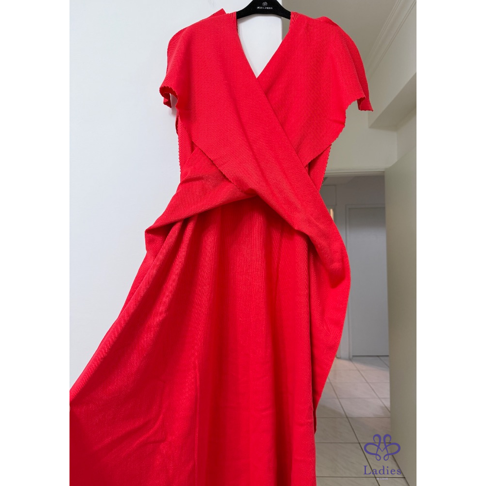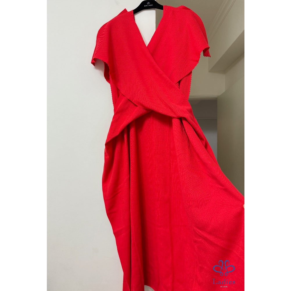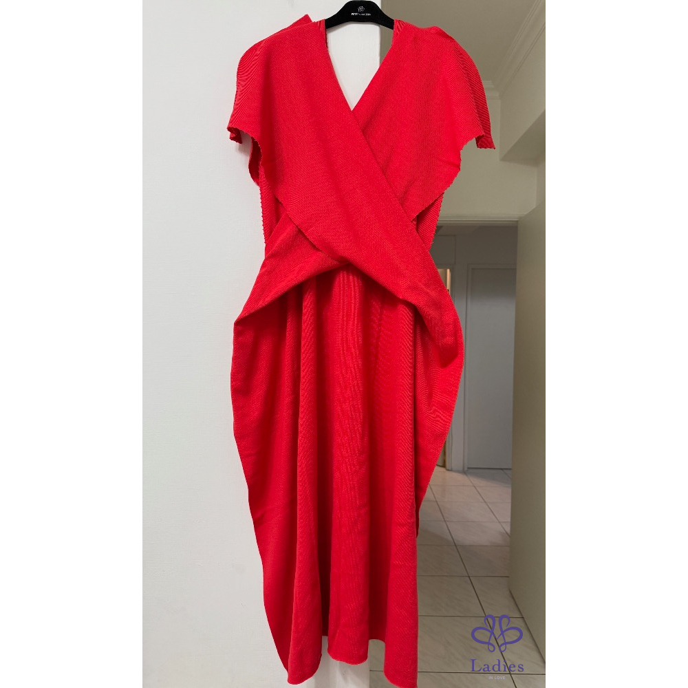 售三宅一生ISSEY MEYAKE 主線紅色針織造型洋裝,造型簡約美麗不浮誇,上身非常有氣質,超應景的,很適合接下來的聖誕節和新年穿搭,