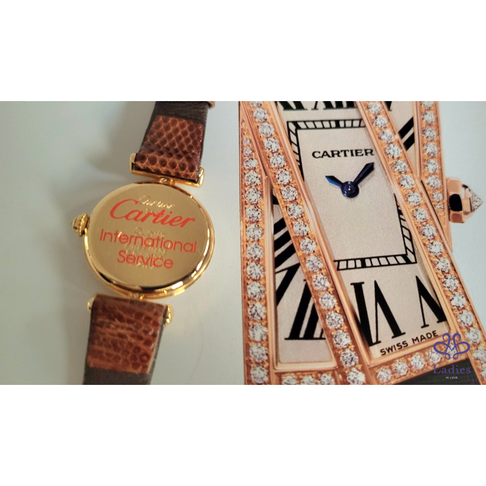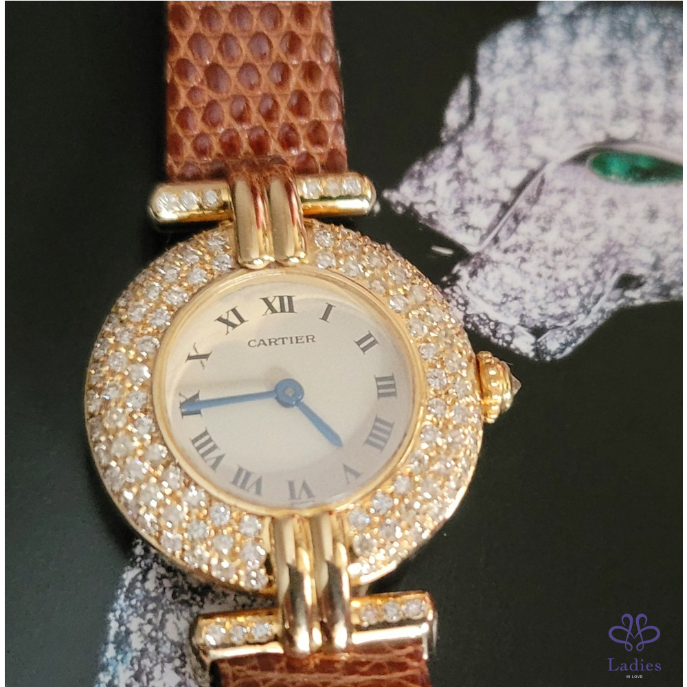 ~CARTIER 原鑲滿鑽750黃K金駝色錶帶石英錶