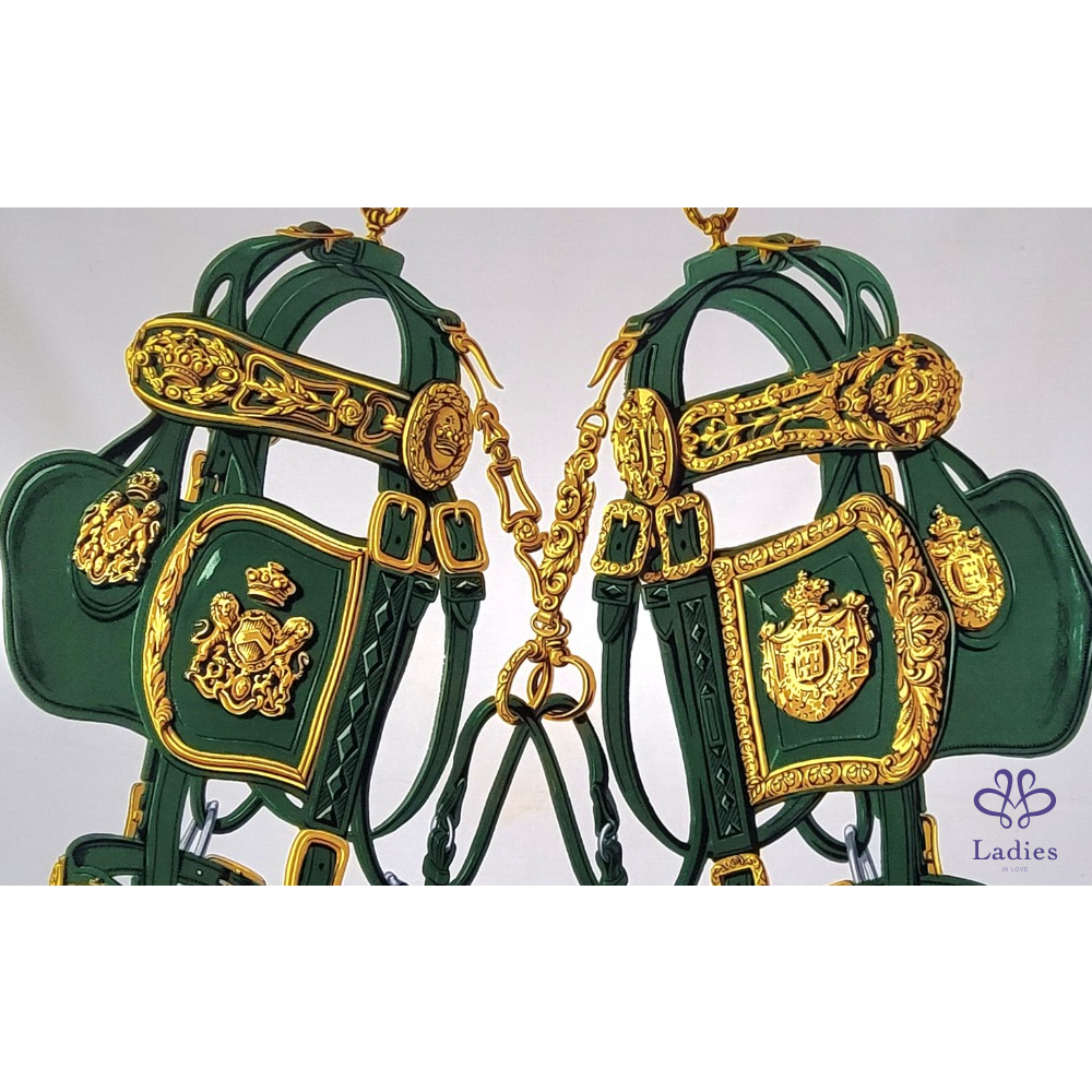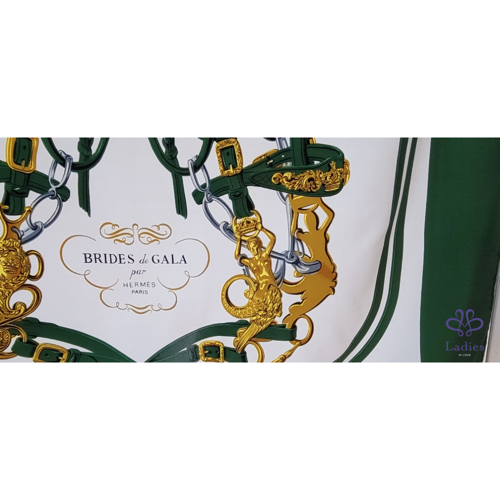 ~HERMES 新娘馬鞍圖案綠邊 90x90cm絲巾