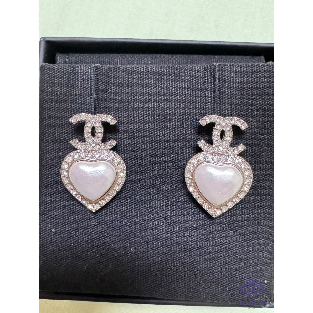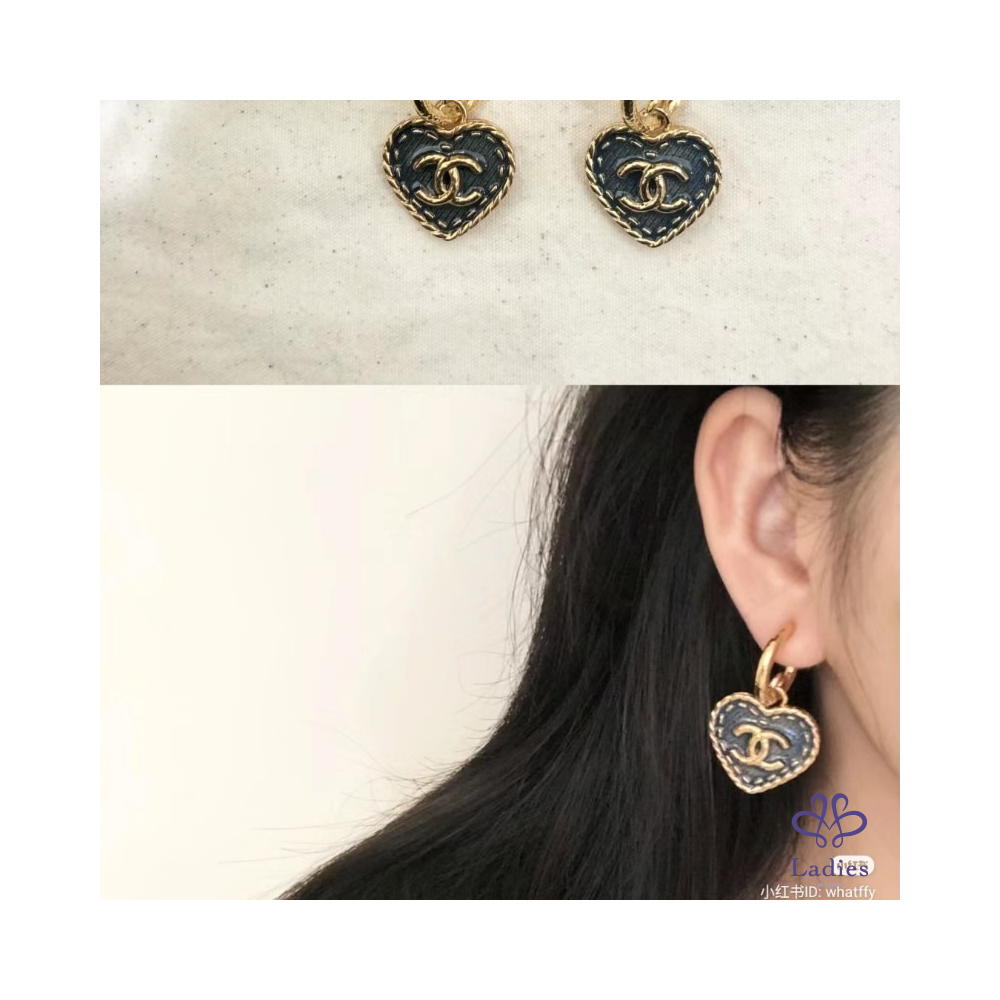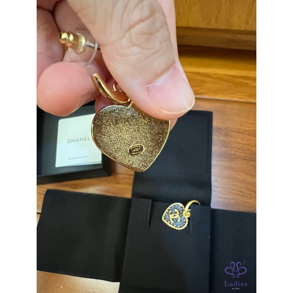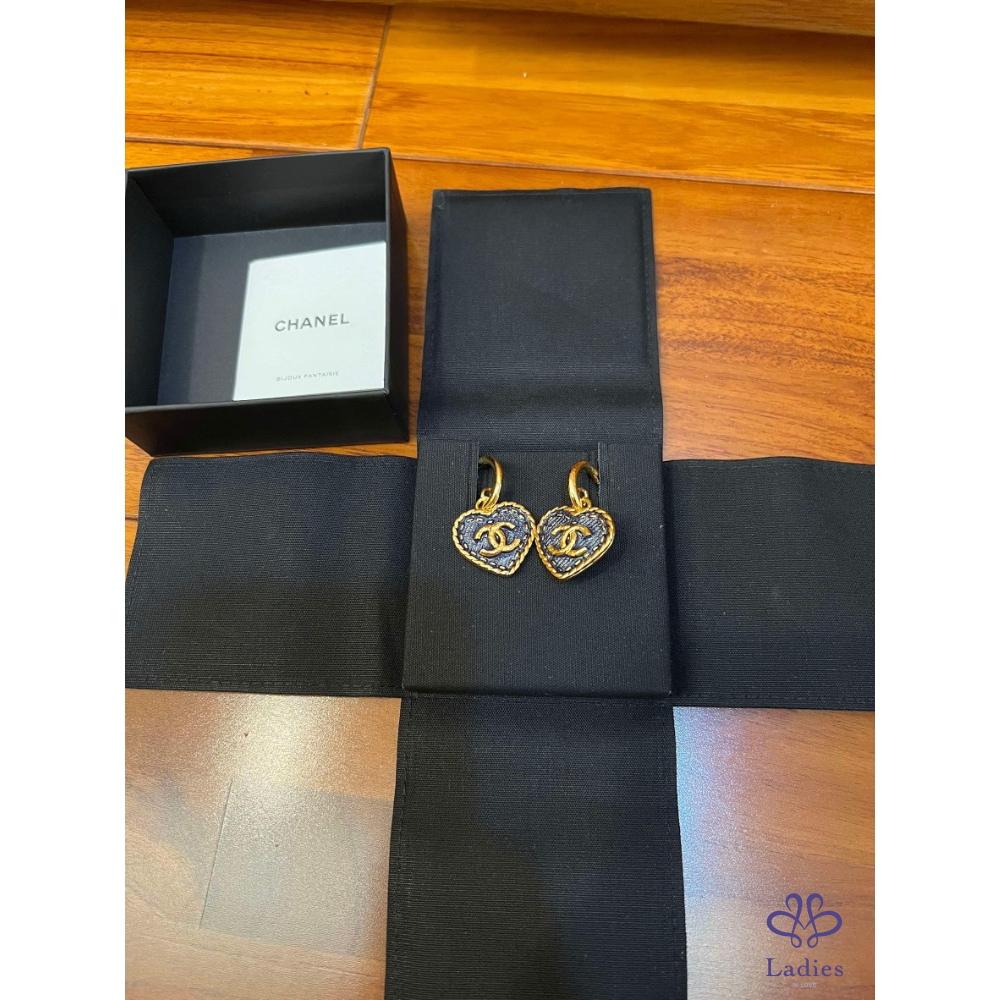全新Chanel ABC740B 牛仔藍愛心垂墜耳環