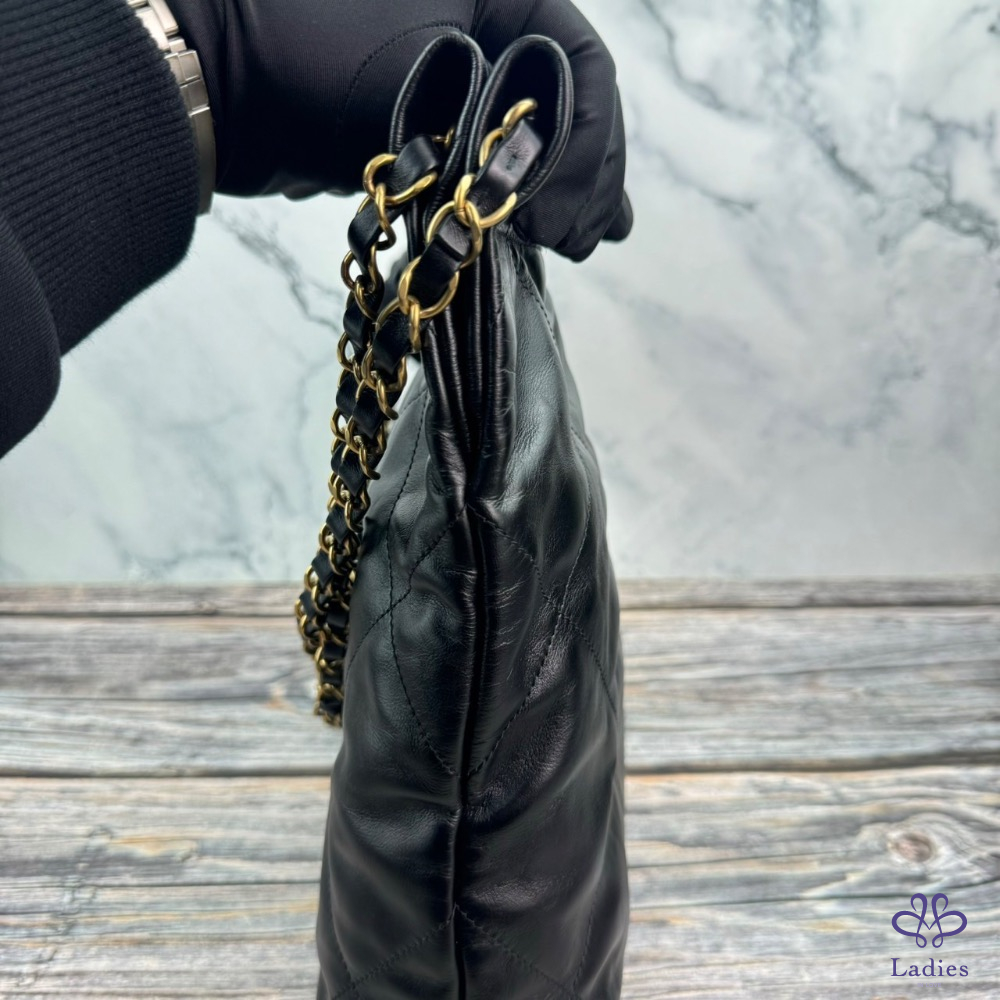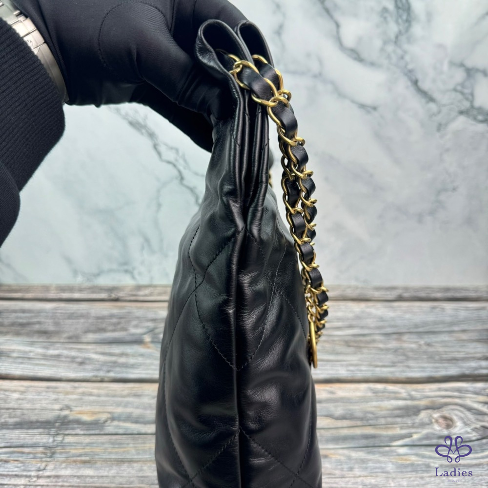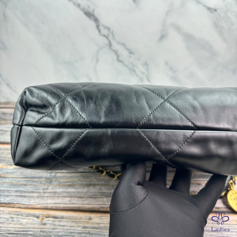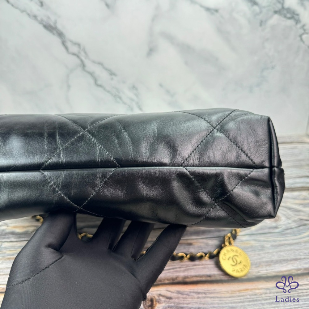 Chanel 22bag黑金小號,包包皮質細膩,光澤感巨好。容量也是非常足夠,各種季節都能搭配。包身自重挺輕的,小號 我覺得大小正正好。個人最喜歡一條鏈條自然垂下單肩的背法,真的是太好看了❤️????