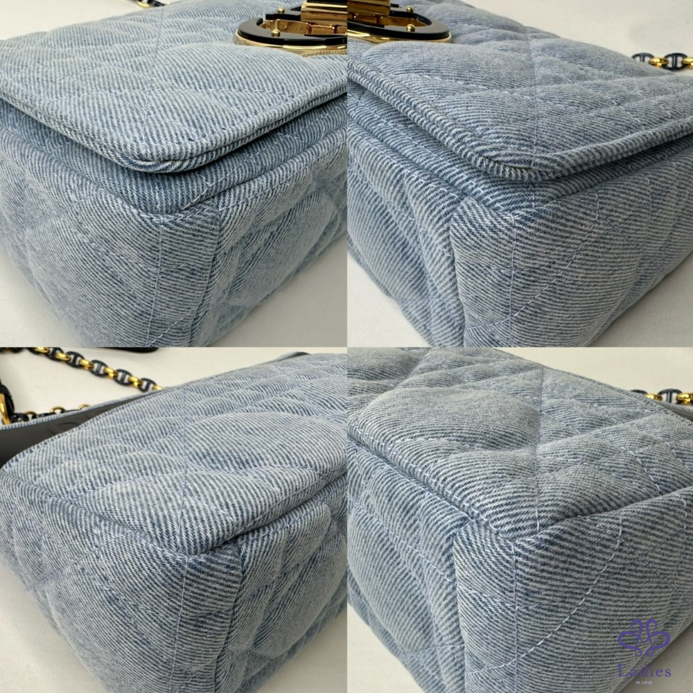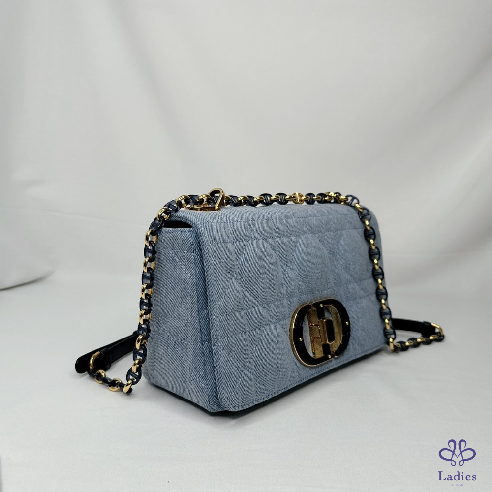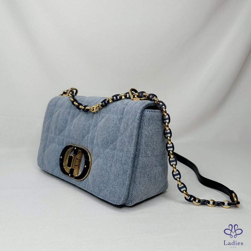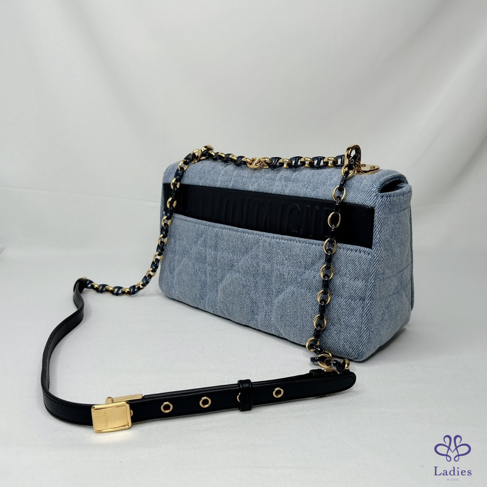 產品信息 【DIOR 全新Caro中款牛仔藤格紋鏈包】 #實品超級無敵美 #專櫃價14萬 採用藍色牛仔布製成,飾以經典藤格紋圖案縫線 翻蓋上飾有螢光藍色透明樹脂CD旋轉鎖扣 搭配可拆的藍色透明樹脂CD鏈環肩帶,可手提、肩背或斜背 整體包況約9成9新,二手商品均有正常存放痕跡 型號:M9242WTJF_M928 尺寸:25.5x15.5x8cm 附件:原廠盒、保卡、說明書 #A113092604
