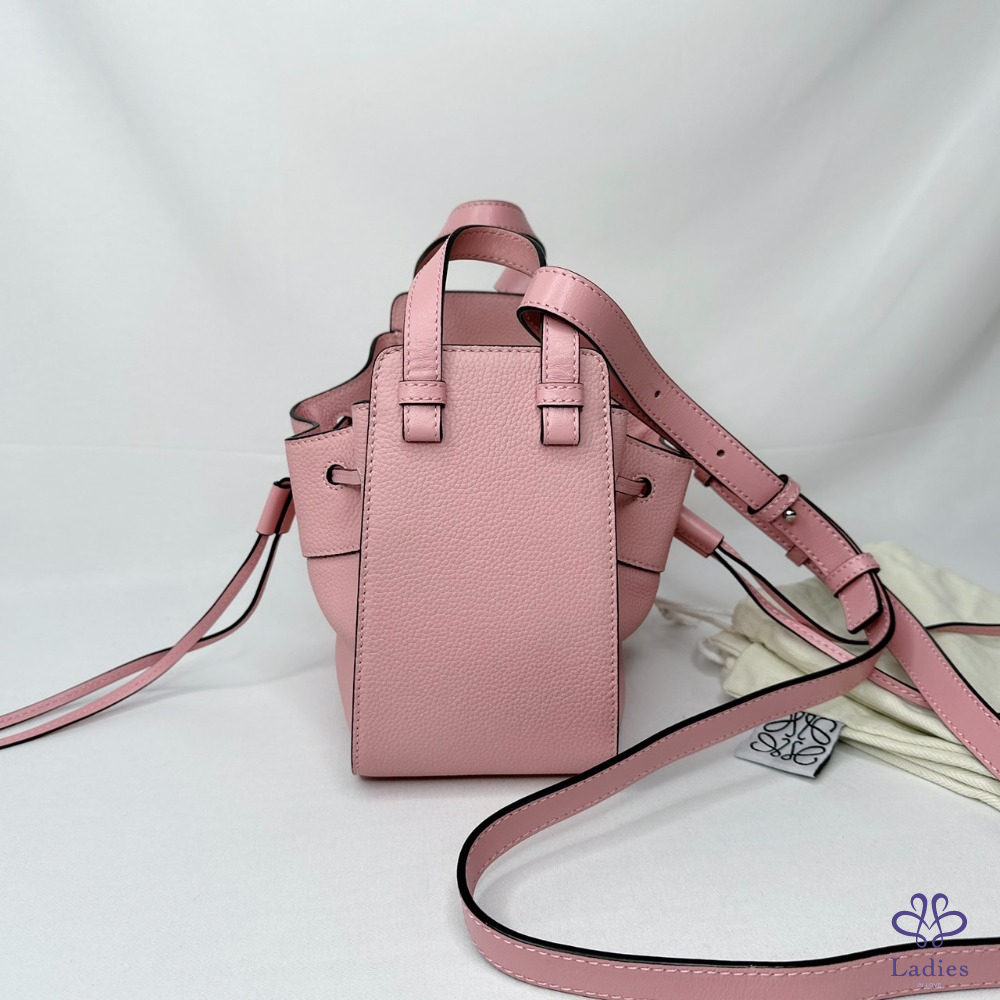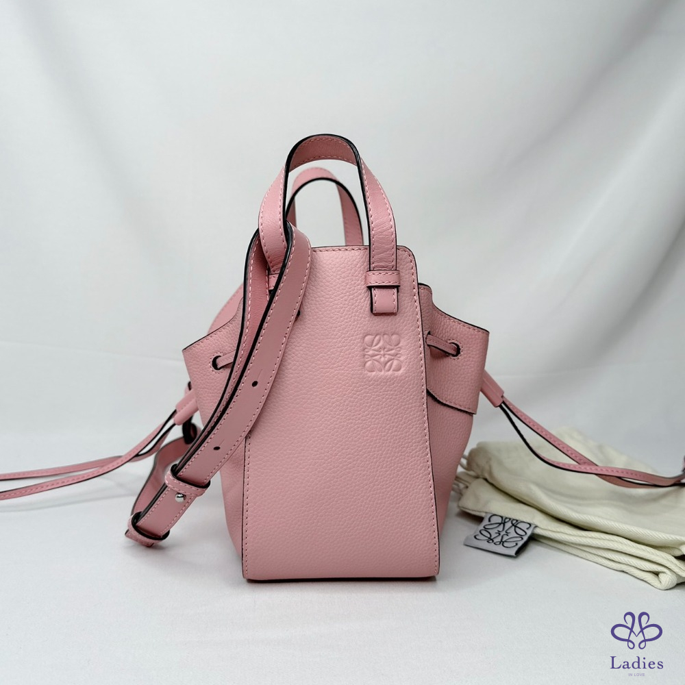 產品信息 【LOEWE Hammock Mini櫻花粉吊床包】 #閒置近新極少用 #專櫃價8萬 Hammock是一款多功能包,可用拉繩改變形狀 採用柔軟粒面小牛皮製作,包身柔軟 迷人的櫻花粉小包 隨手一拎輕鬆又可愛 #僅內裡輕微污漬,其餘包身狀況新穎漂亮 整體包況約9成6新,二手商品均有正常使用/存放痕跡 尺寸:11x19.5x17cm 附件:原廠防塵袋 #A113071902